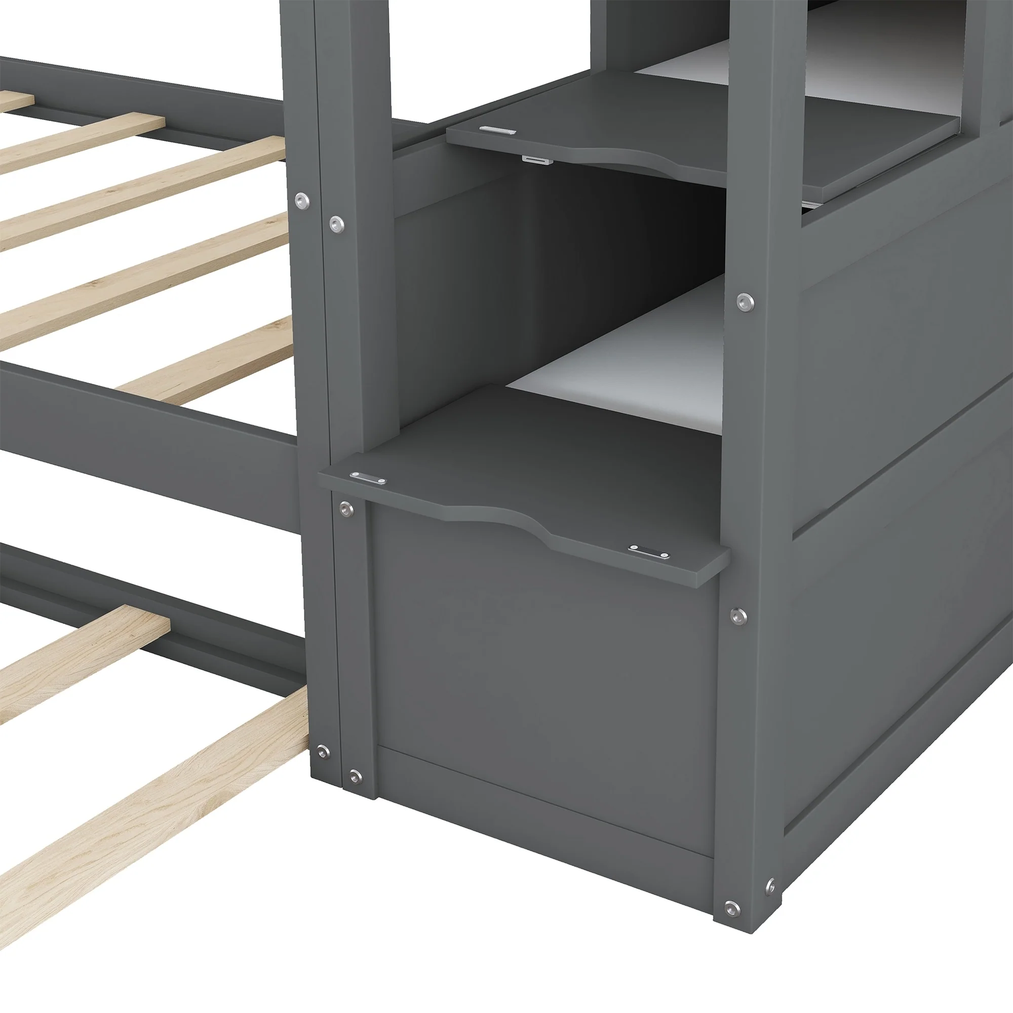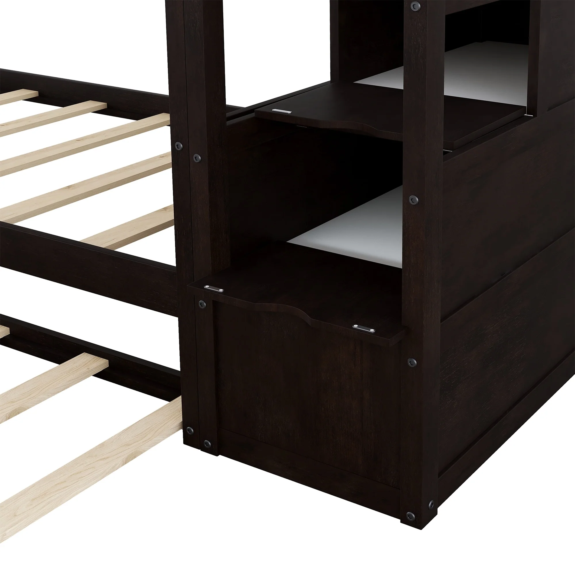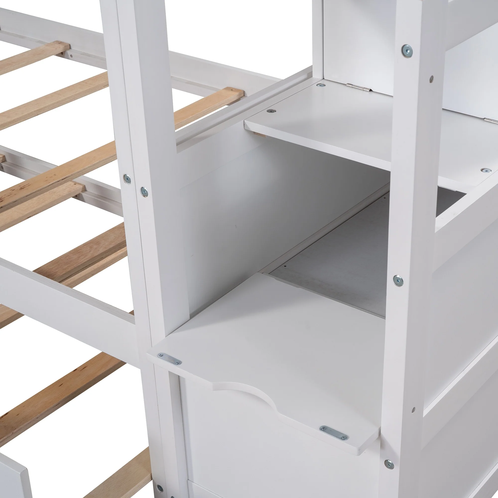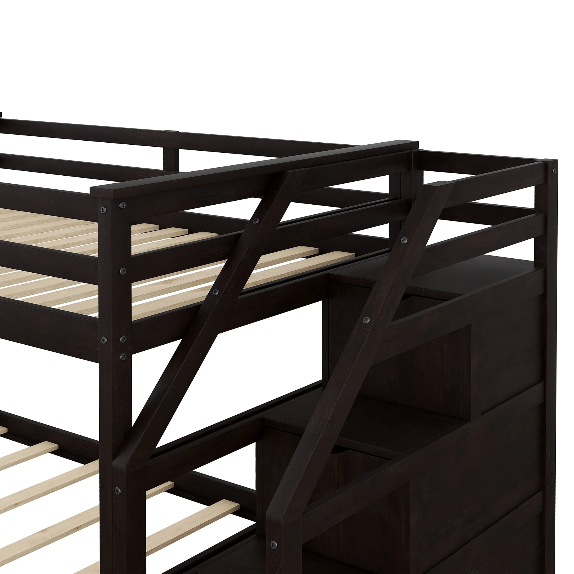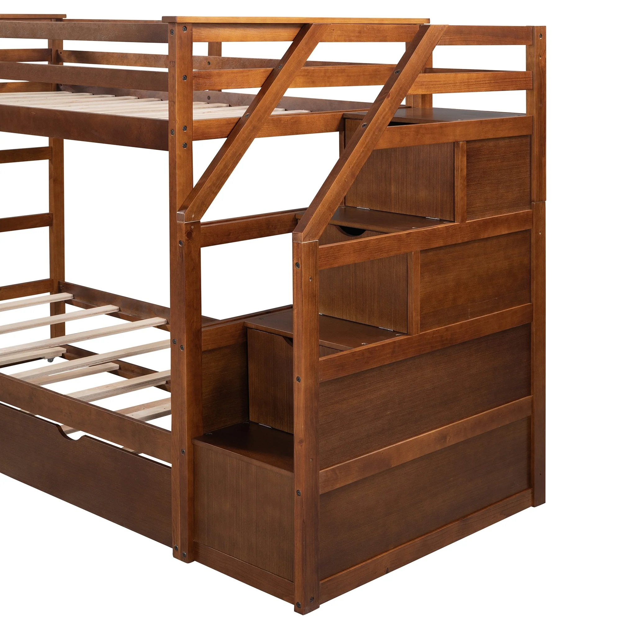 Twin-Over-Twin Bunk Bed with Twin Size Trundle and 3 Storage Stairs
