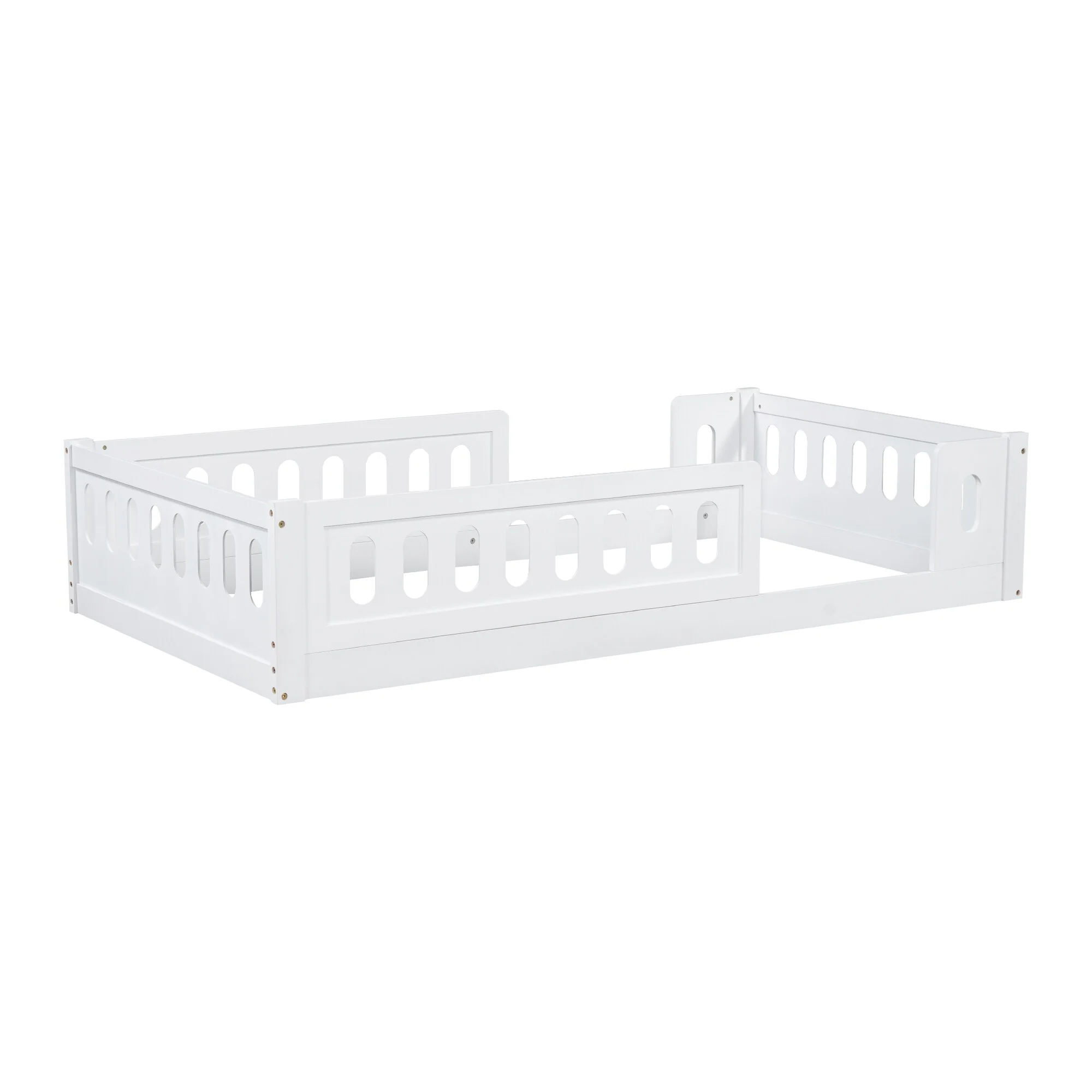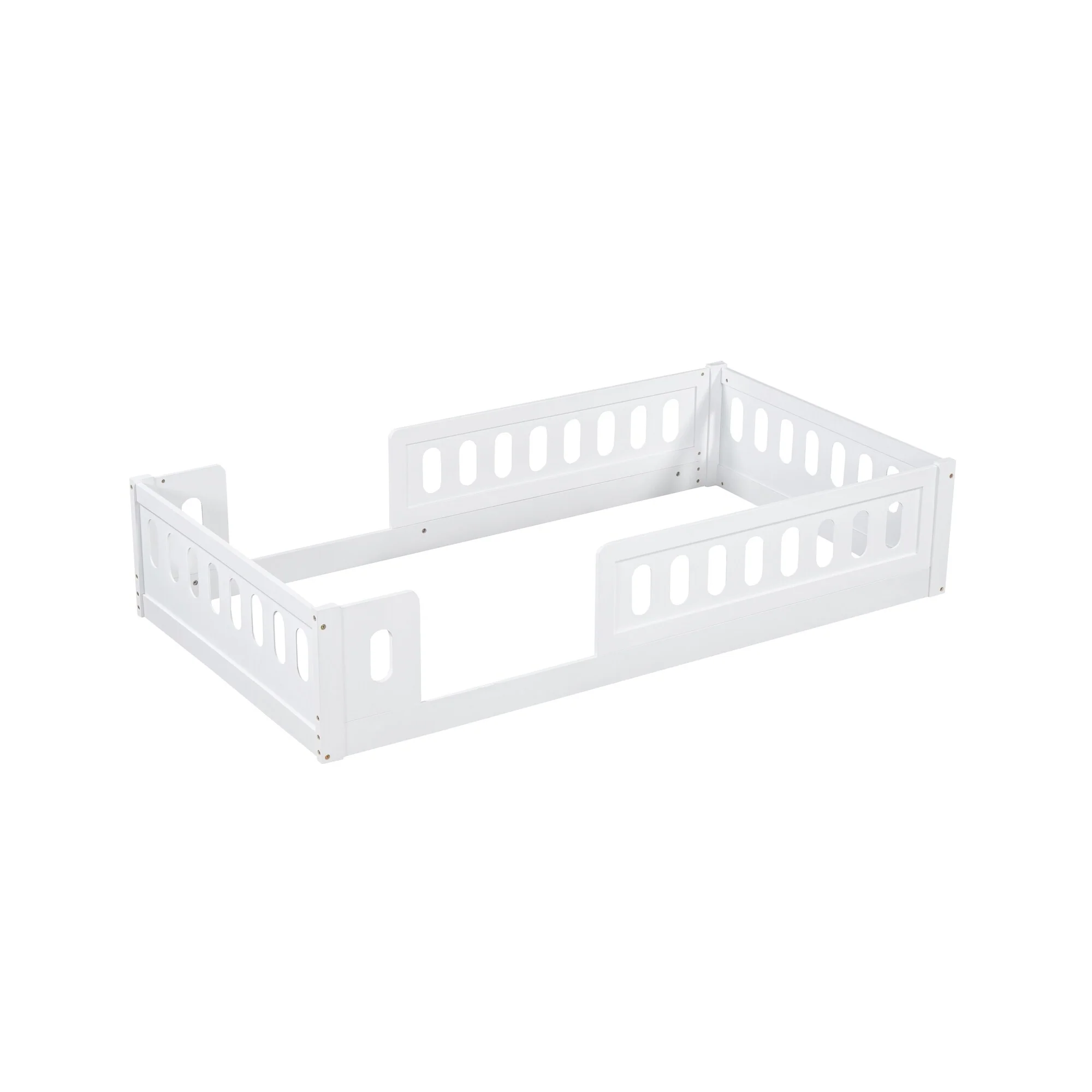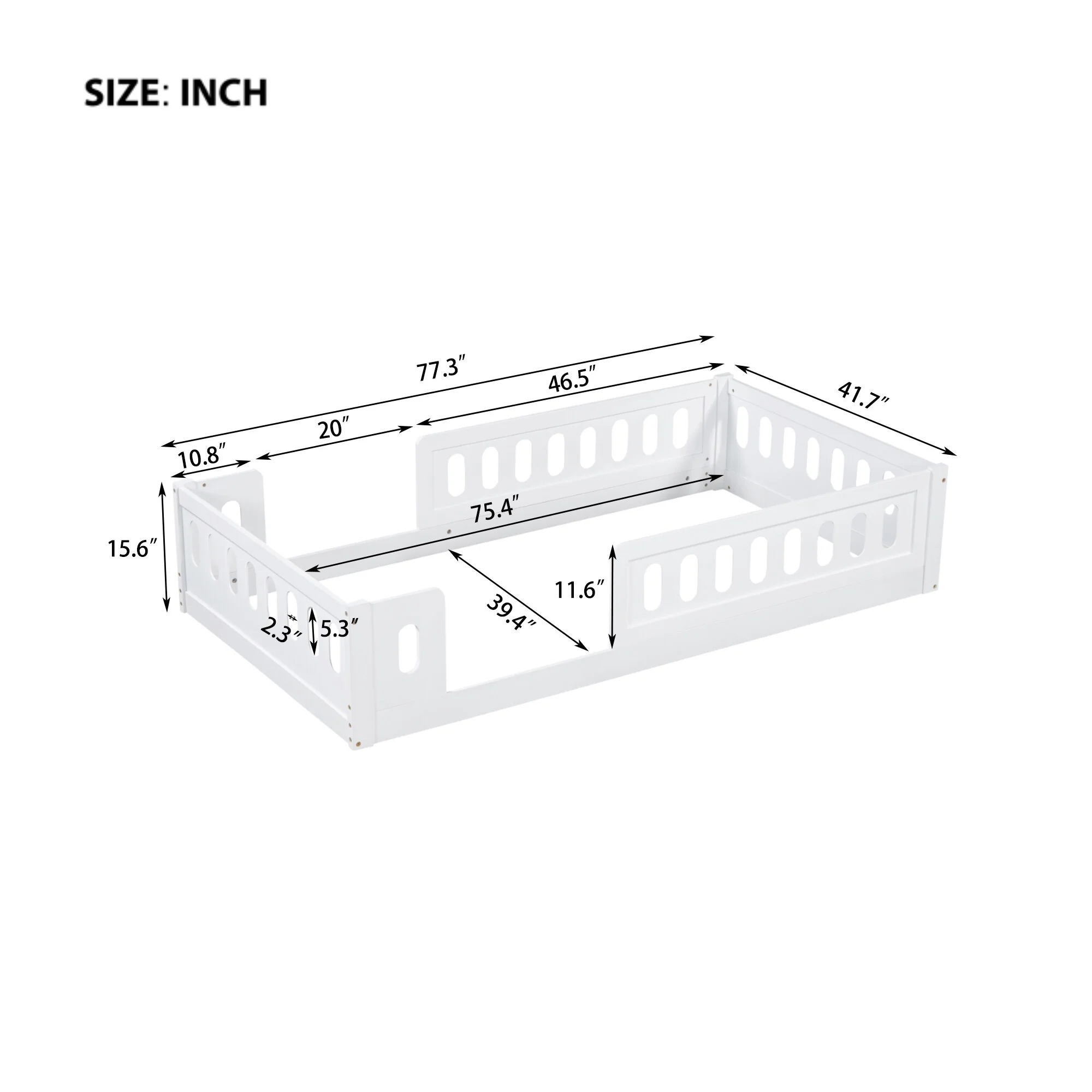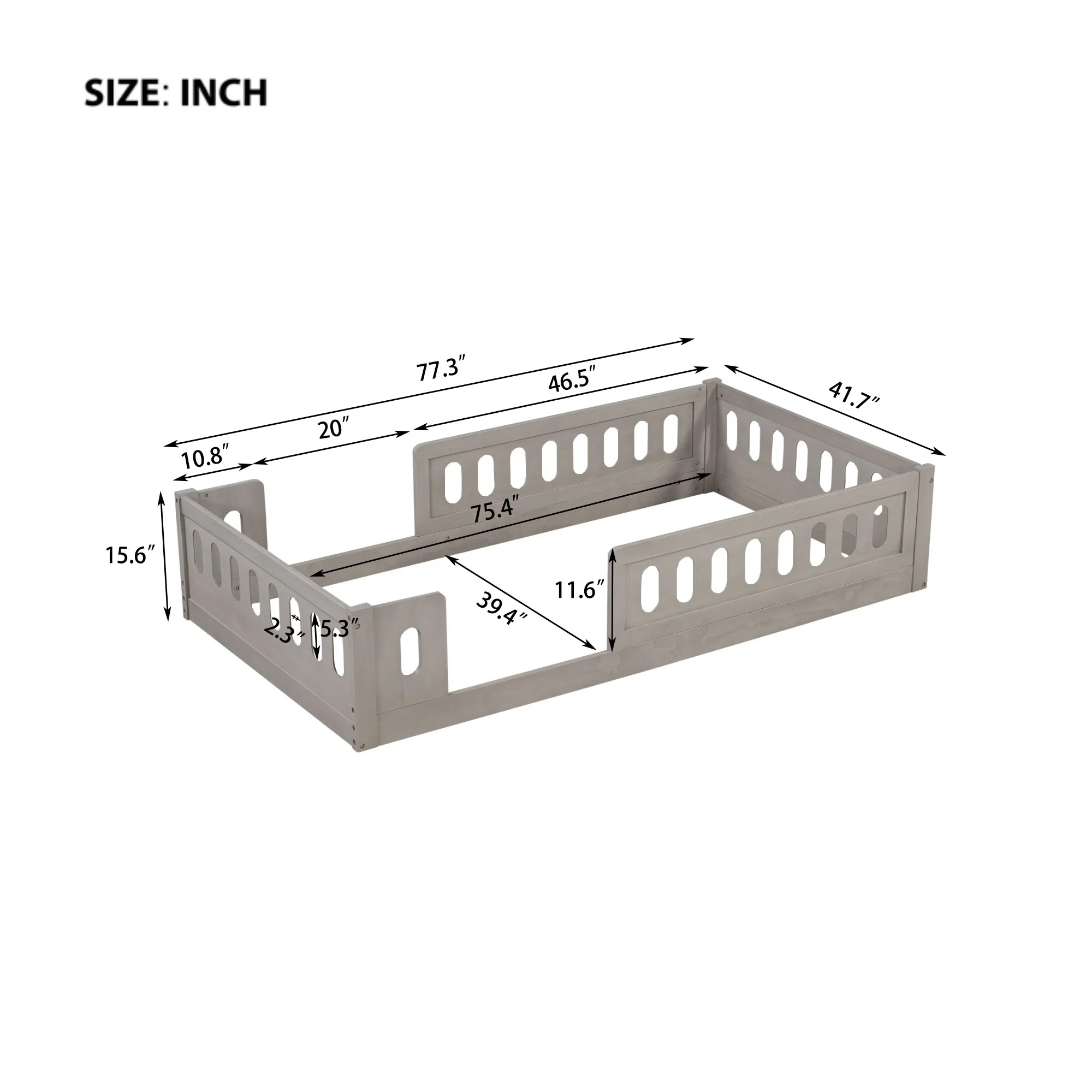 Wood Bedroom Twin Size Platform Bed with Guardrail for Kids