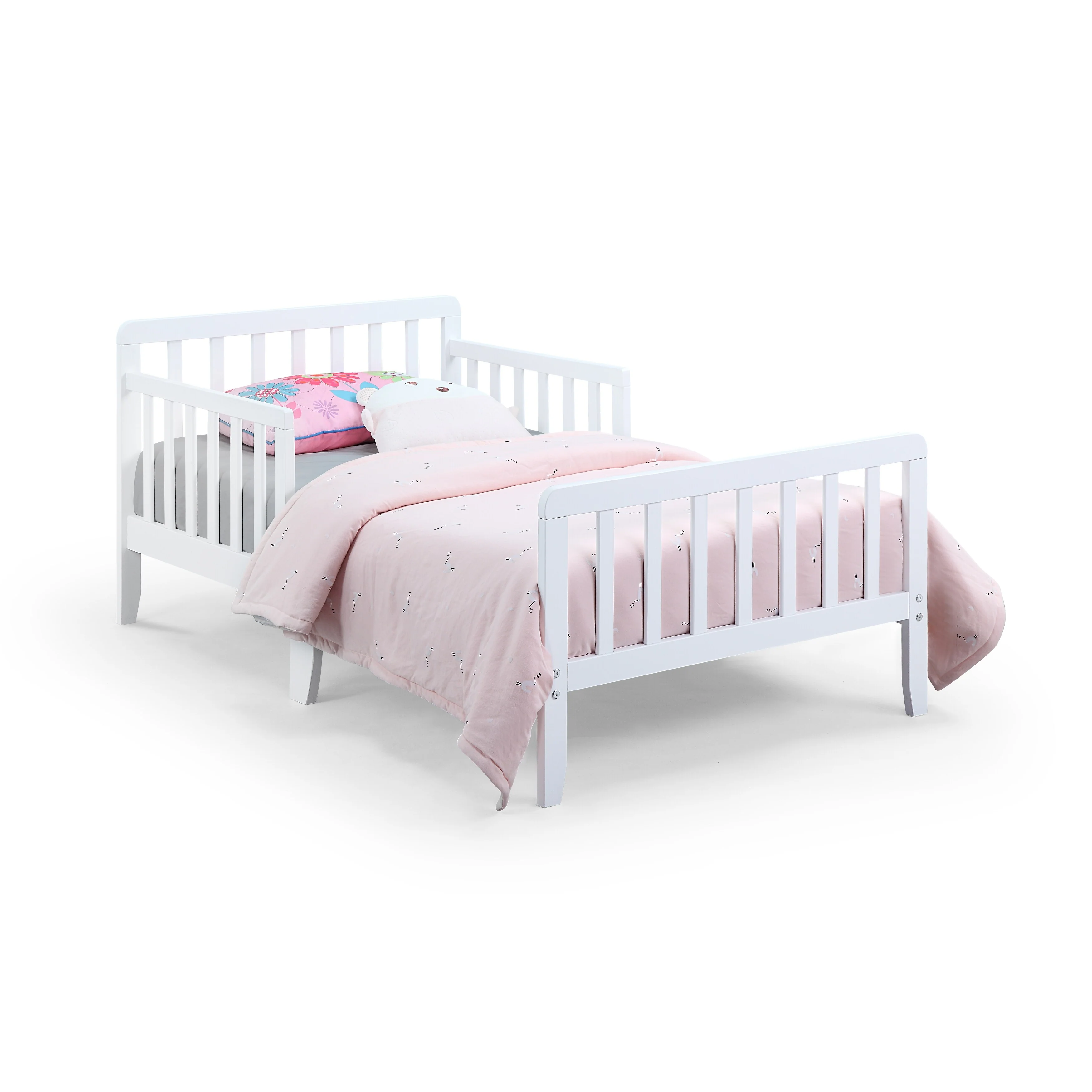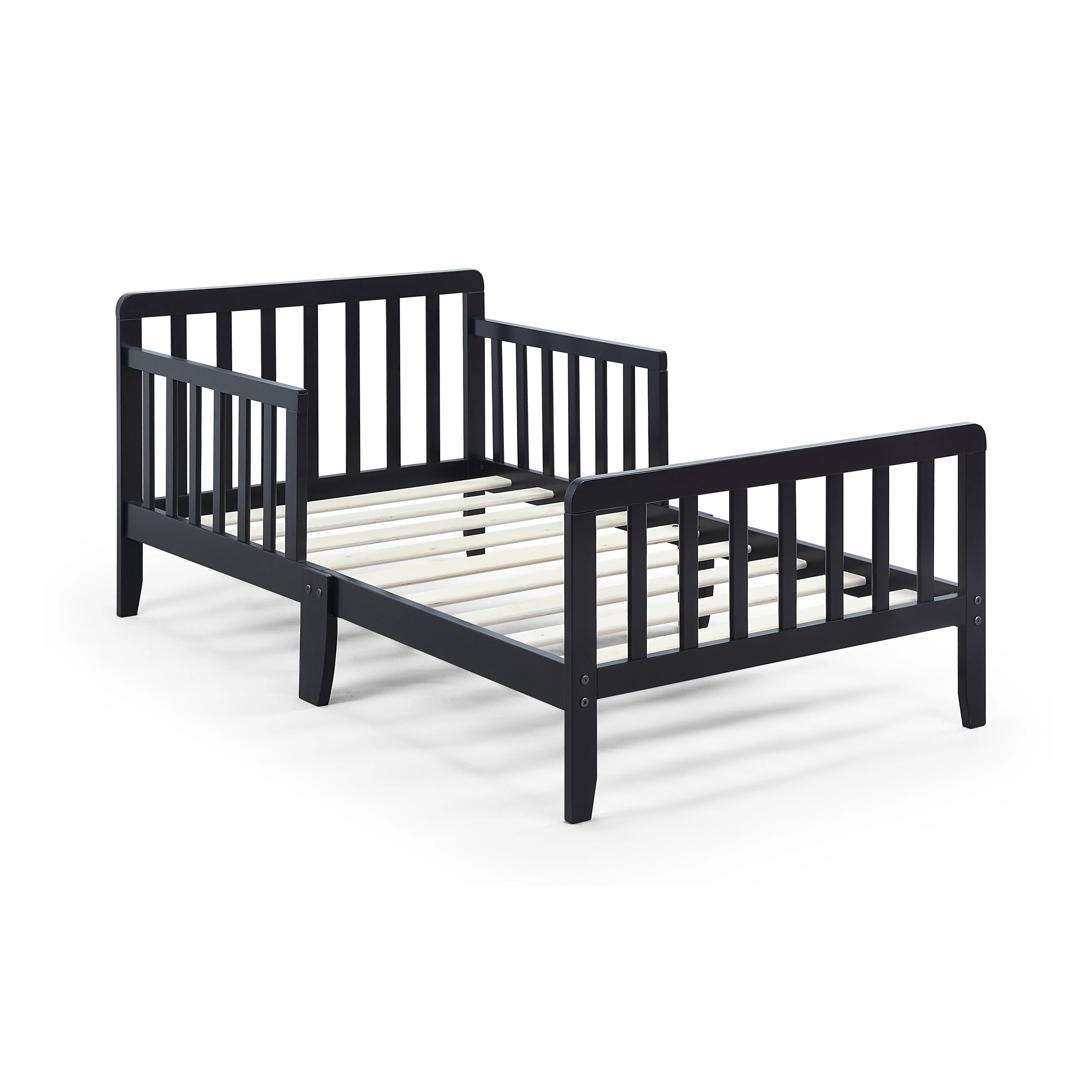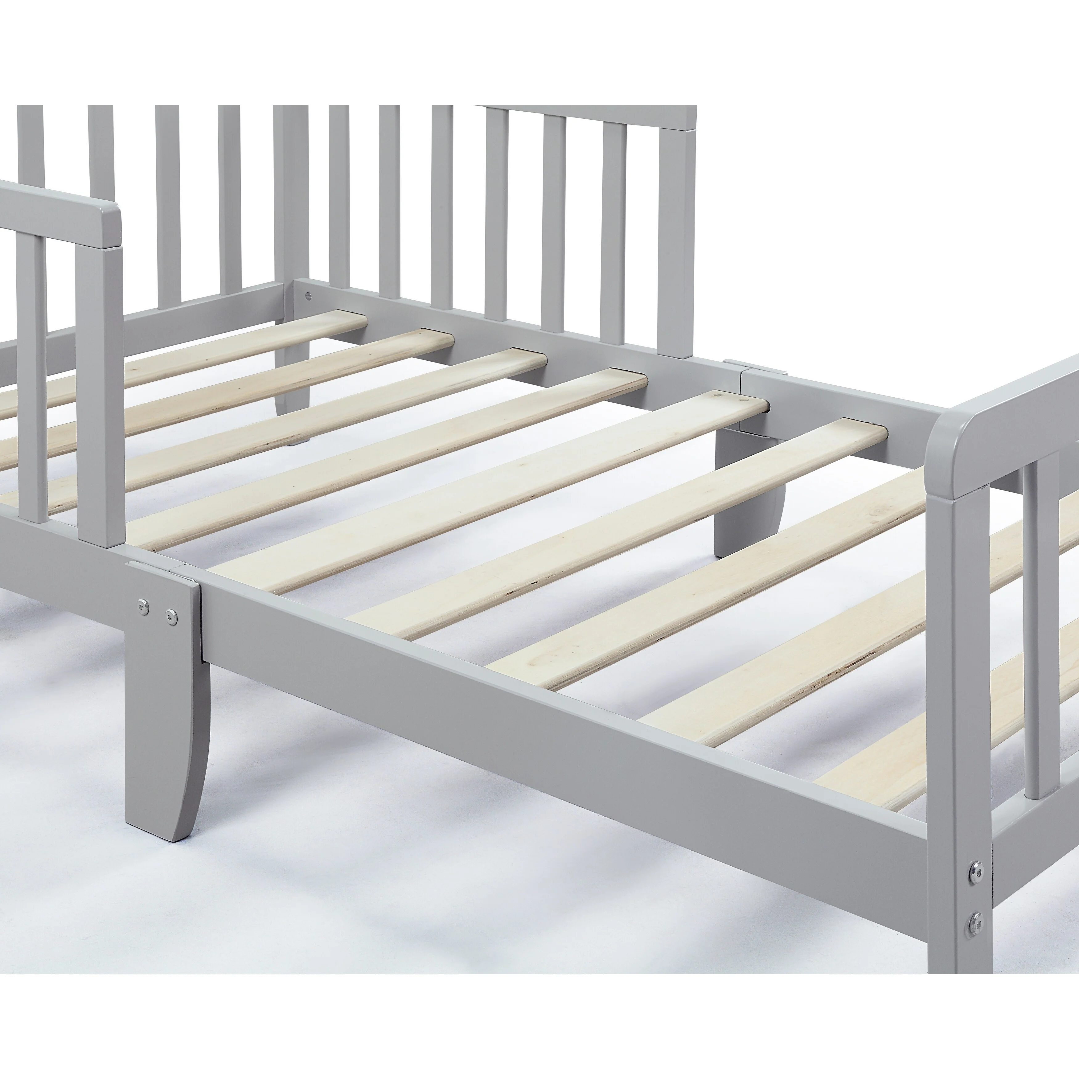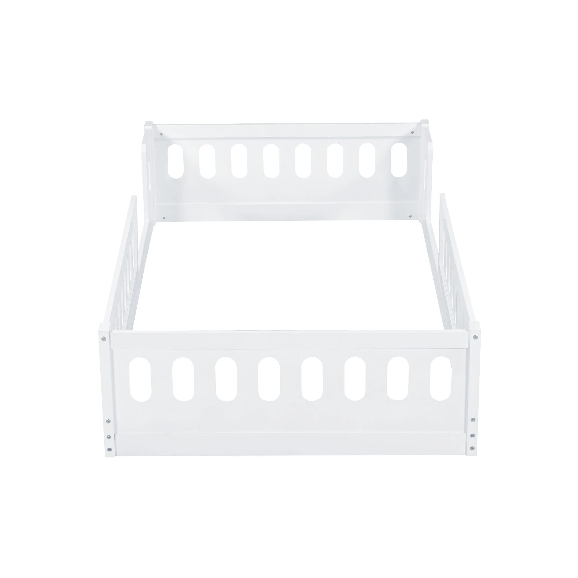 Wood Bedroom Twin Size Platform Bed with Guardrail for Kids