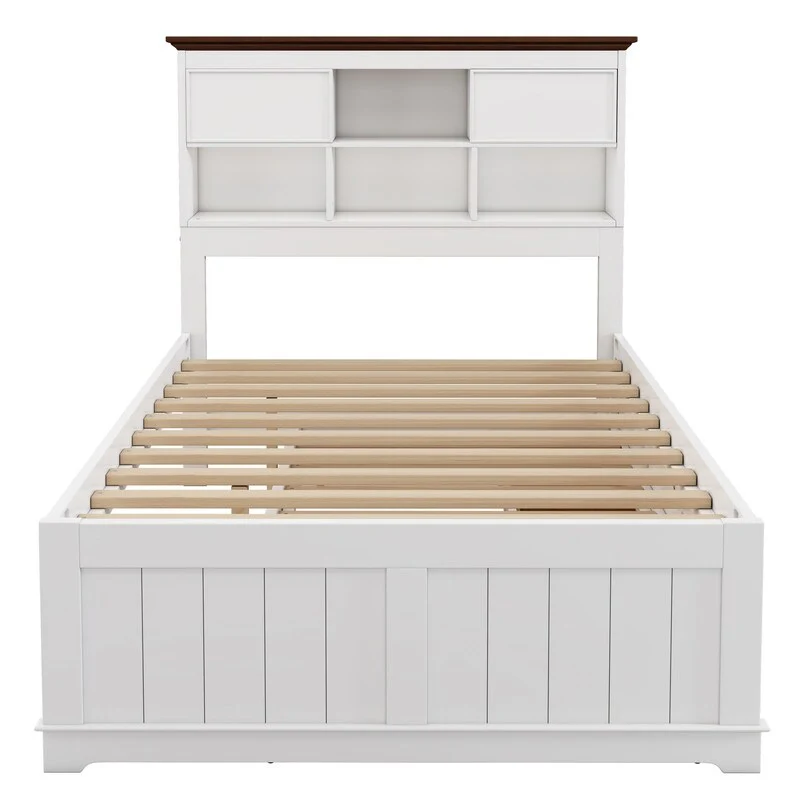 Pine Wood Twin Size Platform Bed Frame with Slat Support and Headboard-Footboard
