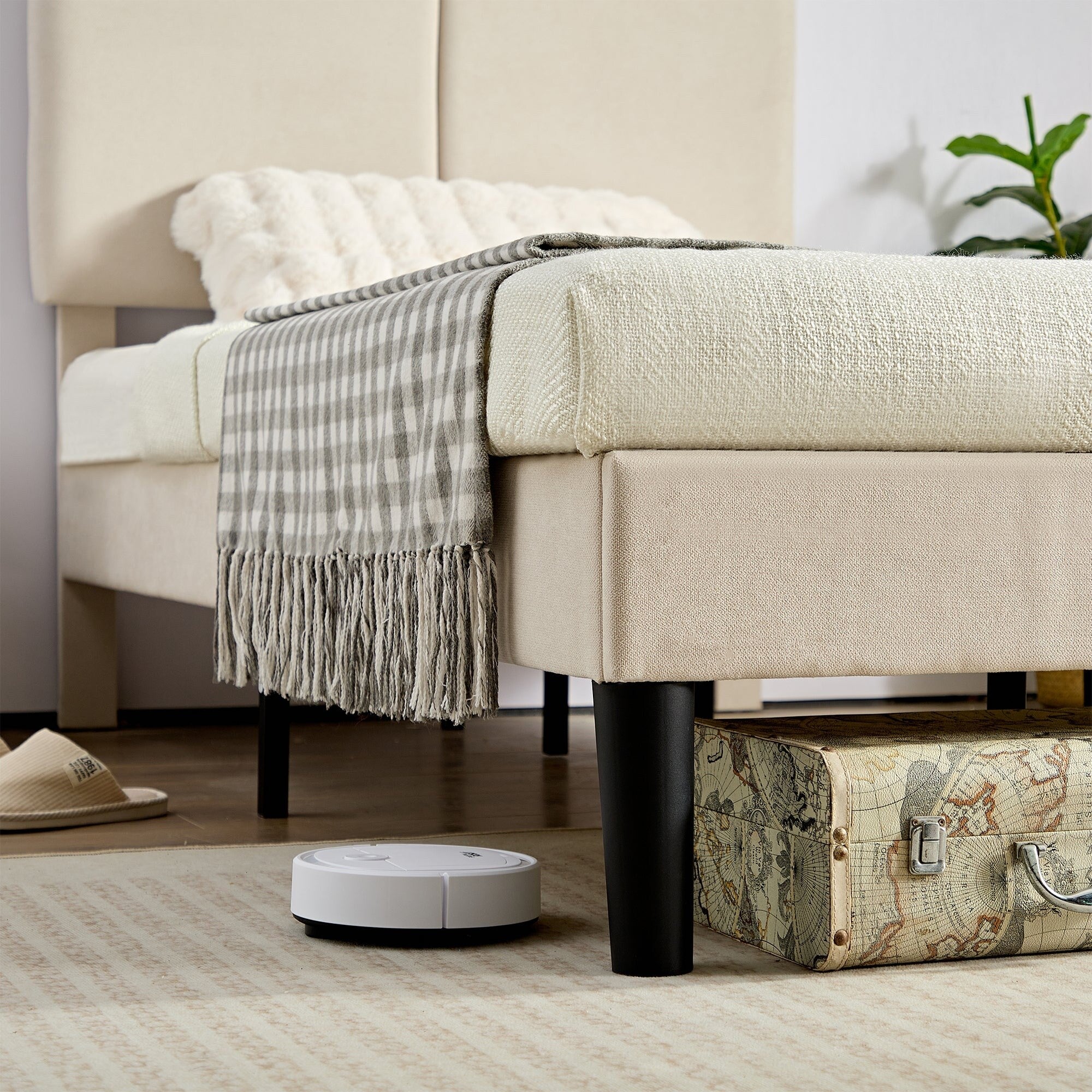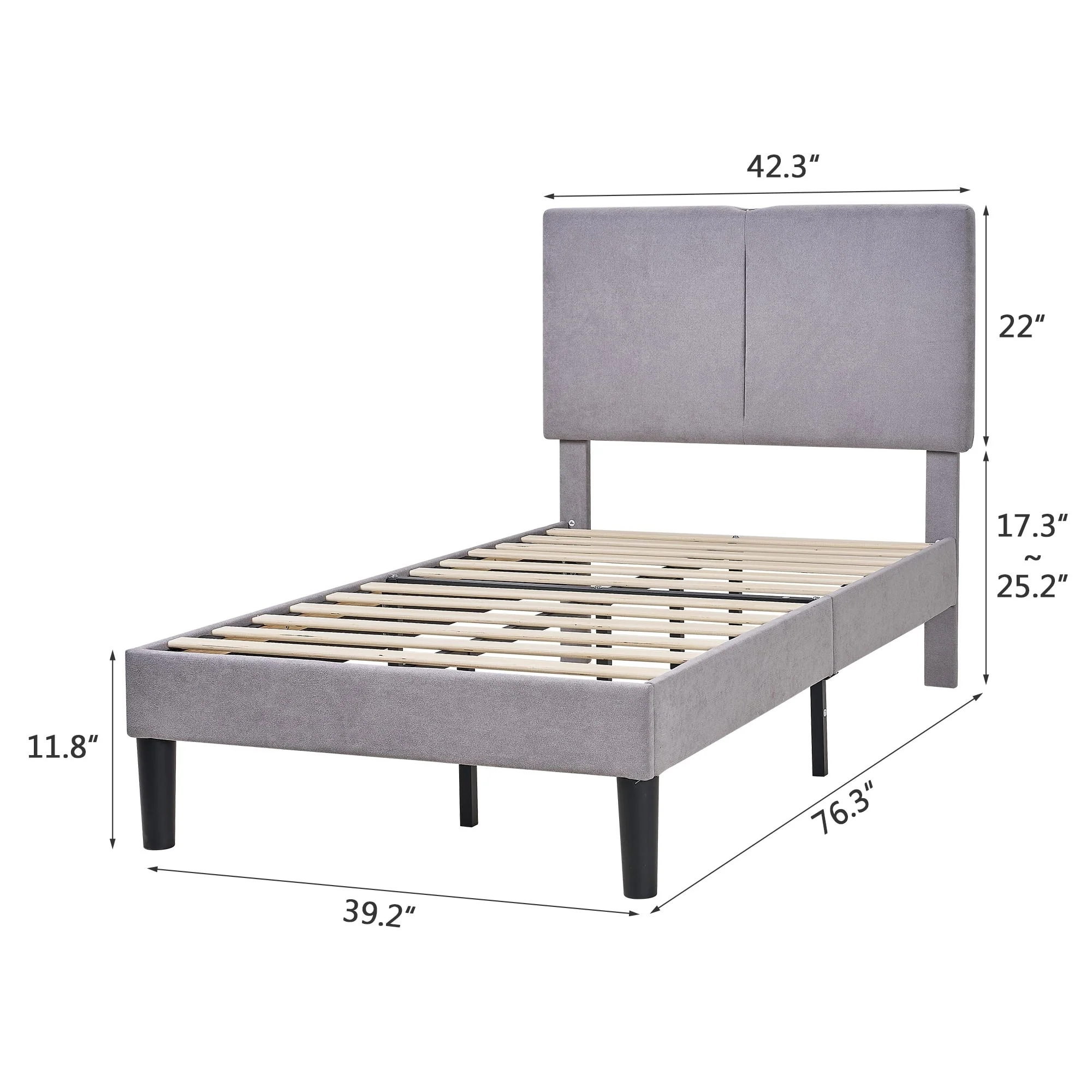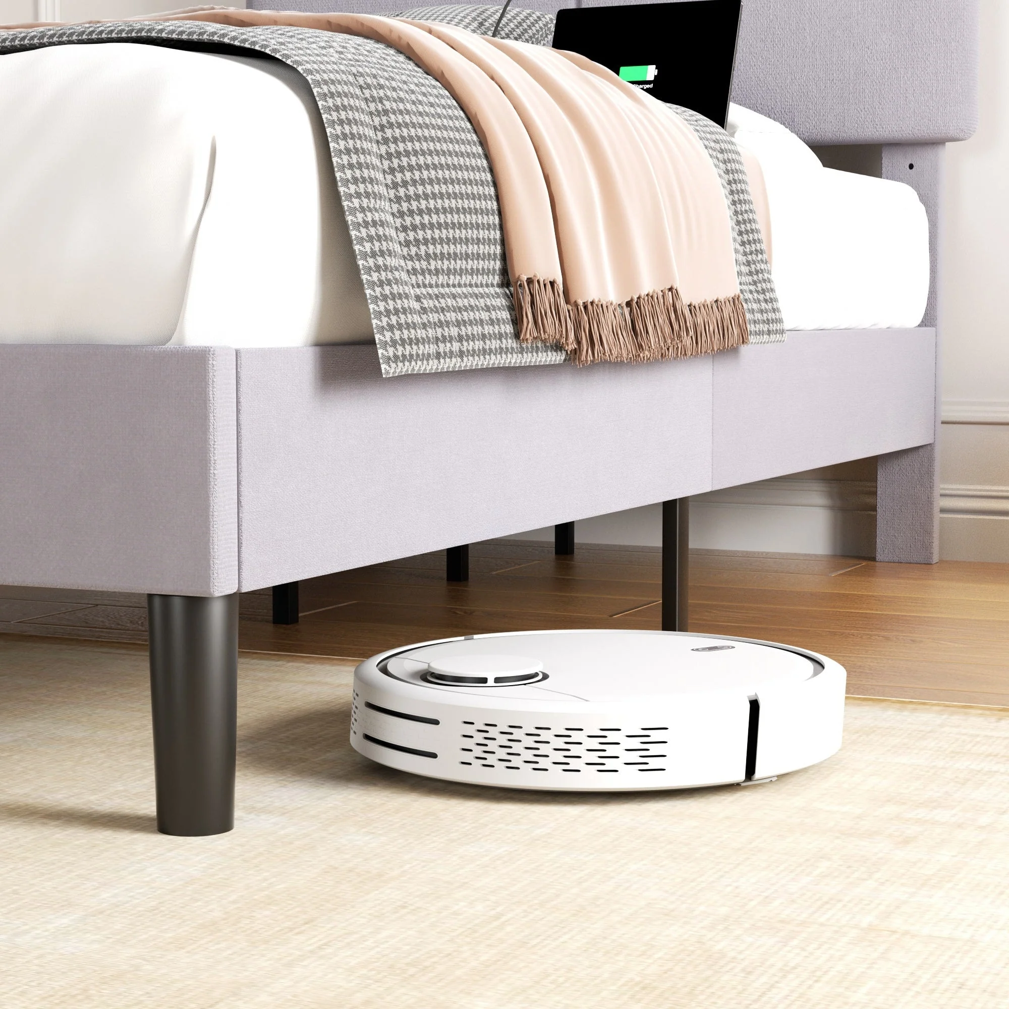 Javlergo Upholstered Platform Bed Frame with 2 USB Charging Station & Adjustable Headboard, Kids Bed Set of 2