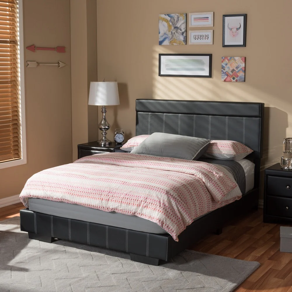 Baxton Studio Sousanna Modern and Contemporary Full Size Black Faux Leather Platform Bed