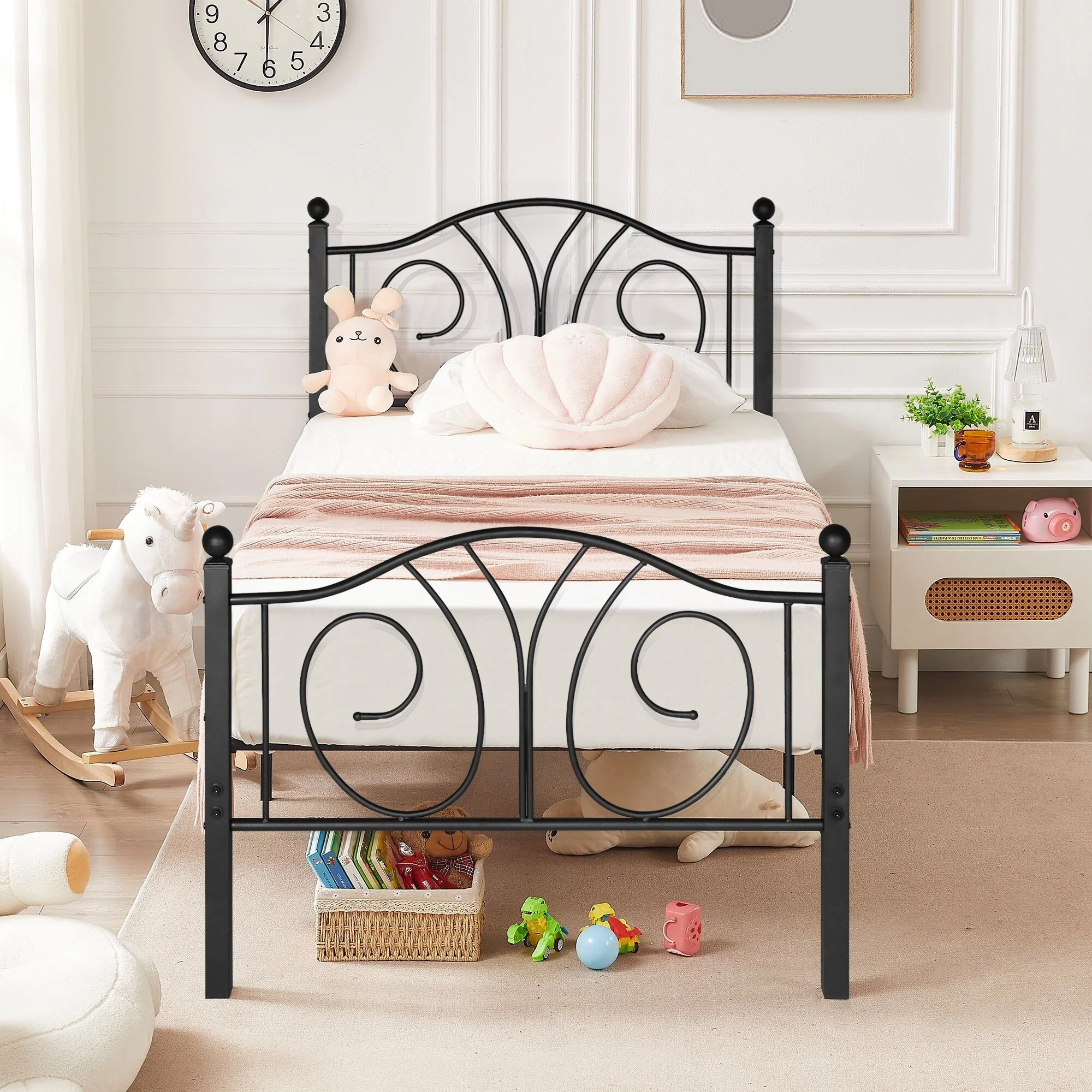 VECELO Kids Bed Frame Set of 2, Metal Bed Frame with Headboard, Twin Size Platform Bed