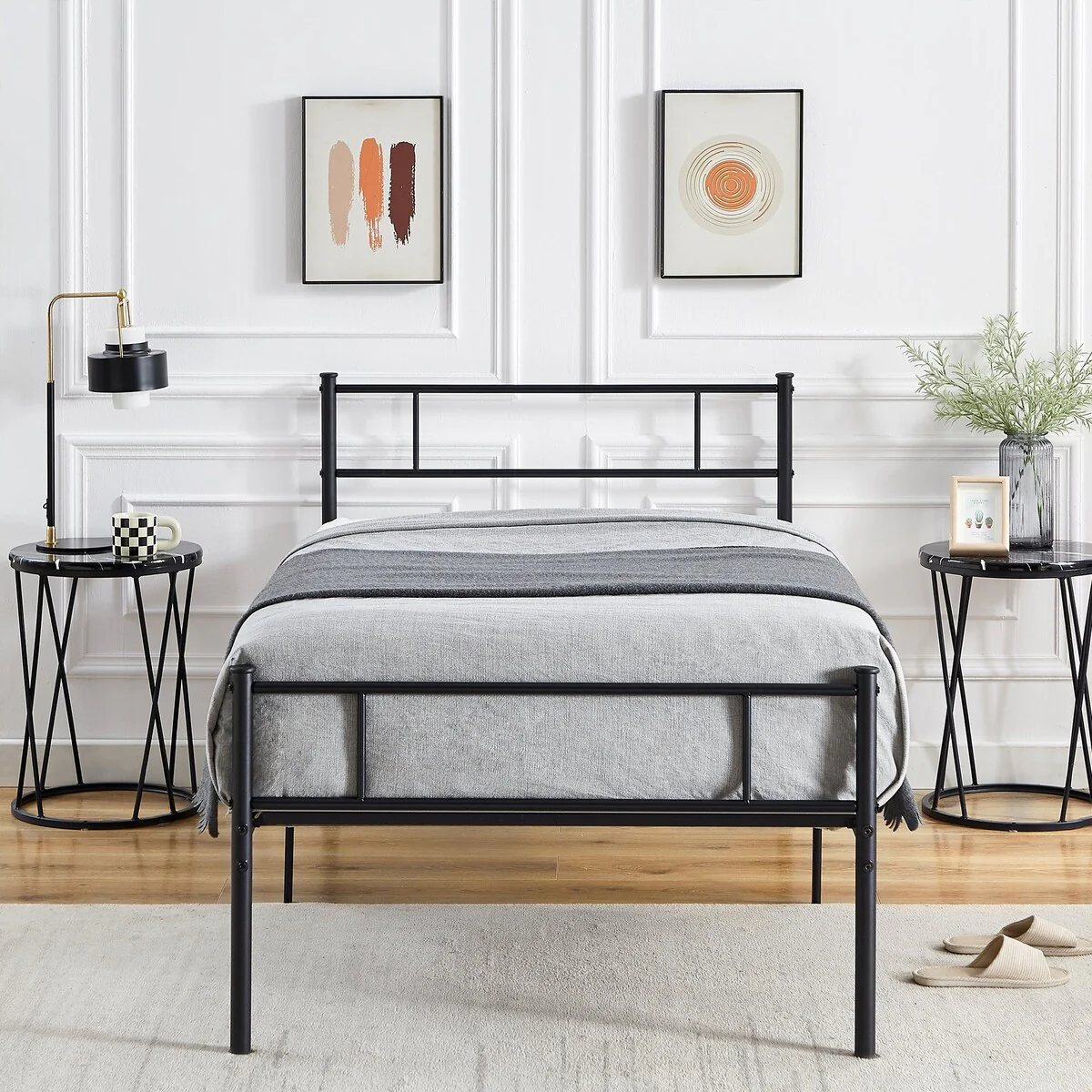 Black Metal Twin Size Platform Bed Frame with Headboard Included Perfect for Any Bedroom