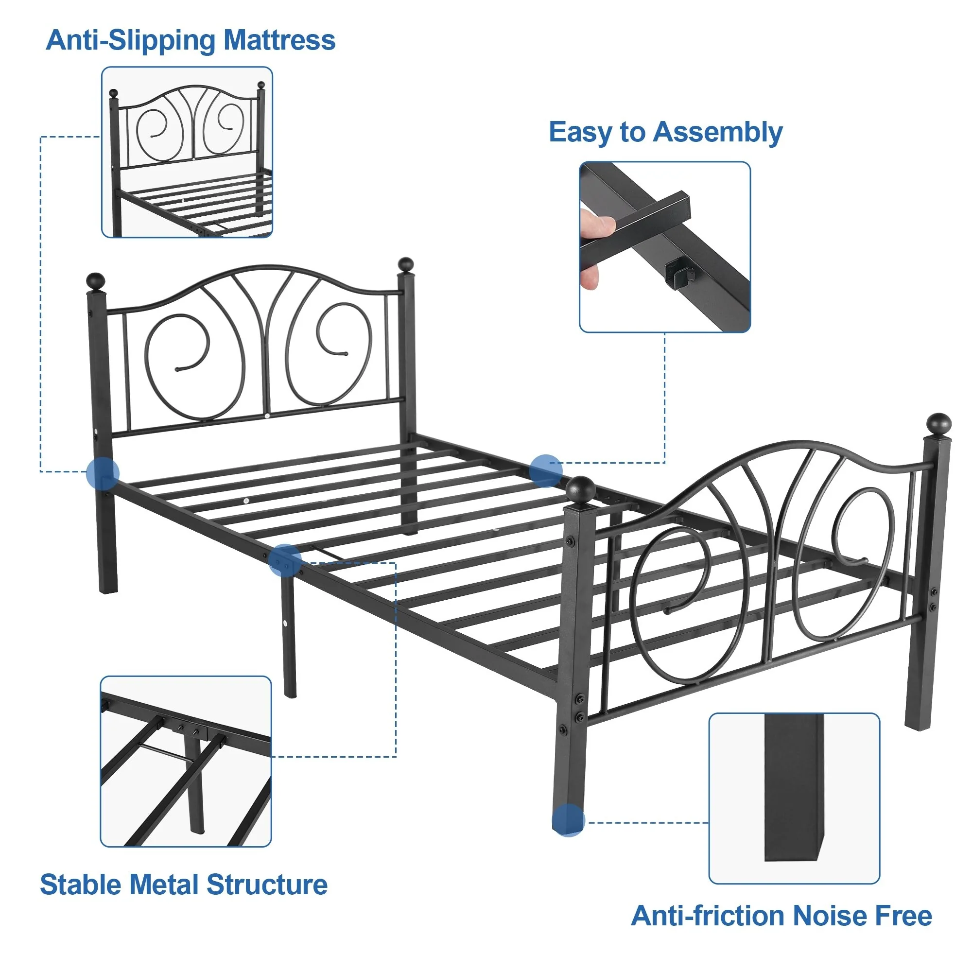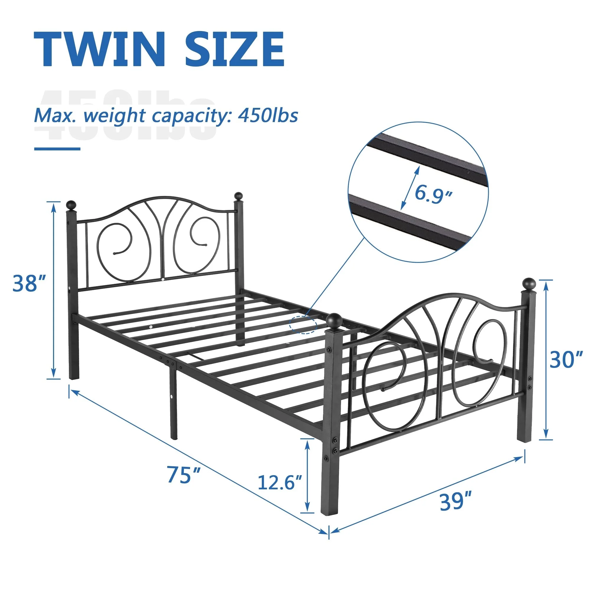 VECELO Platform Twin Metal Bed Frame Mattress Foundation Headboard,Twin Size Bed Set of 2