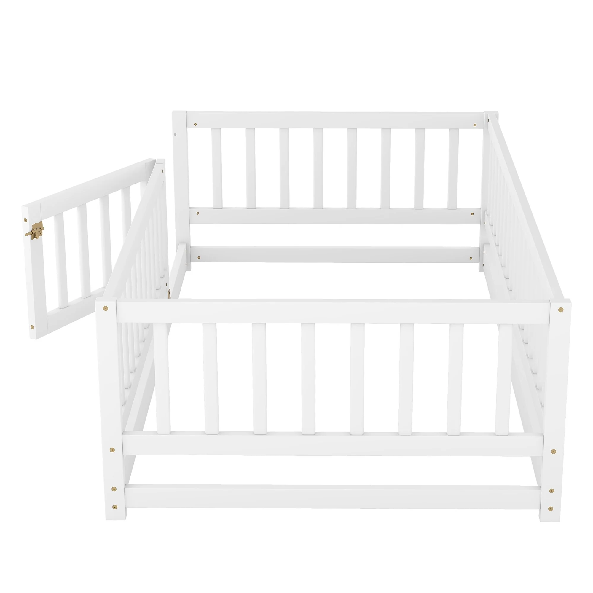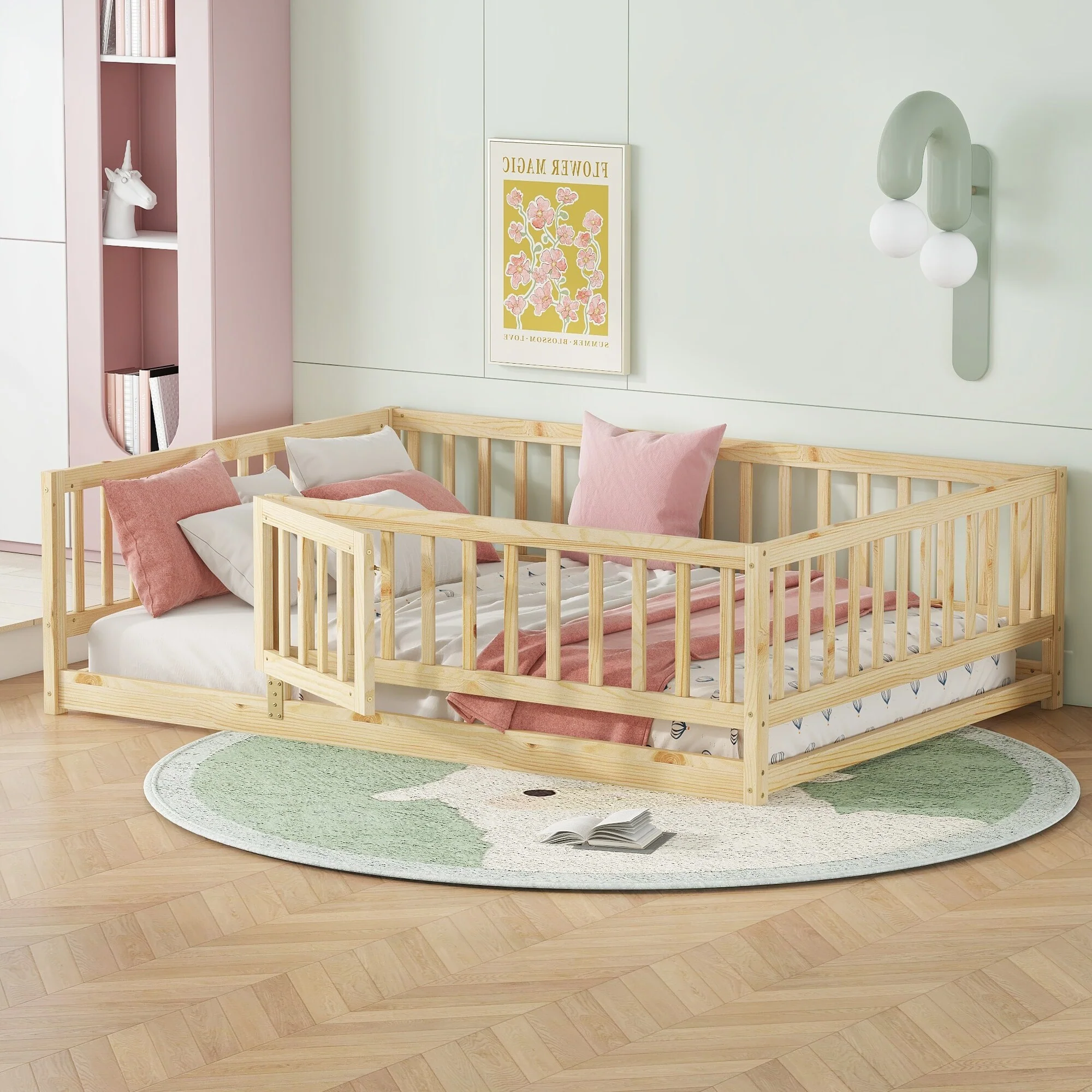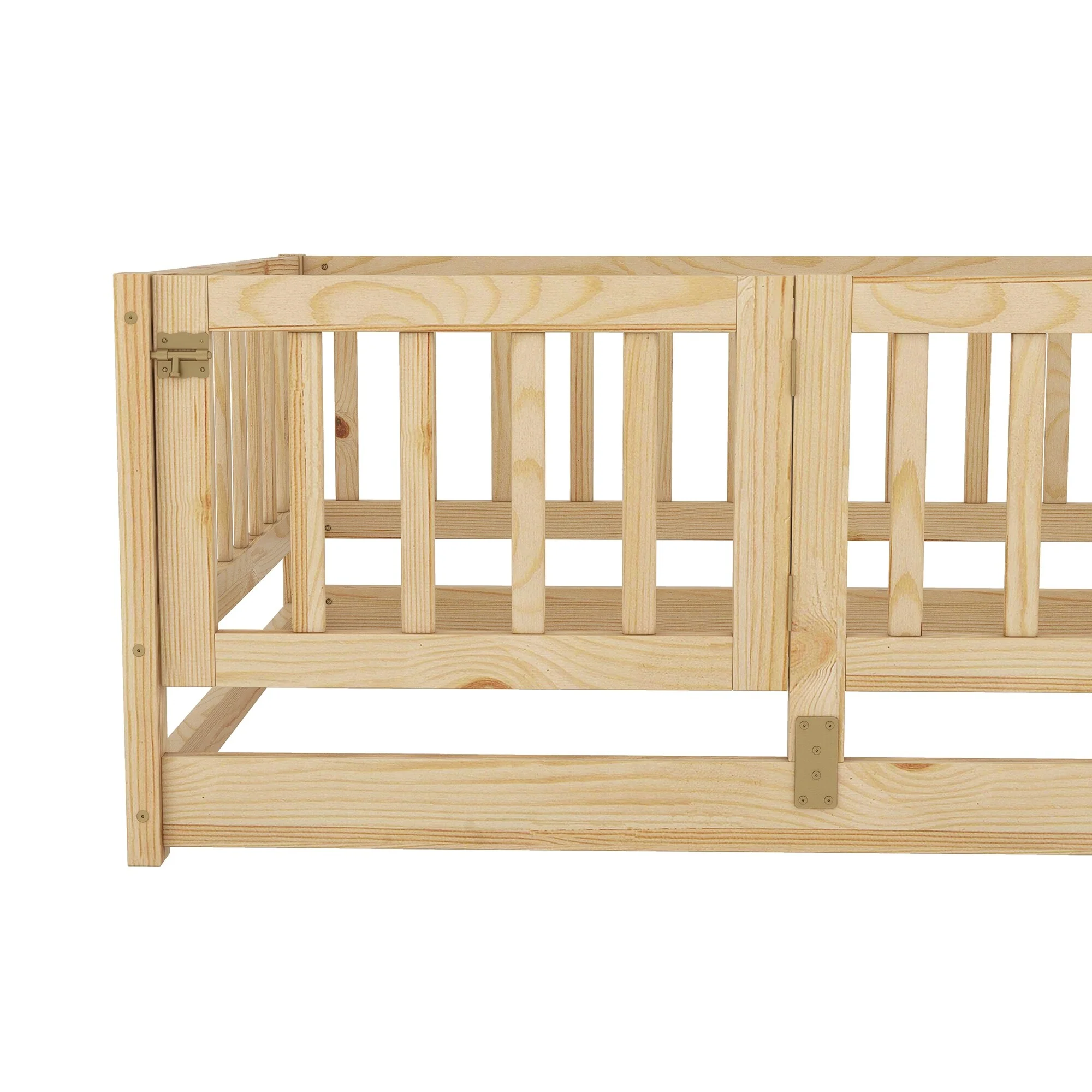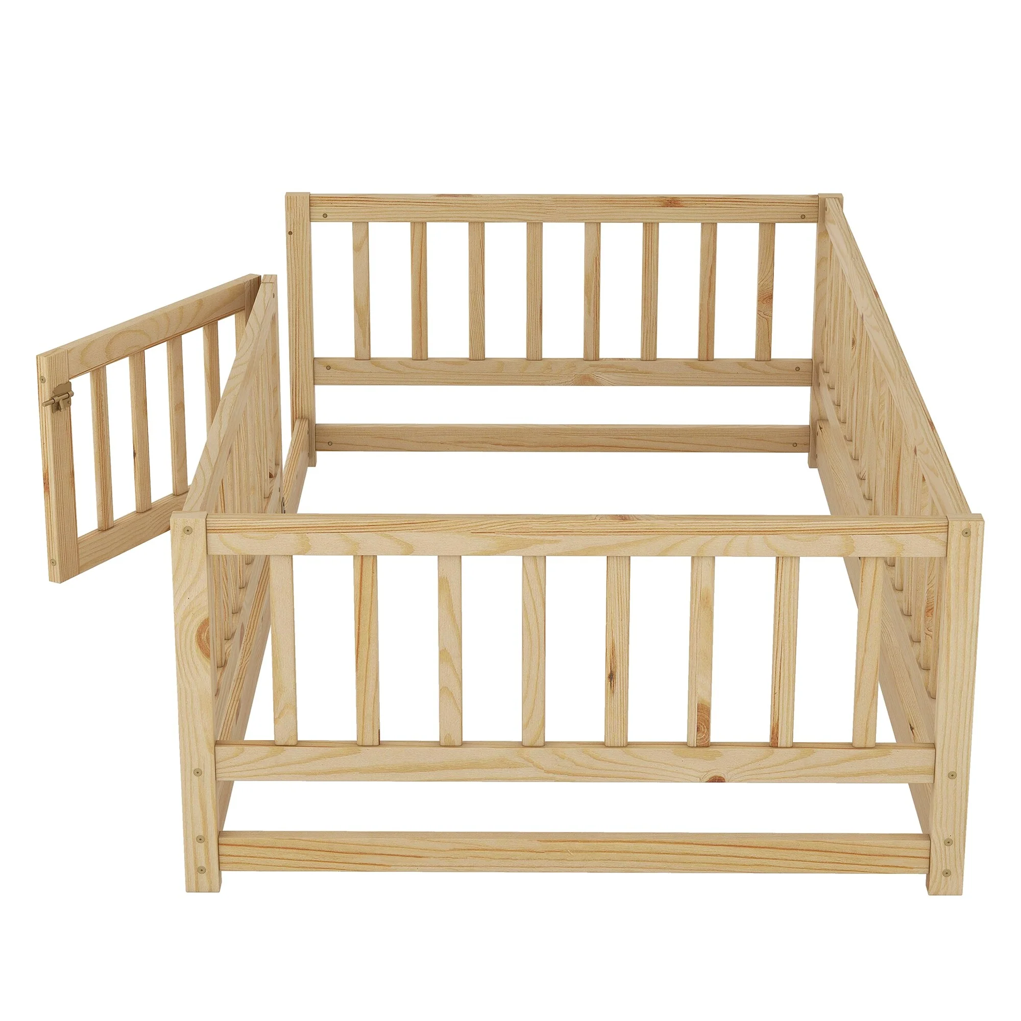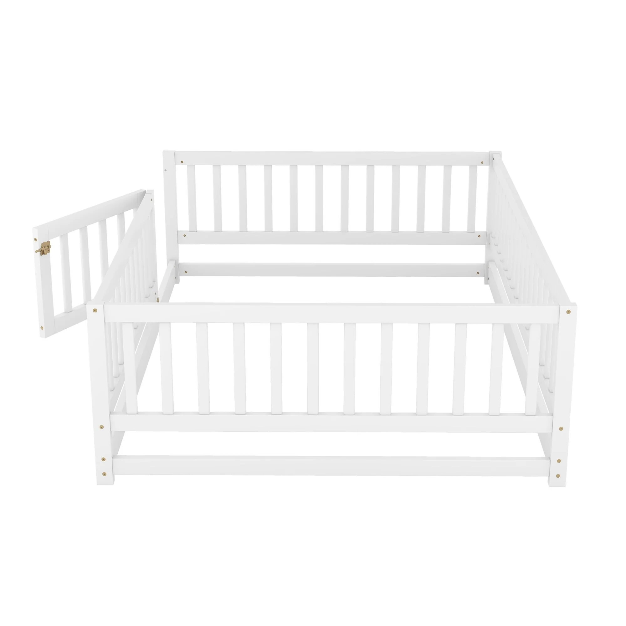 Montessori Floor Bed with Fence Guardrail and Removable Door Toddler Floor Wood Bed Frame for Kids Boys Girls Children's Room