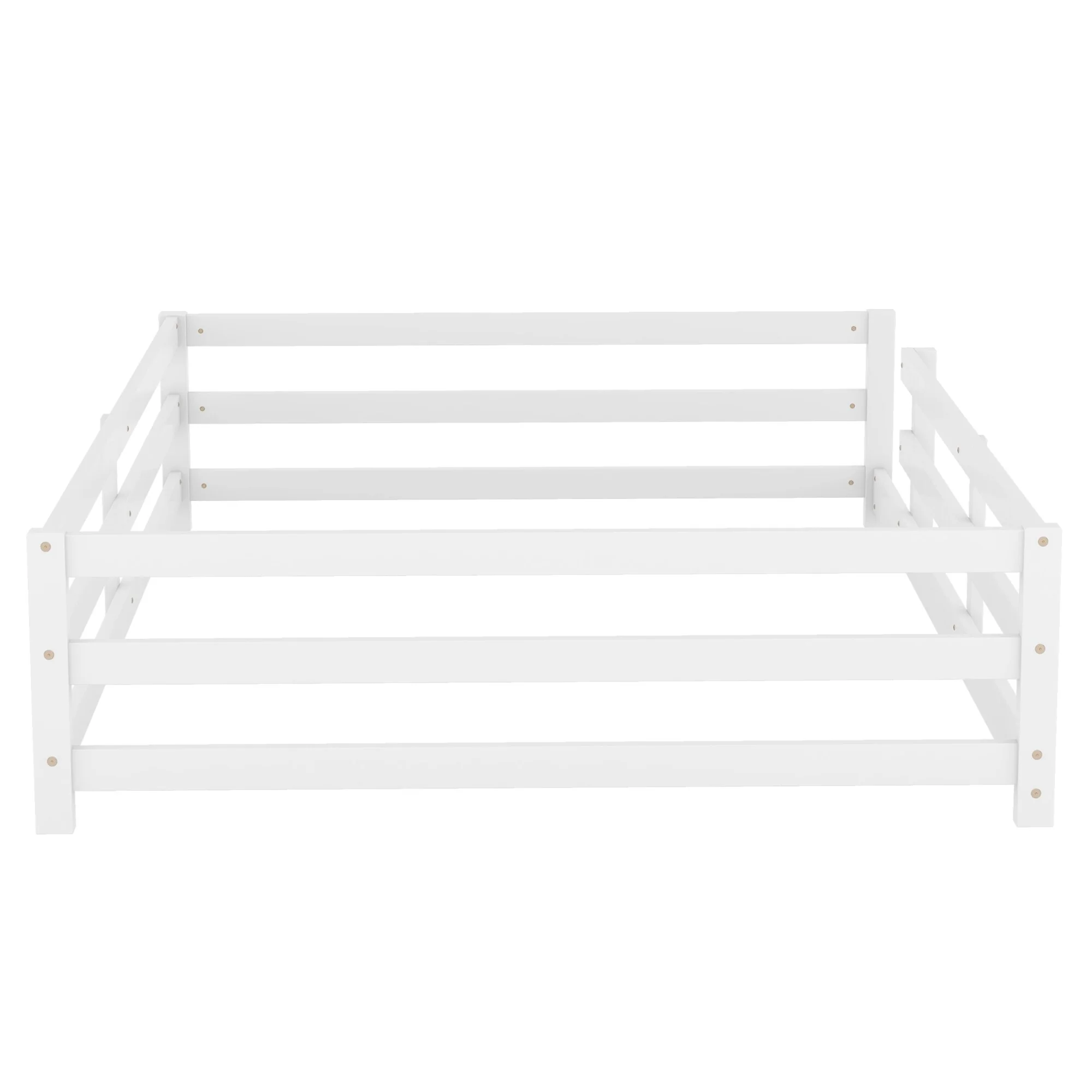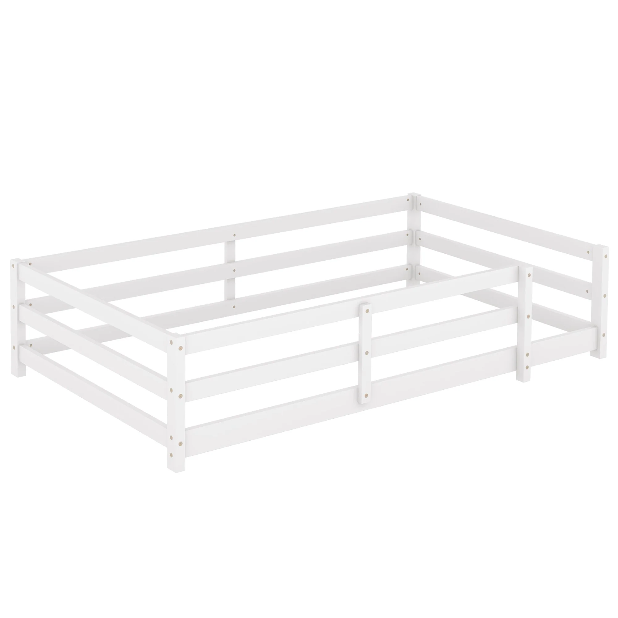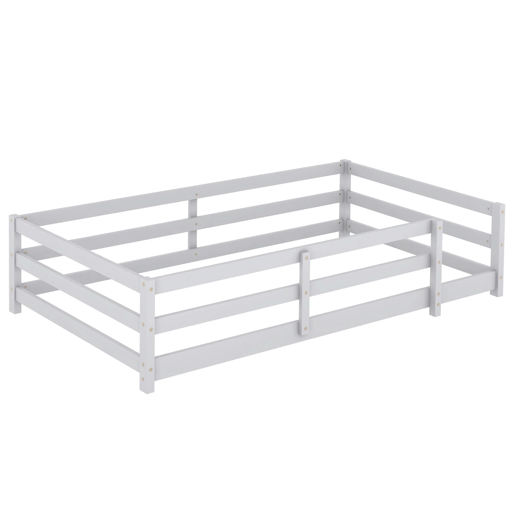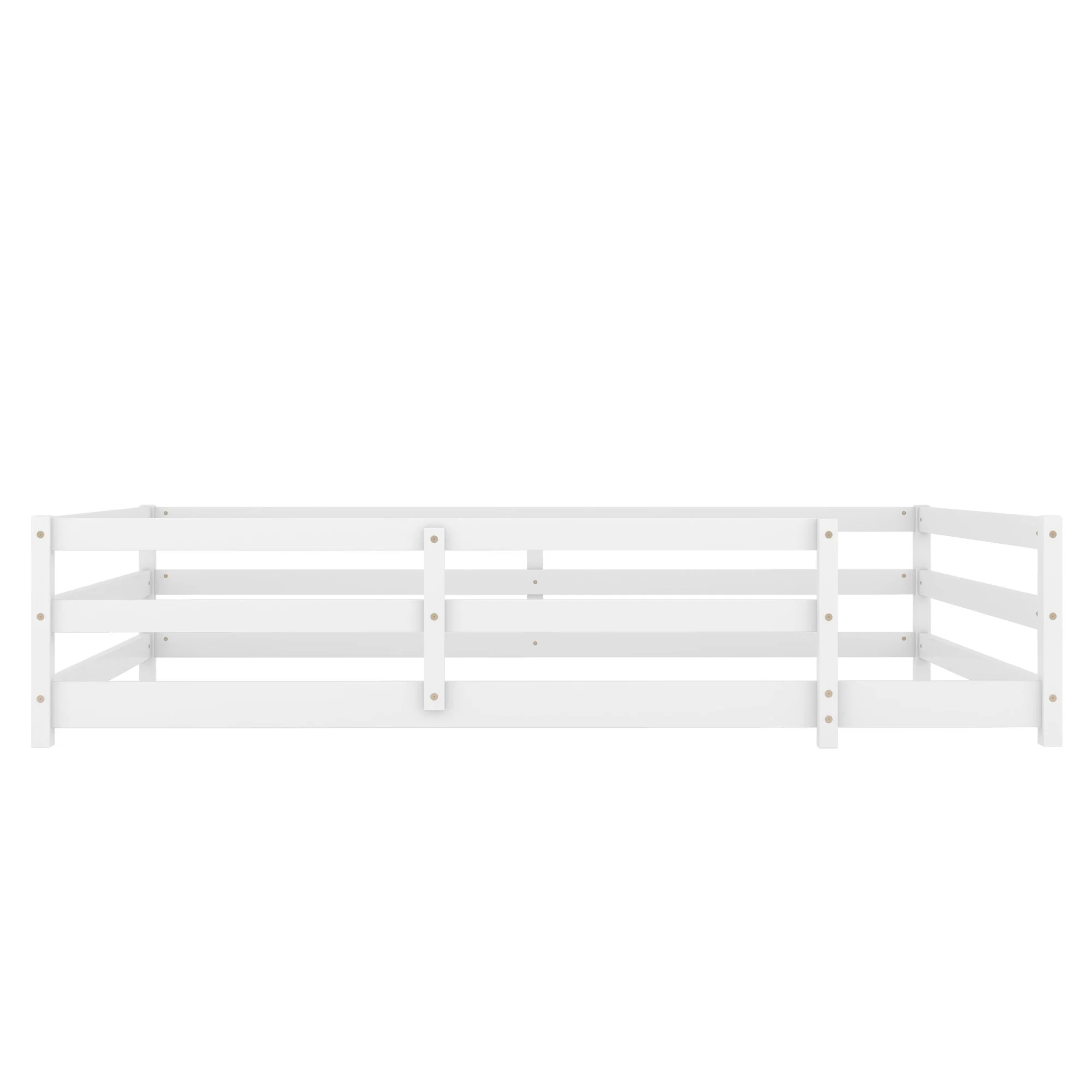 Toddler Montessori Bed Kids Floor Bed Frame with Fences, No Slats Wood Frame Bed for Kids Girls Boys Children's Room