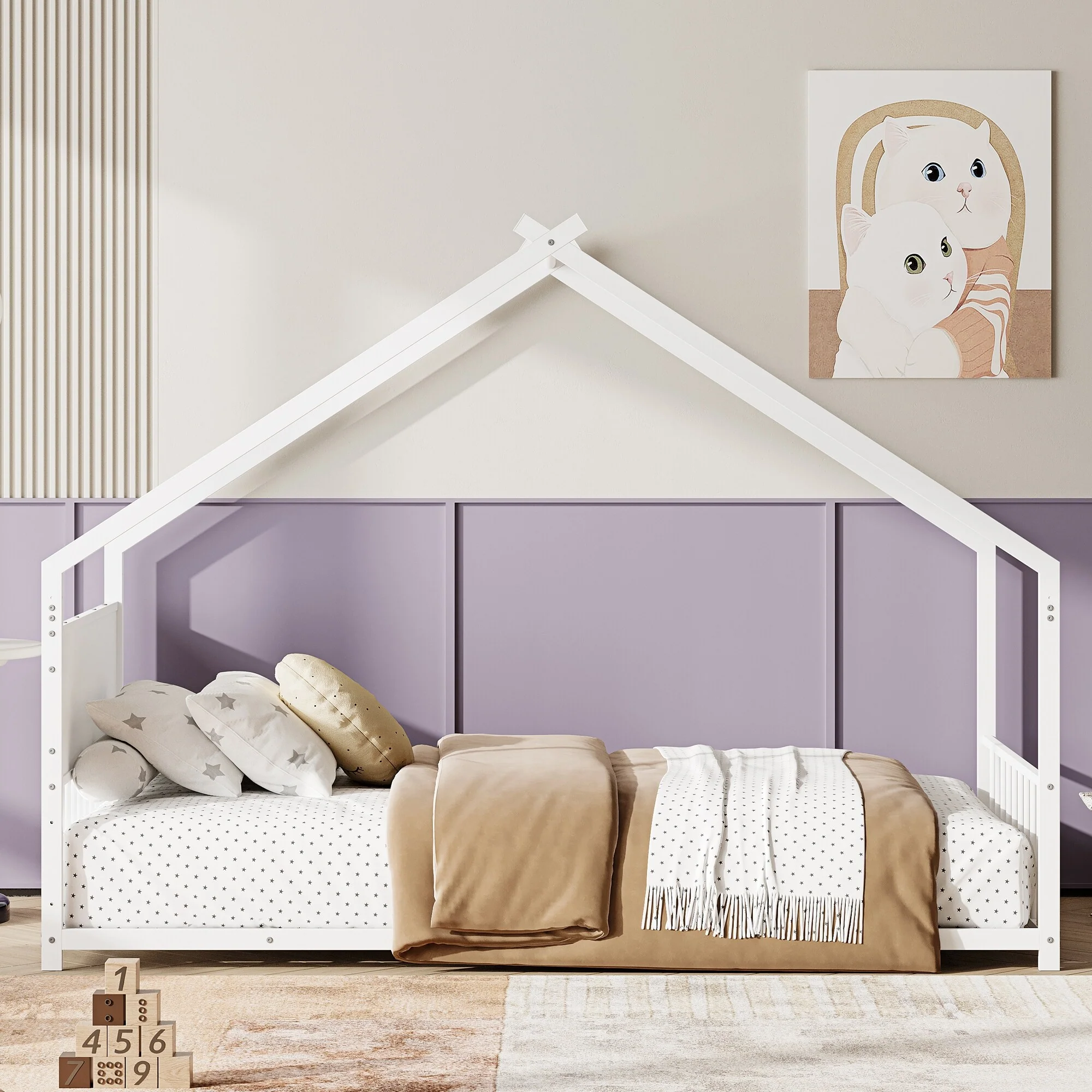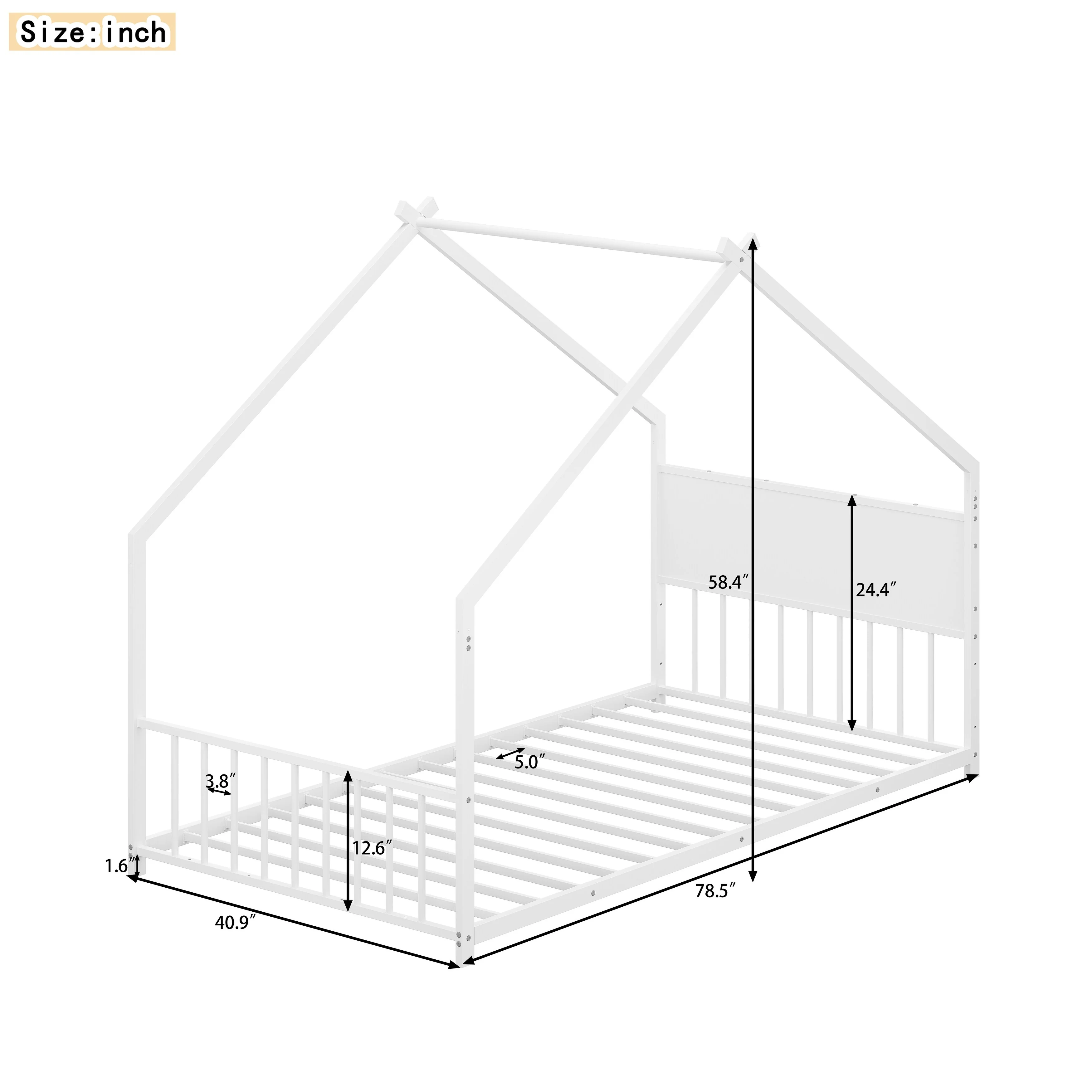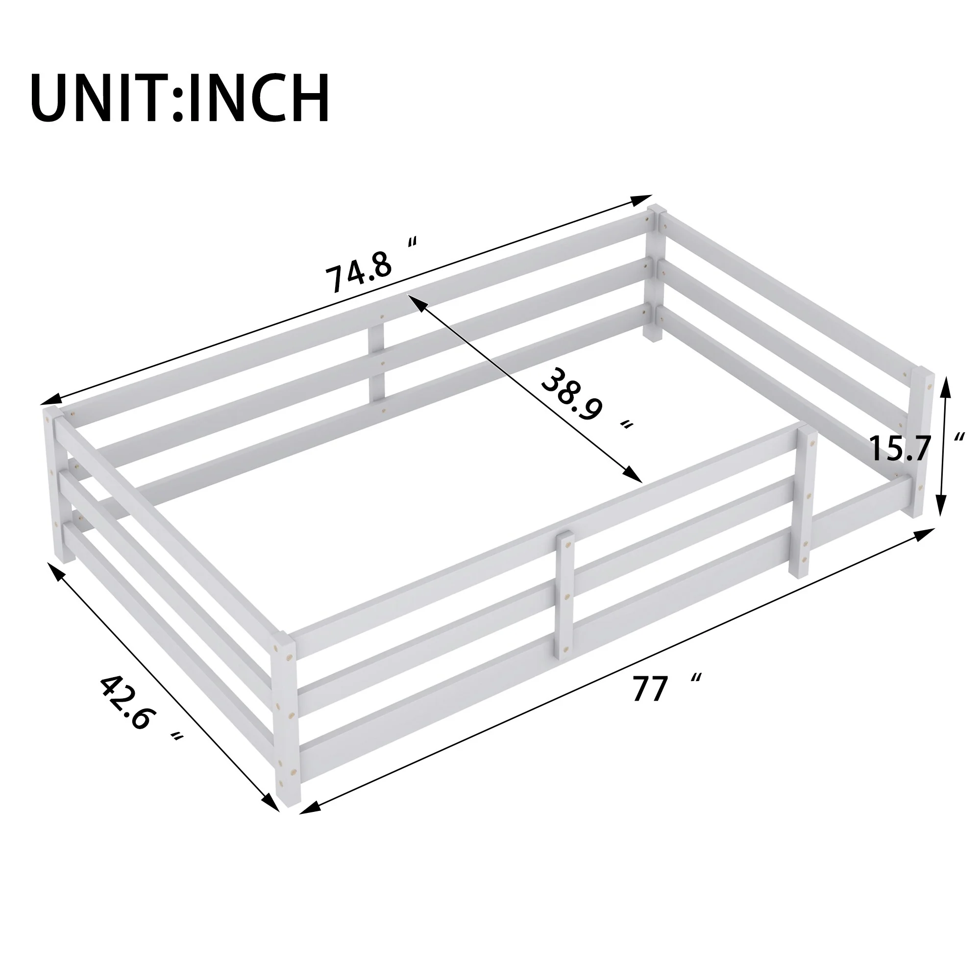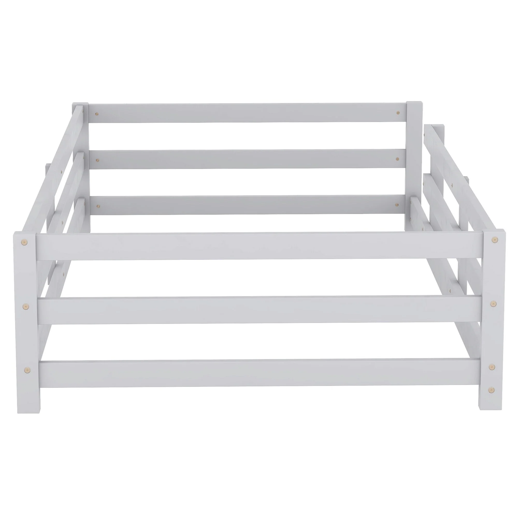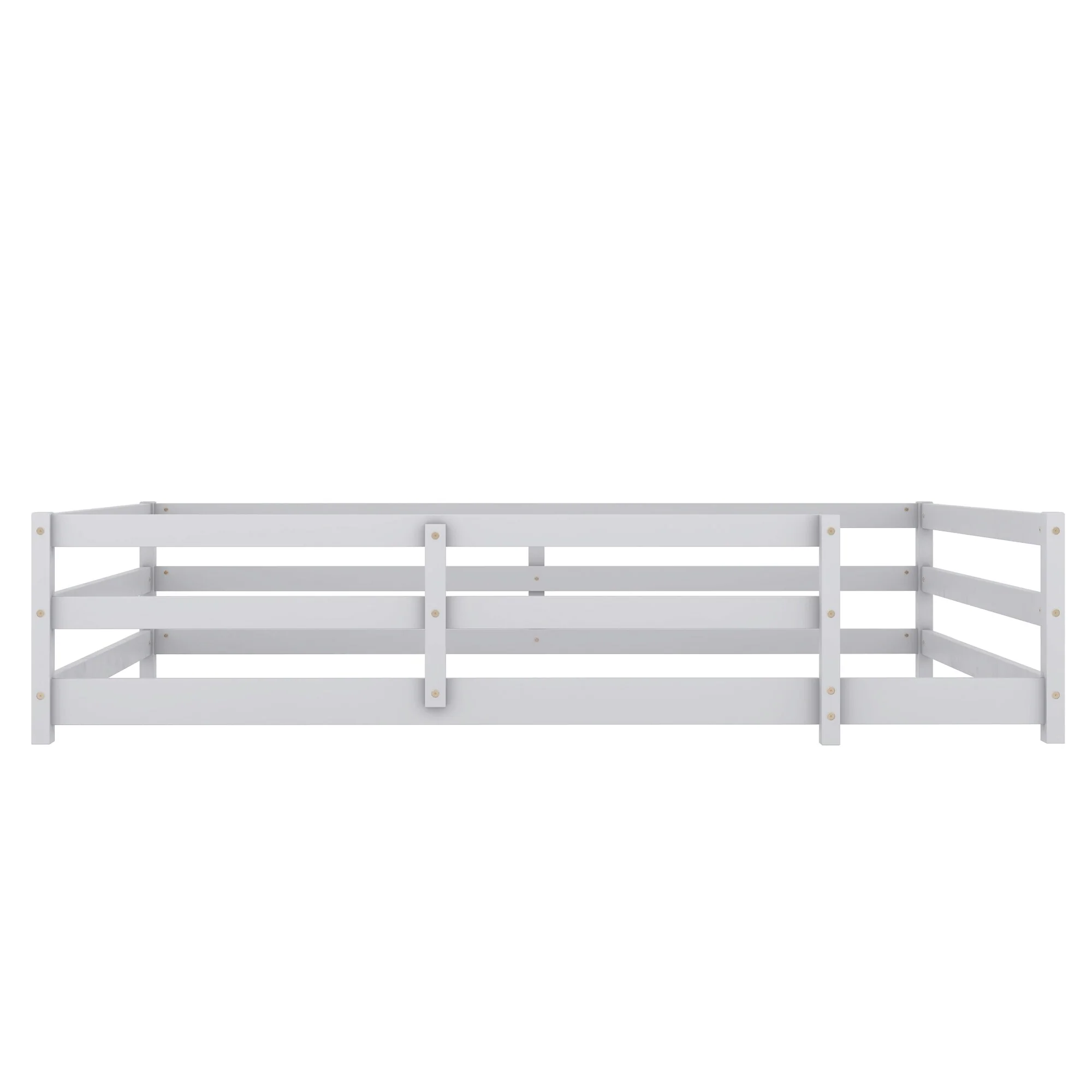 Toddler Montessori Bed Kids Floor Bed Frame with Fences, No Slats Wood Frame Bed for Kids Girls Boys Children's Room