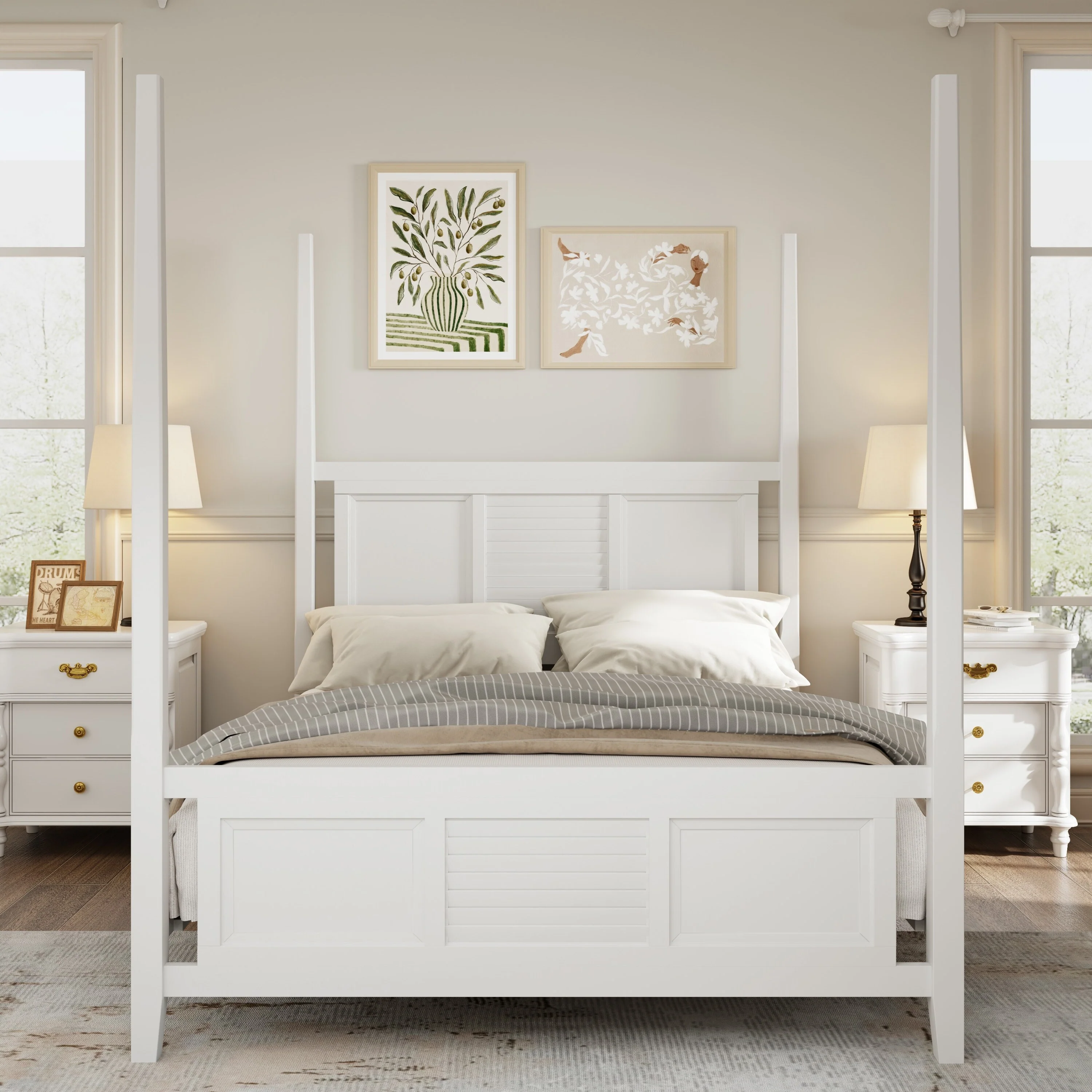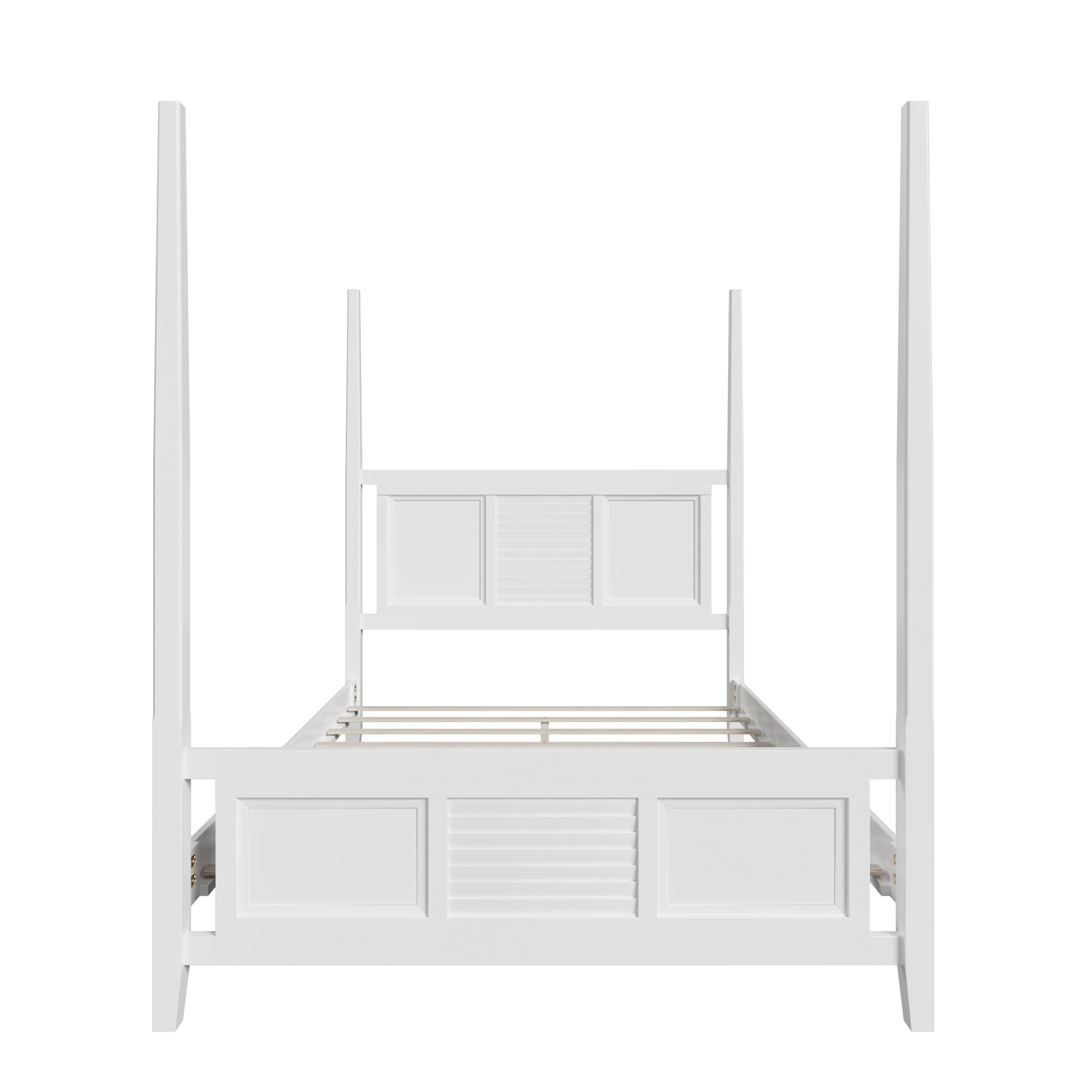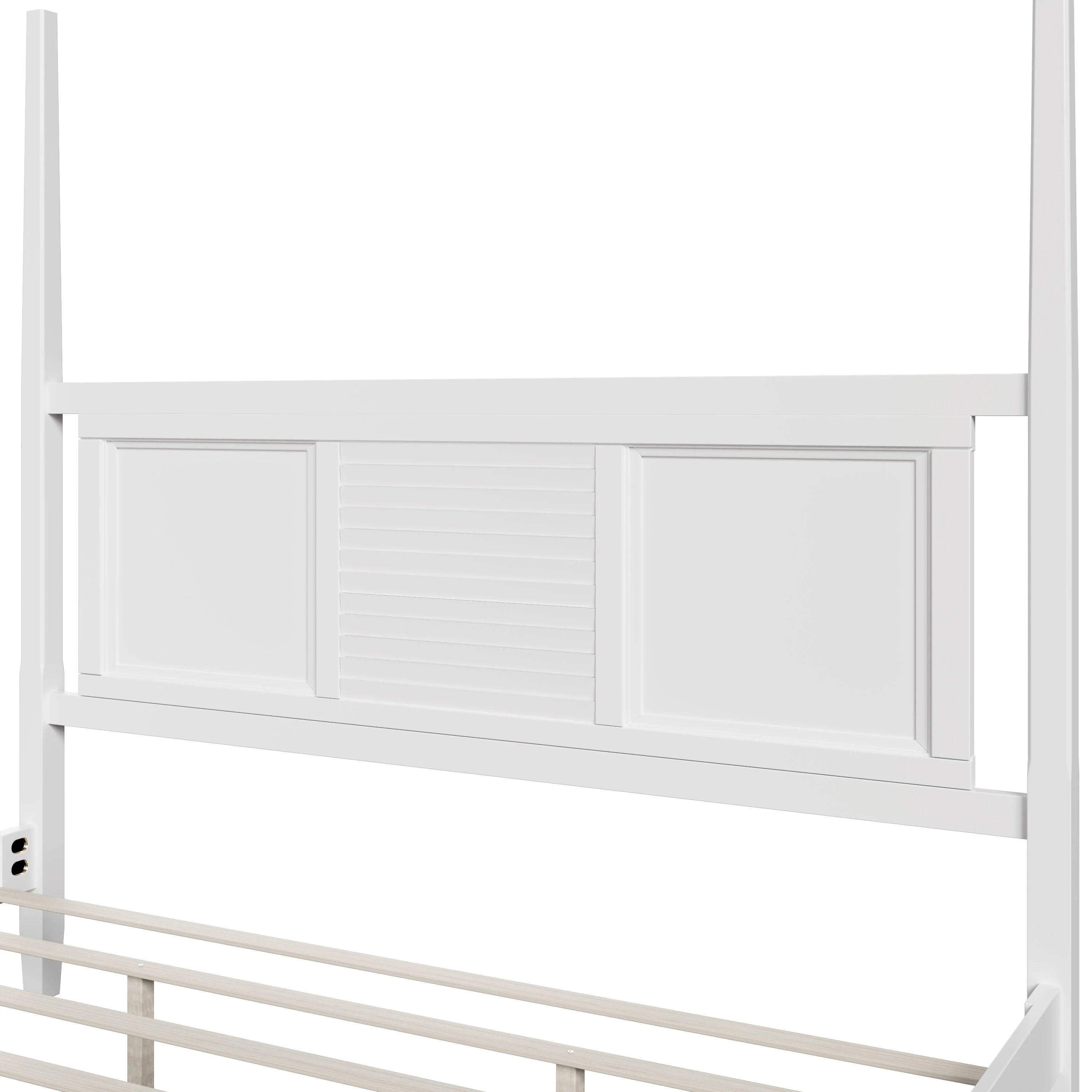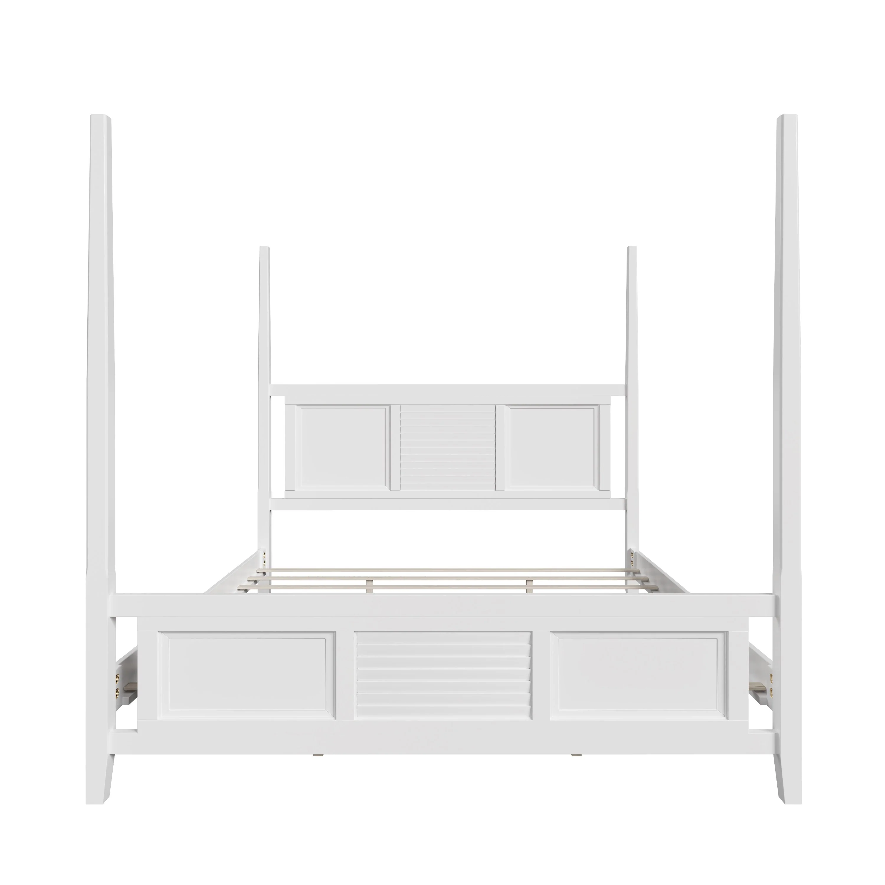 Elegant King Size Four-Poster Solid Wood Bed with Horizontal Slat Detail, Sturdy Pine Construction