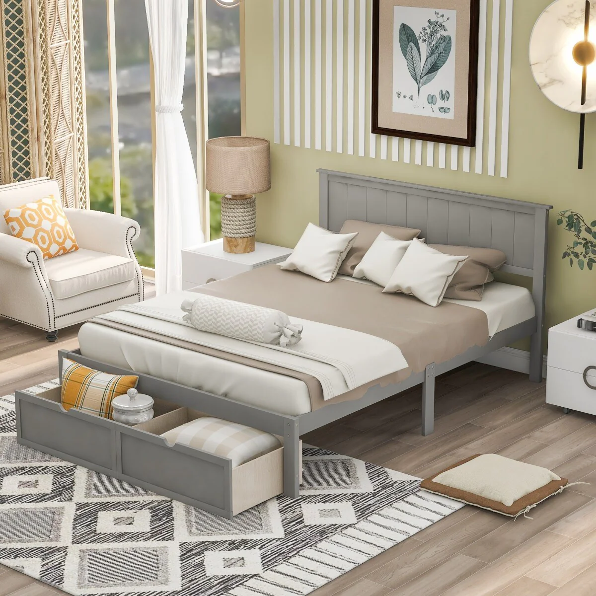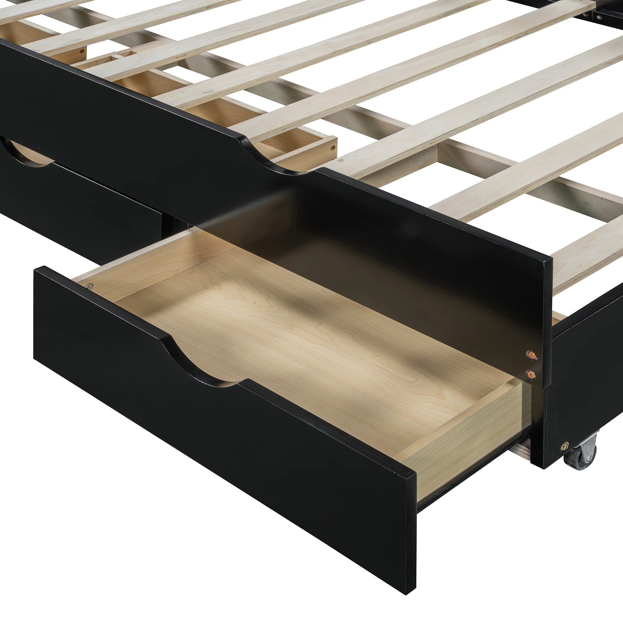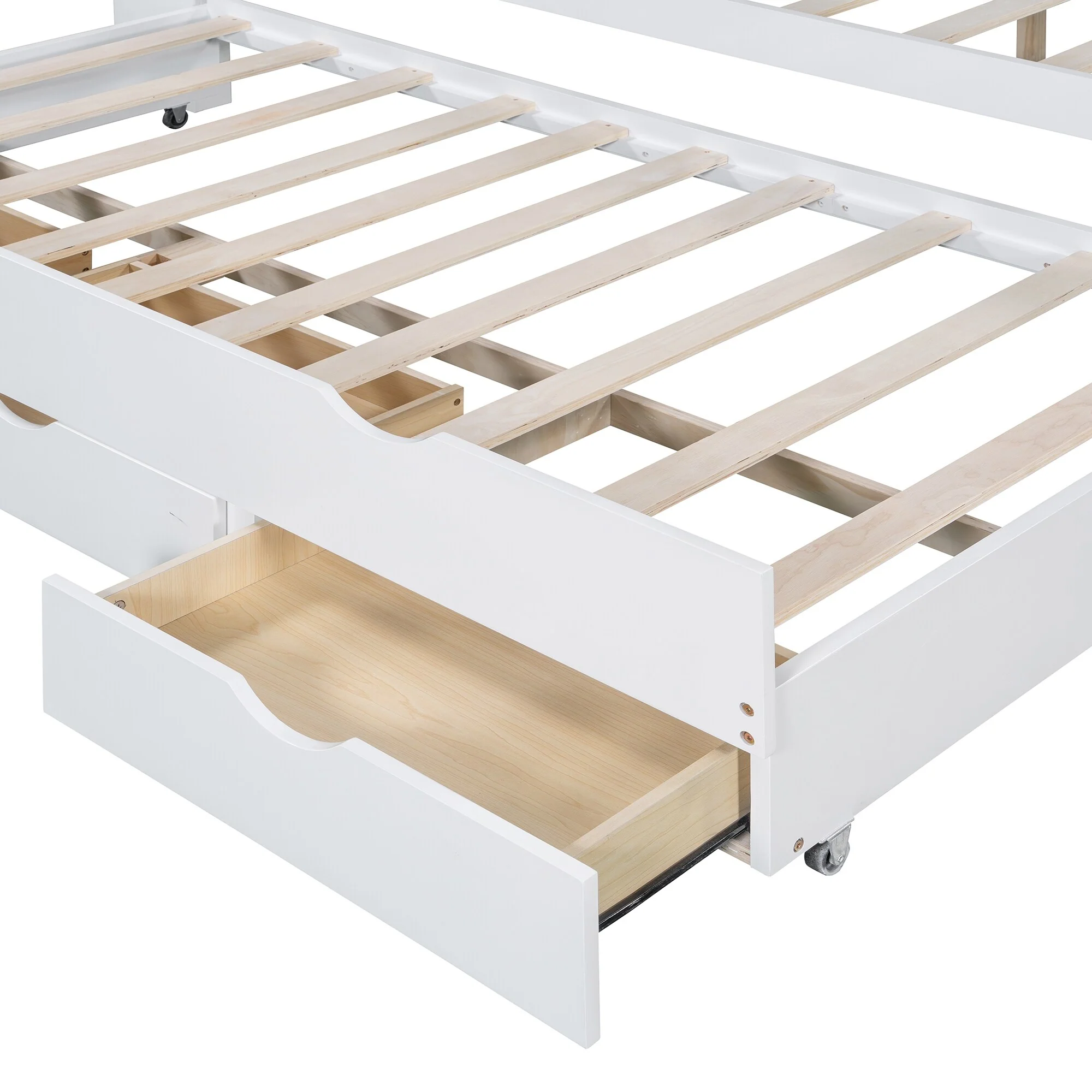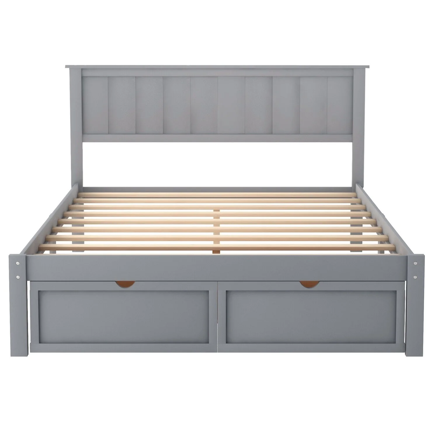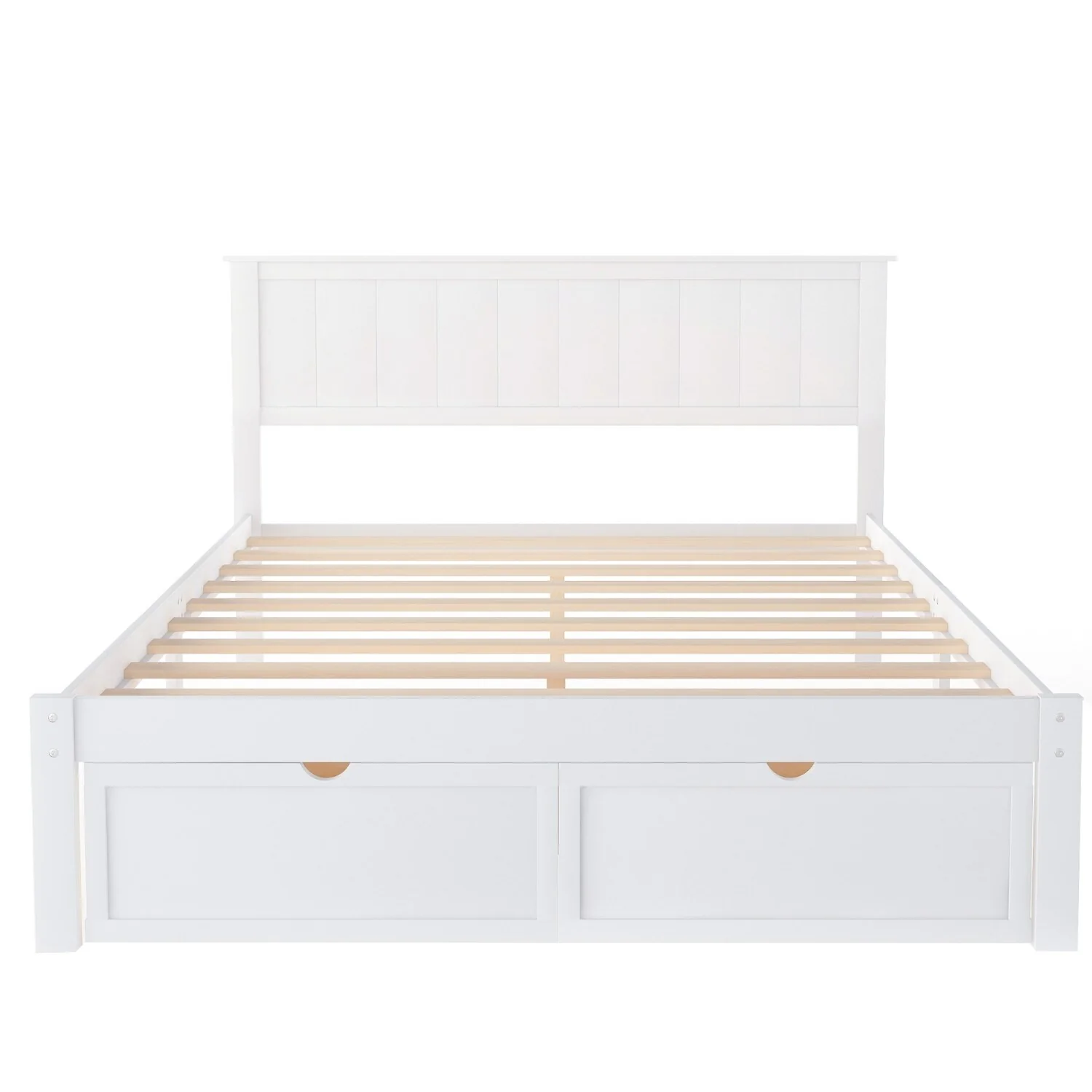Solid Wood Full Size Platform Bed Frame with Under-Bed Drawers, Slats