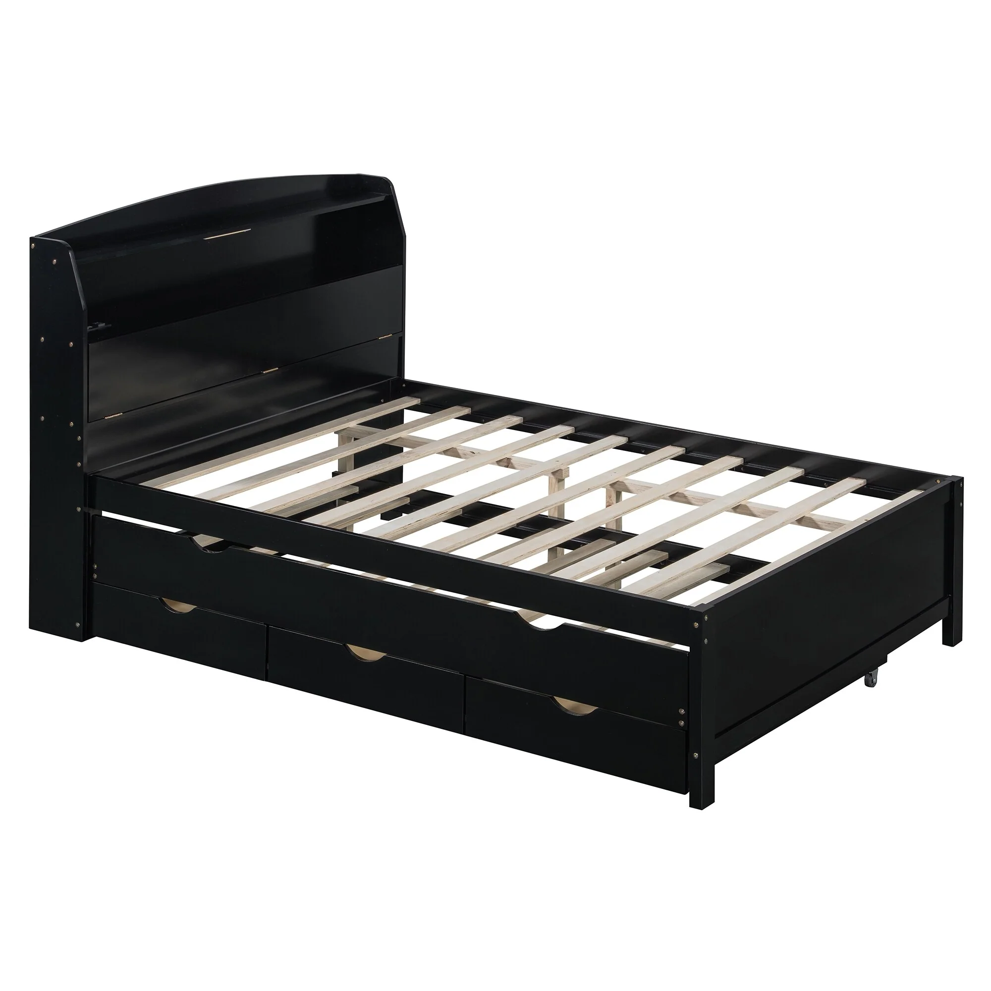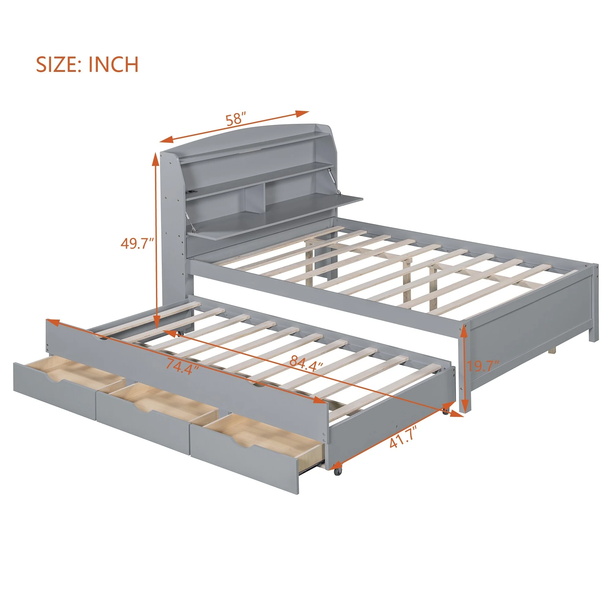 Twin Bed with USB, Type-C Ports, LED Lights, Trundle, and Storage Drawers