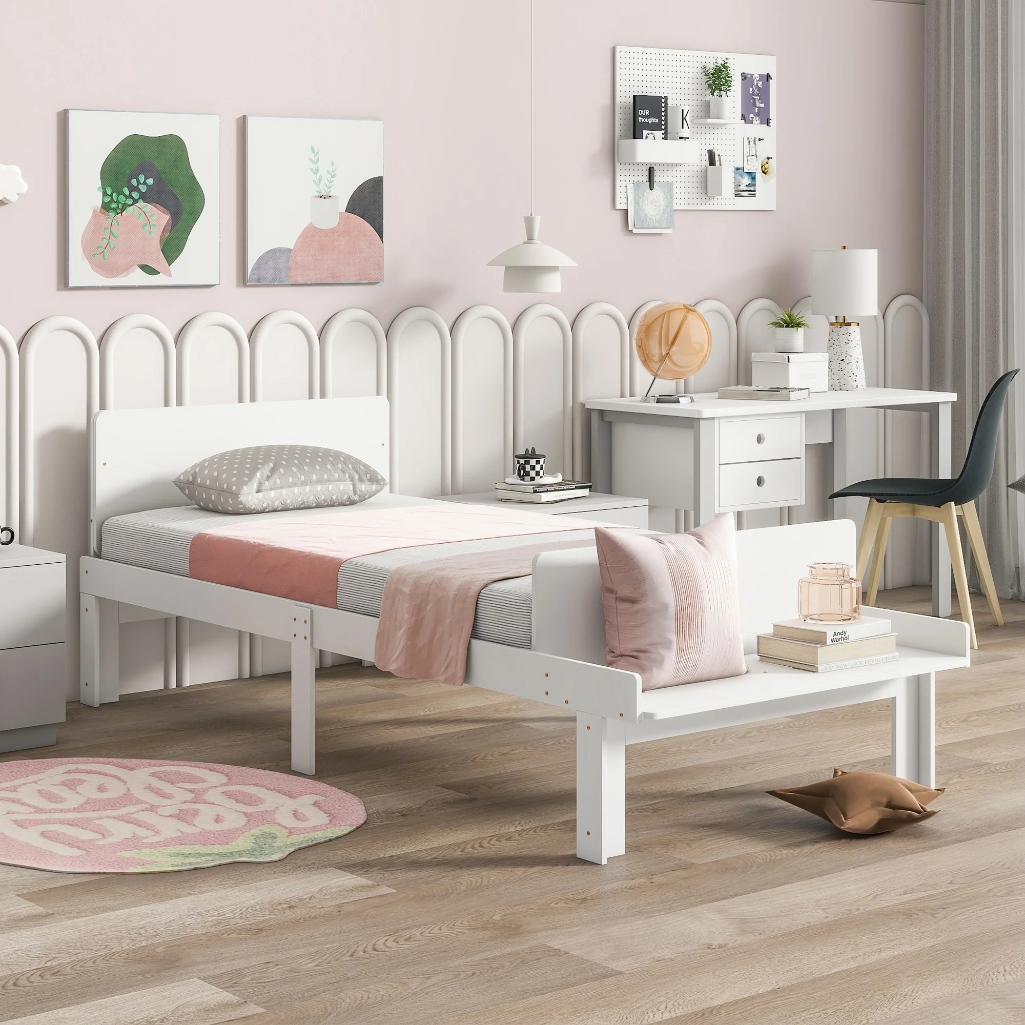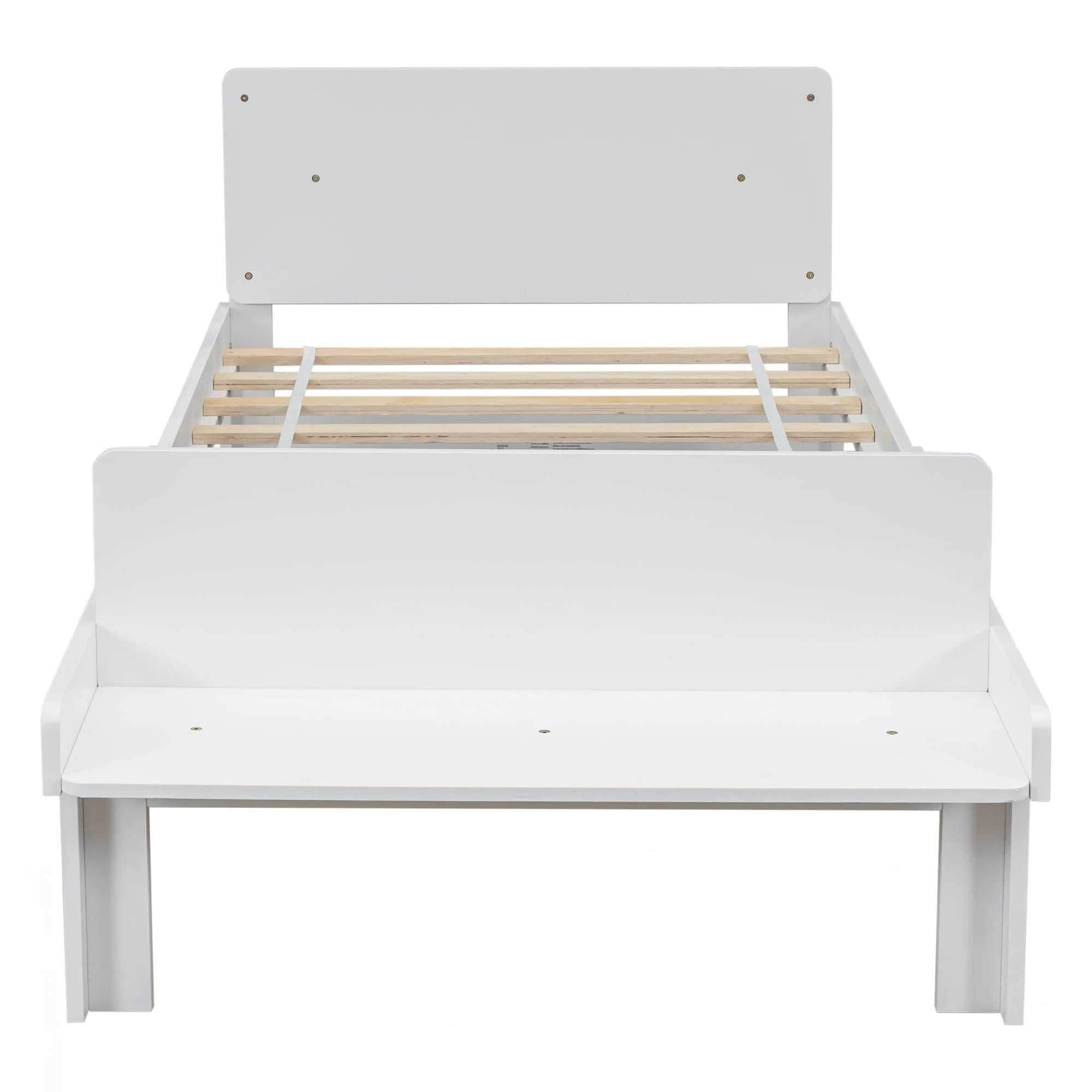 Twin Bed with Footboard Bench ,White