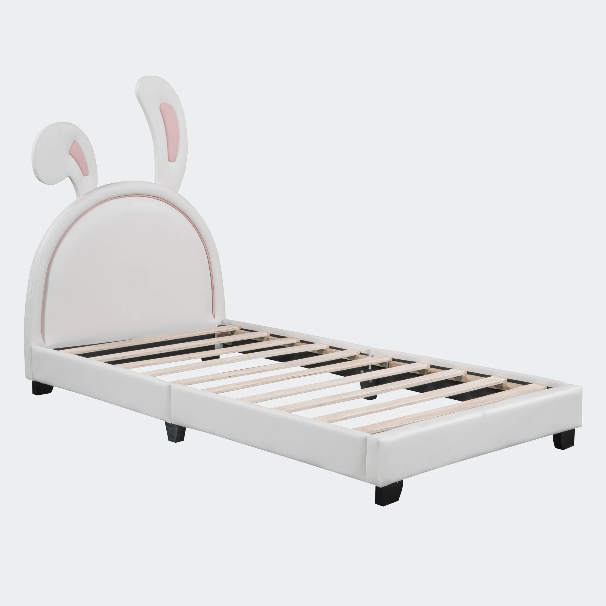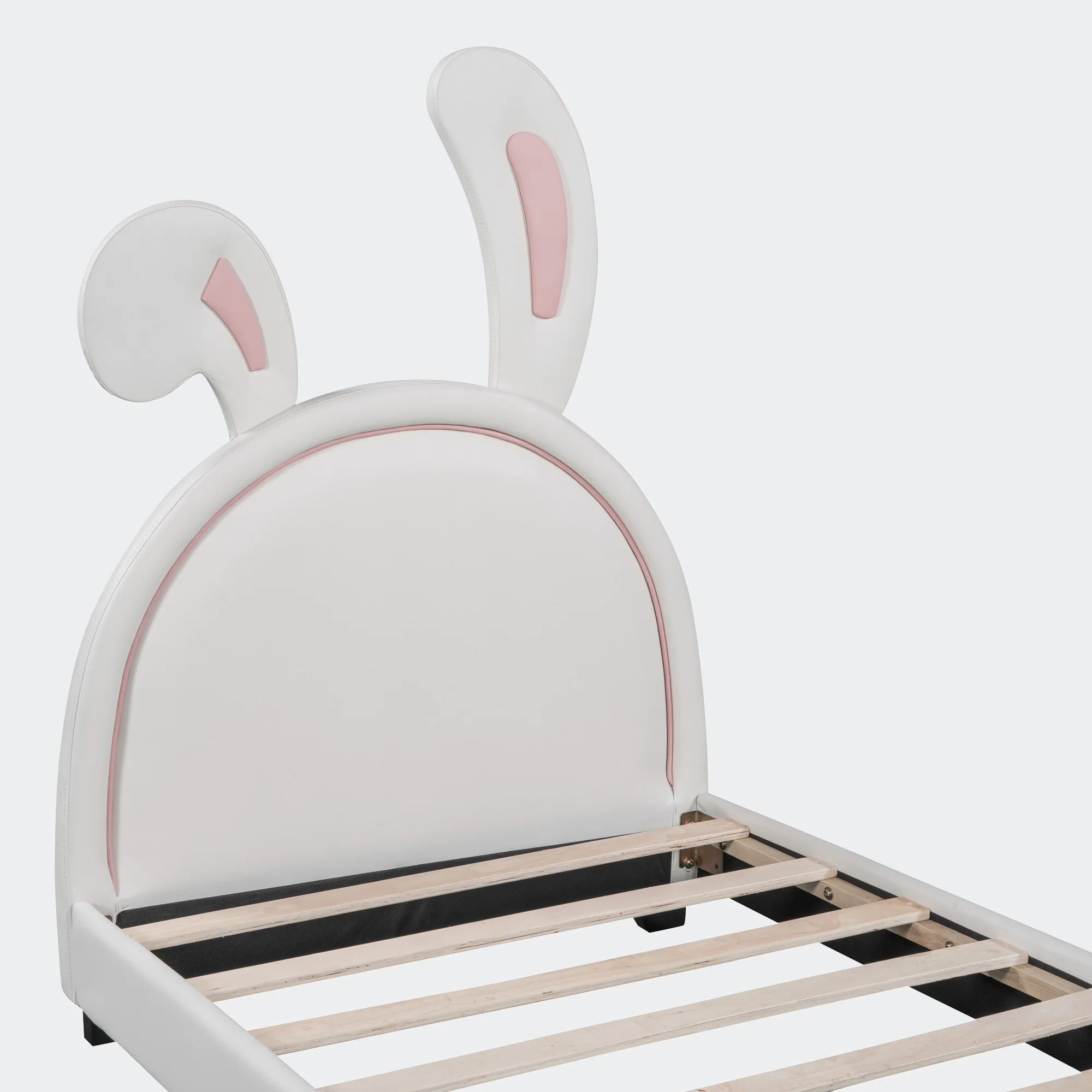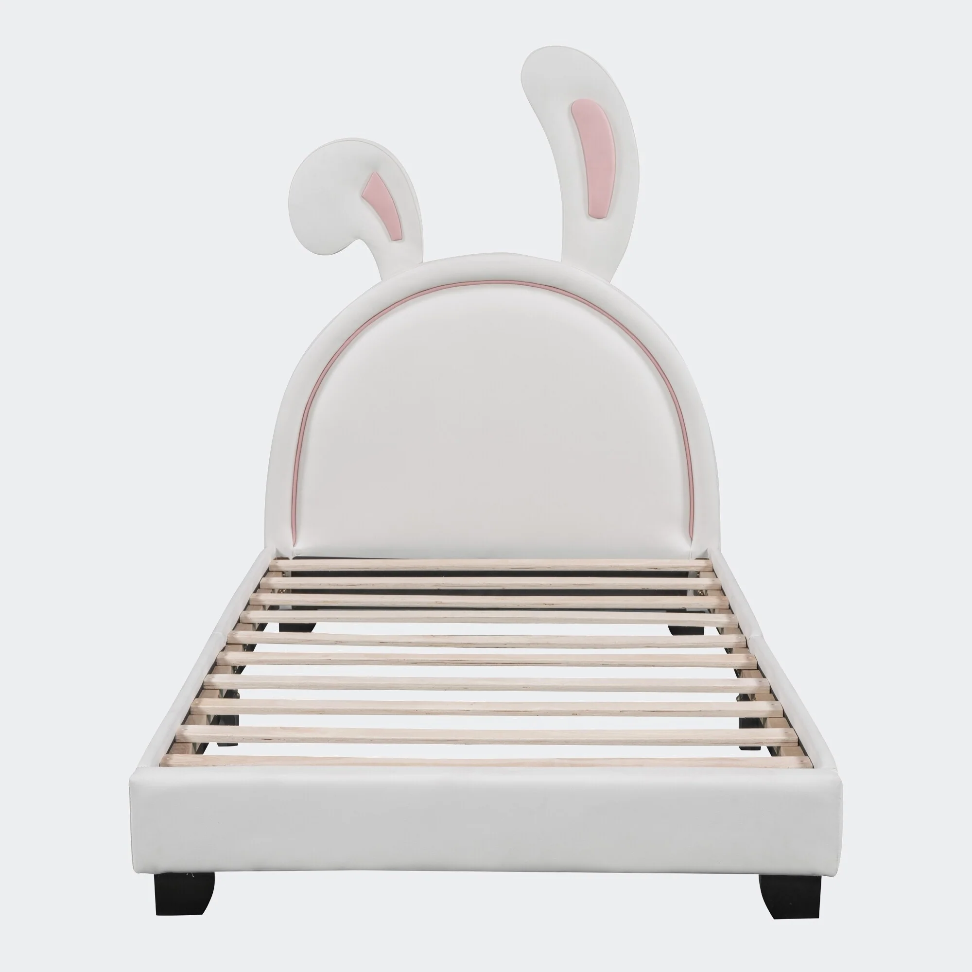 Modern Full Size PU Leather Platform Bed with Rabbit Ornament and High Load Capacity