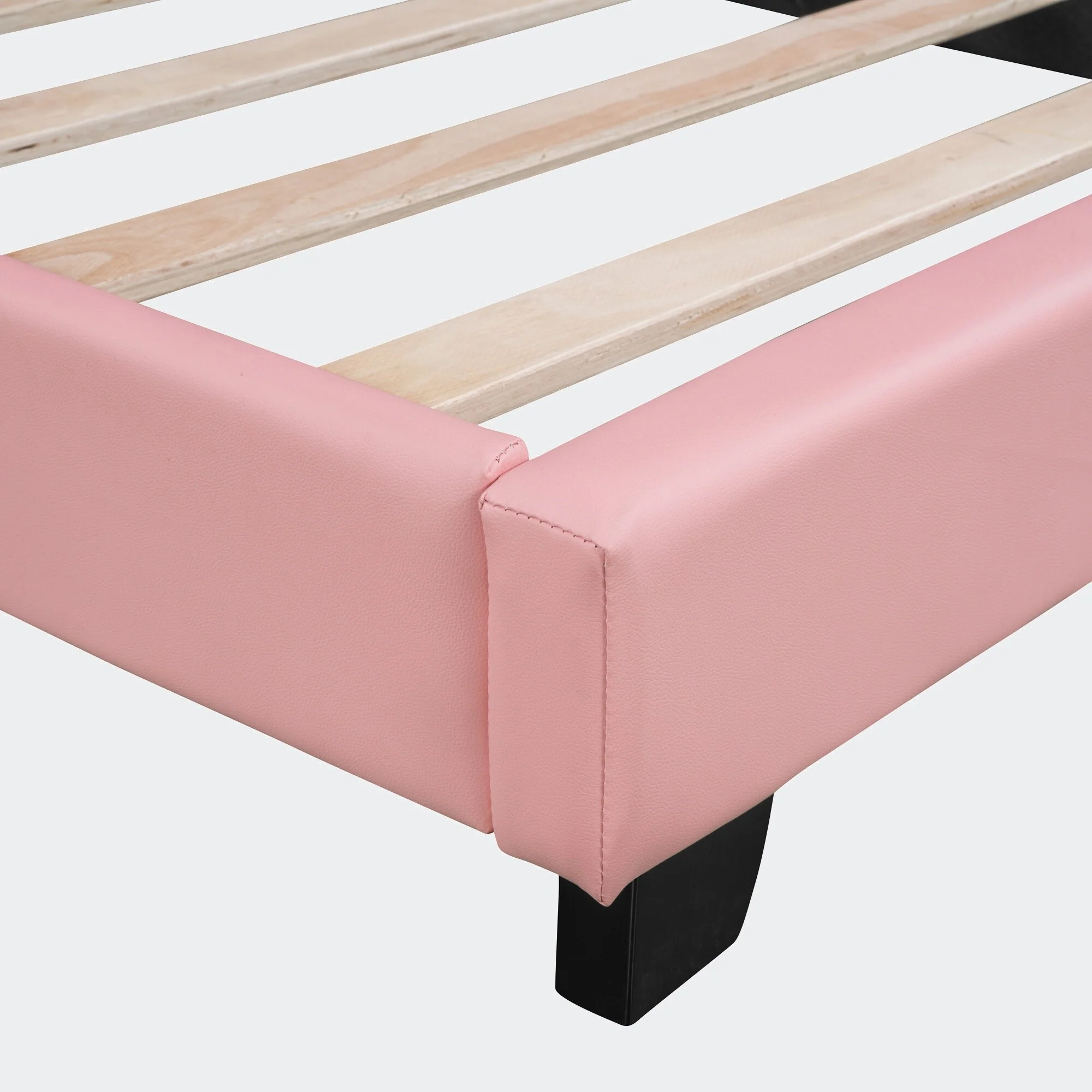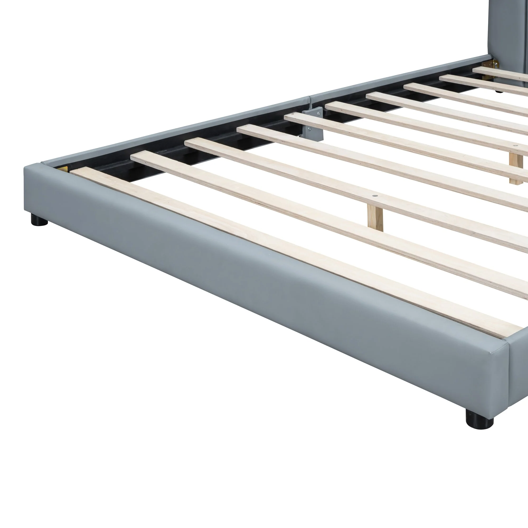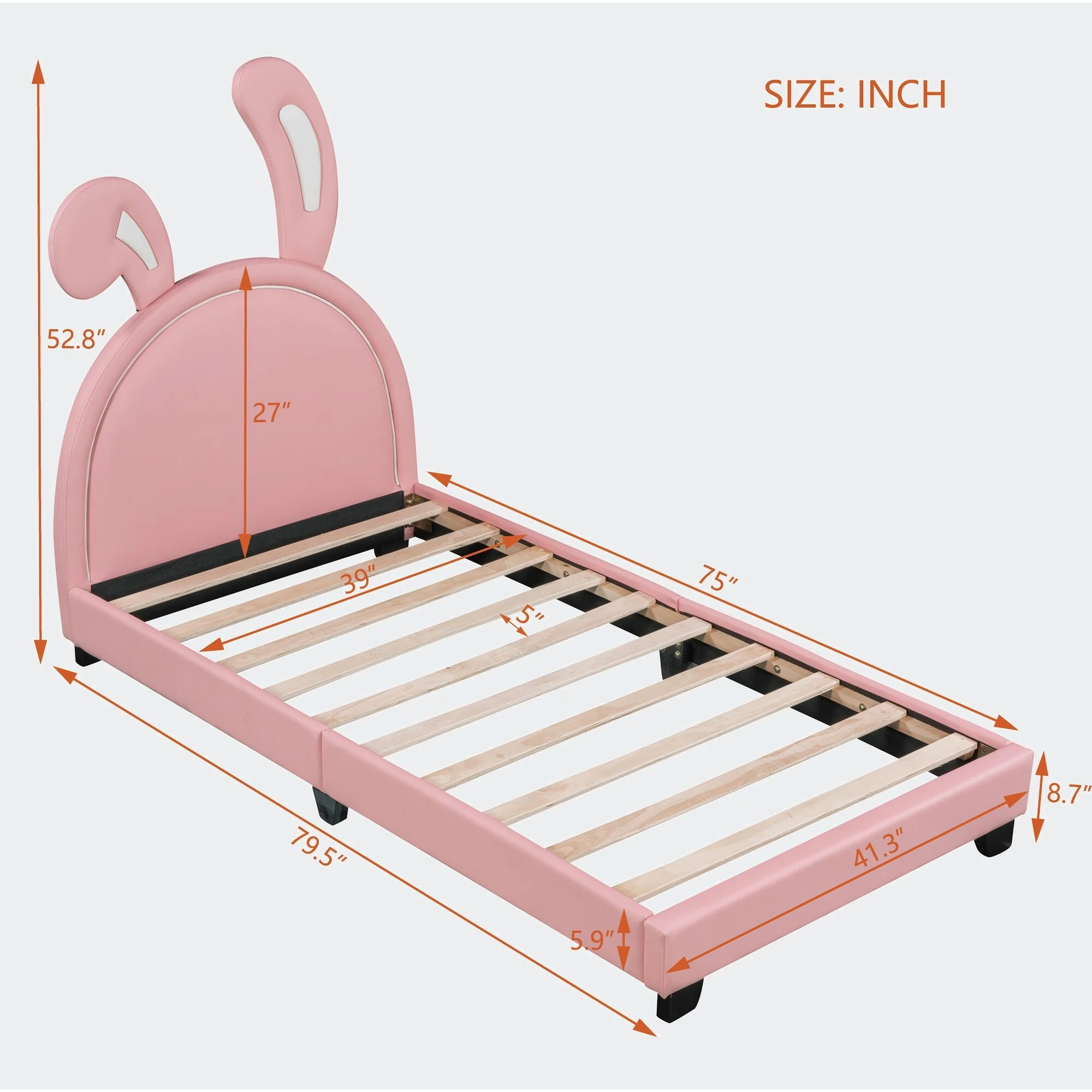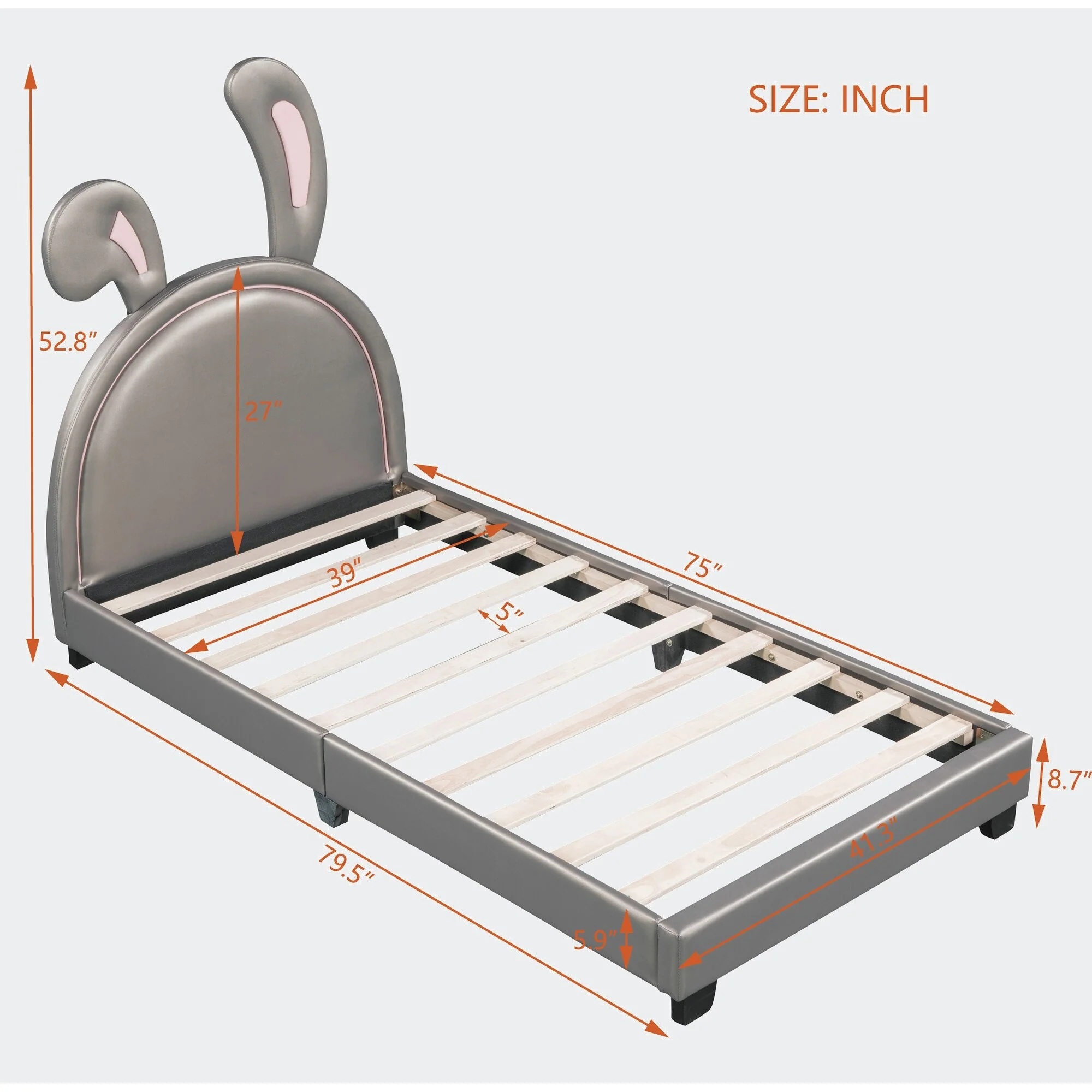 Modern Full Size PU Leather Platform Bed with Rabbit Ornament and High Load Capacity