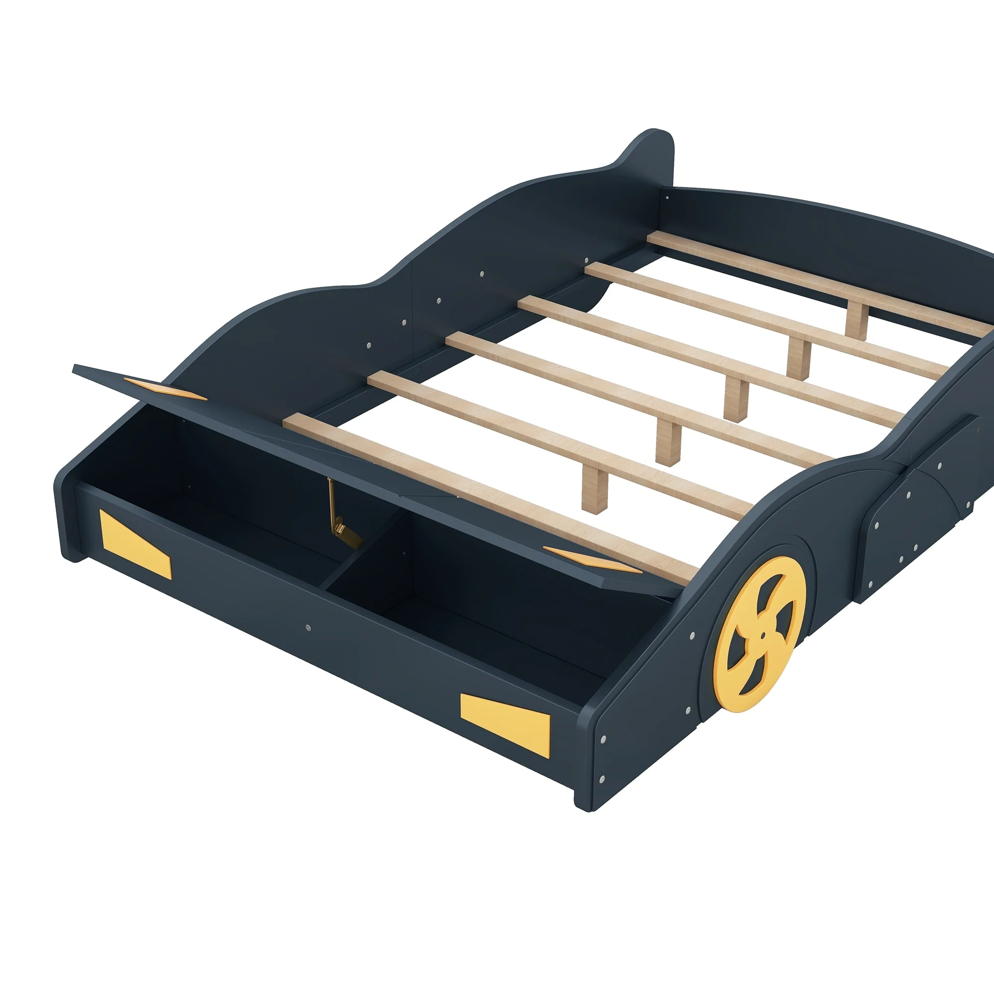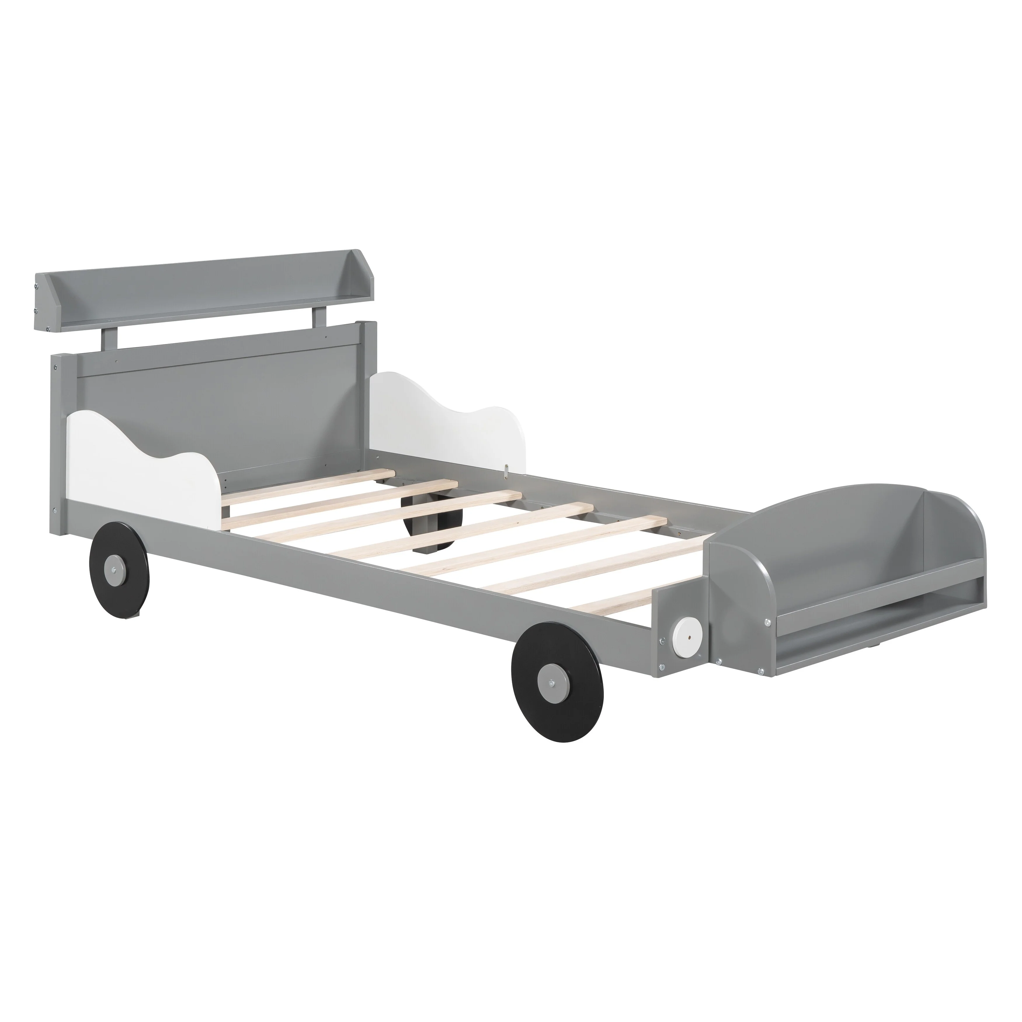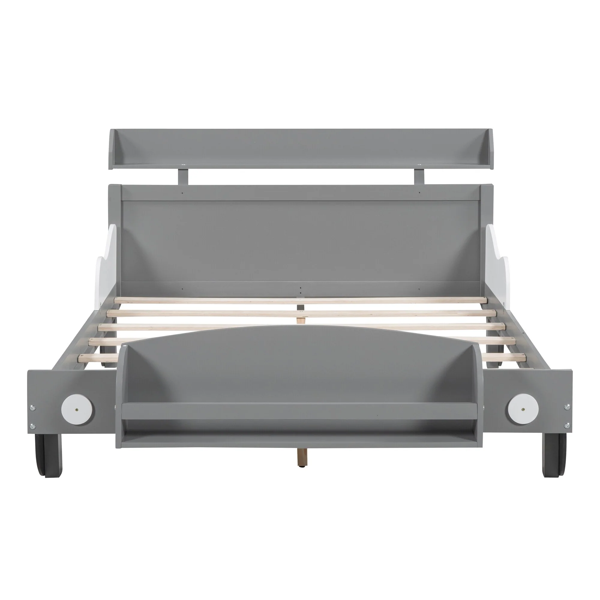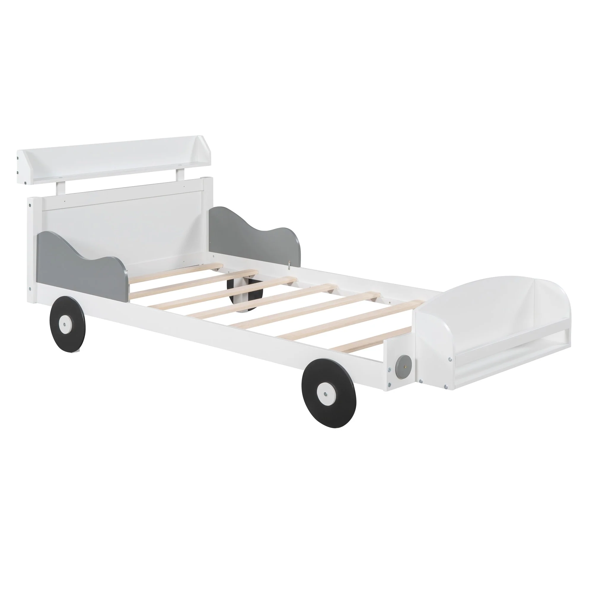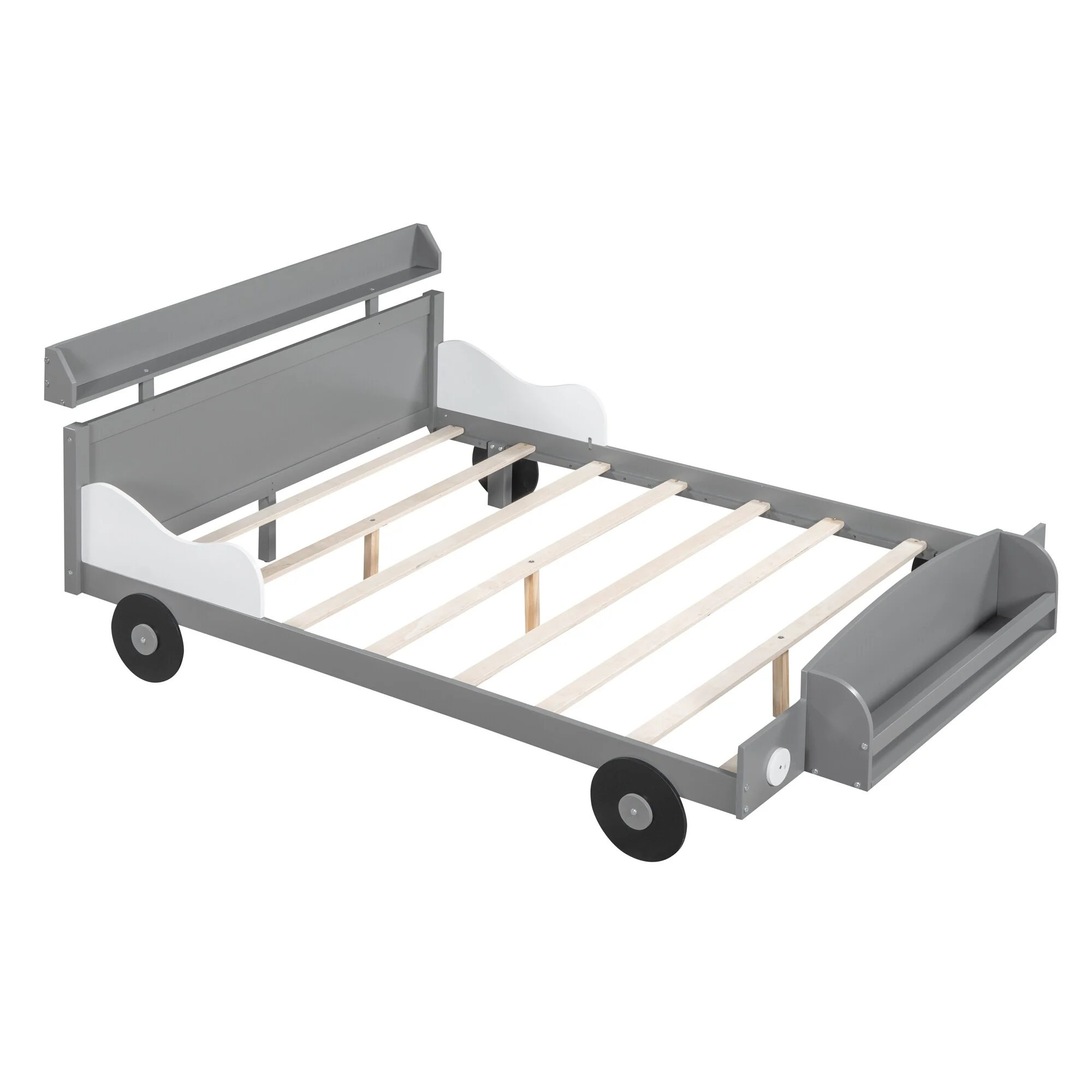 Car-Shaped Full Bed with Headboard and Footboard Storage Shelves, Sturdy Slats