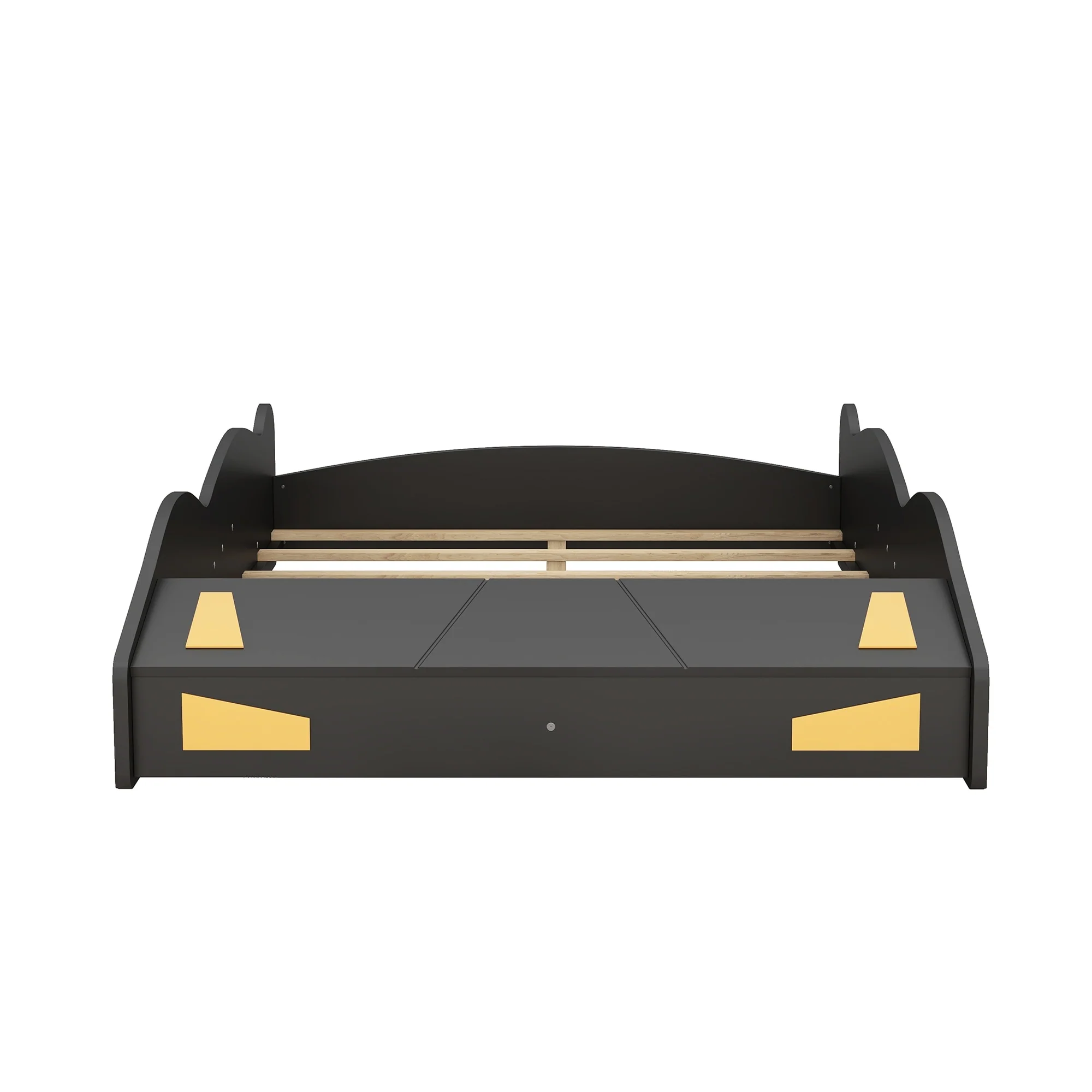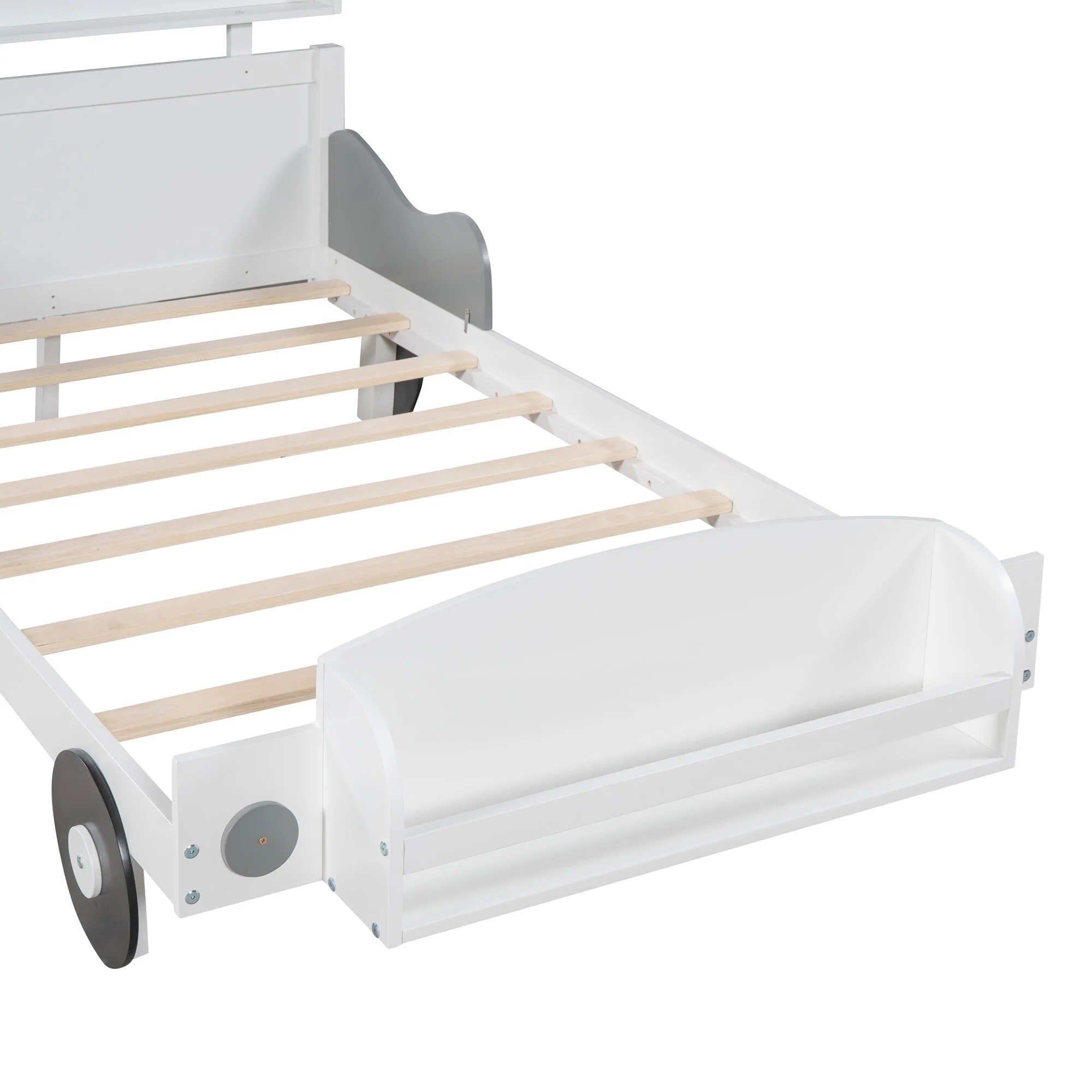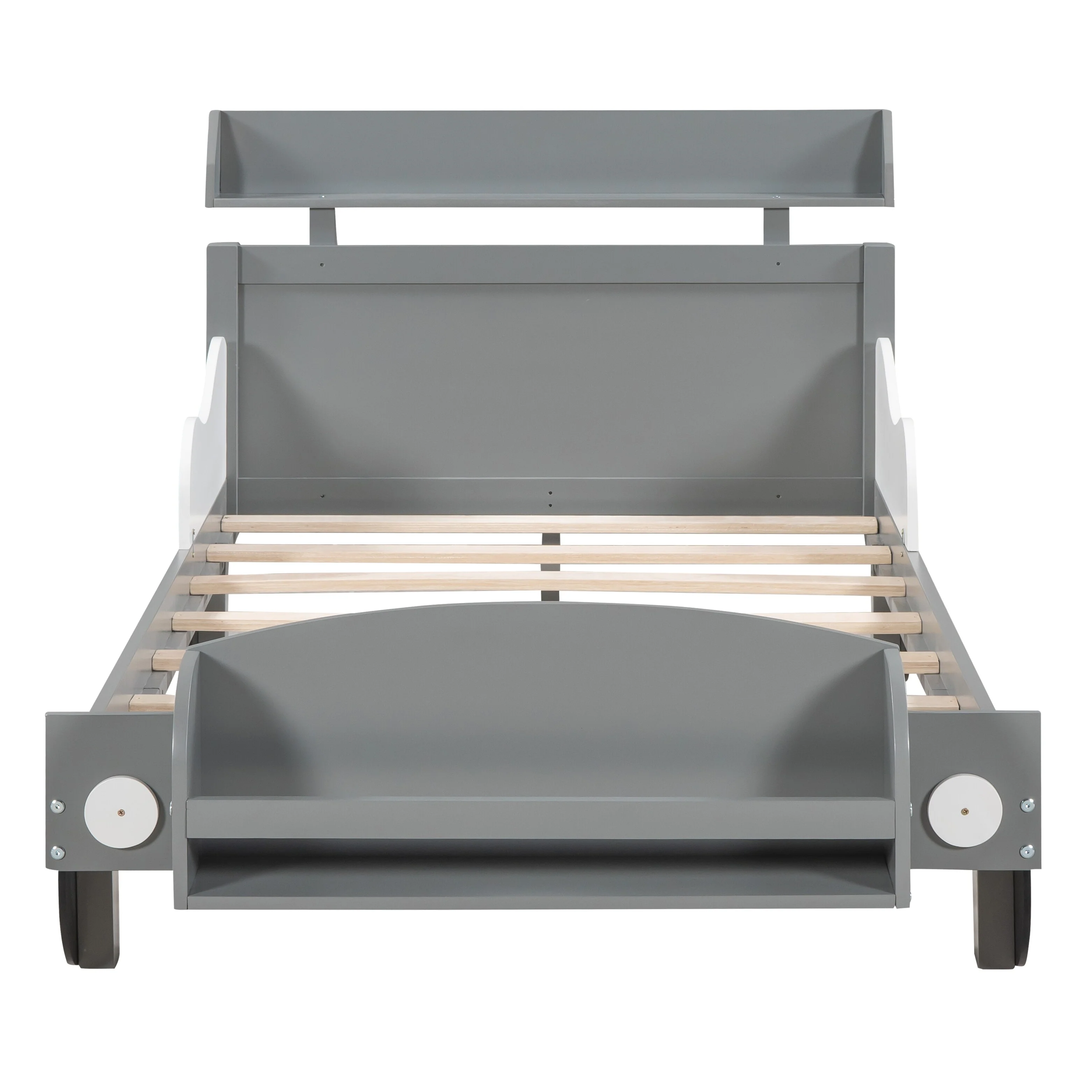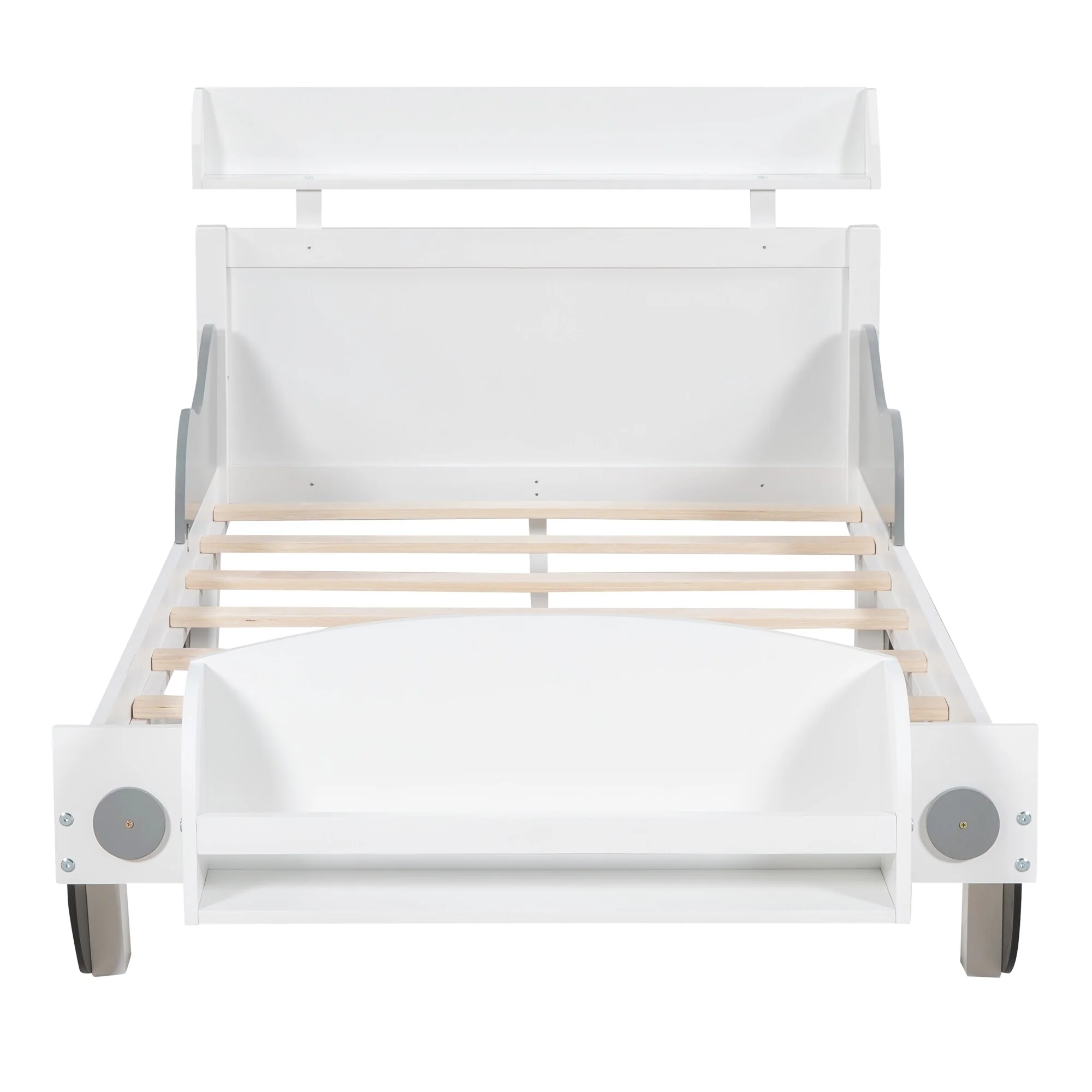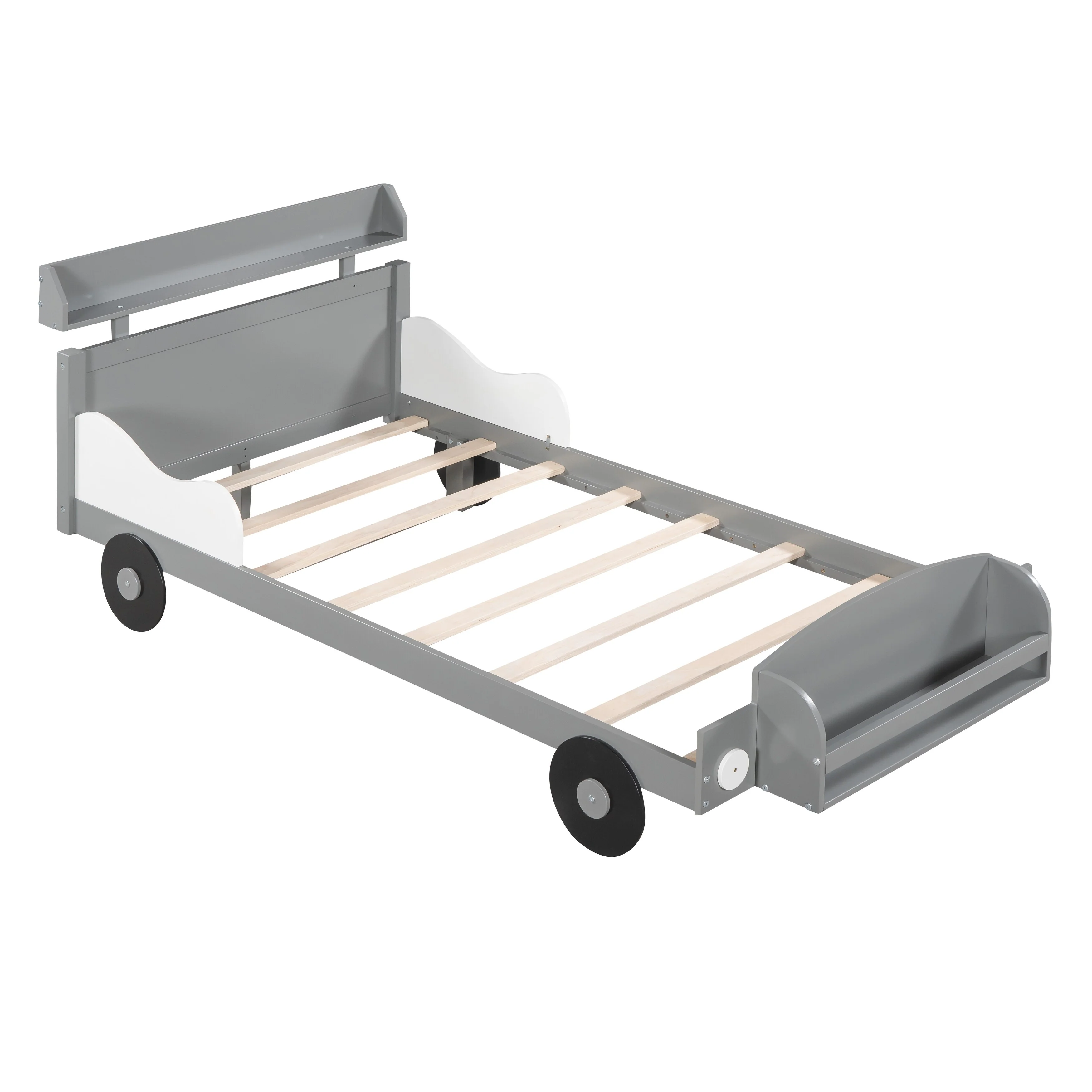 Car-Shaped Full Bed with Headboard and Footboard Storage Shelves, Sturdy Slats