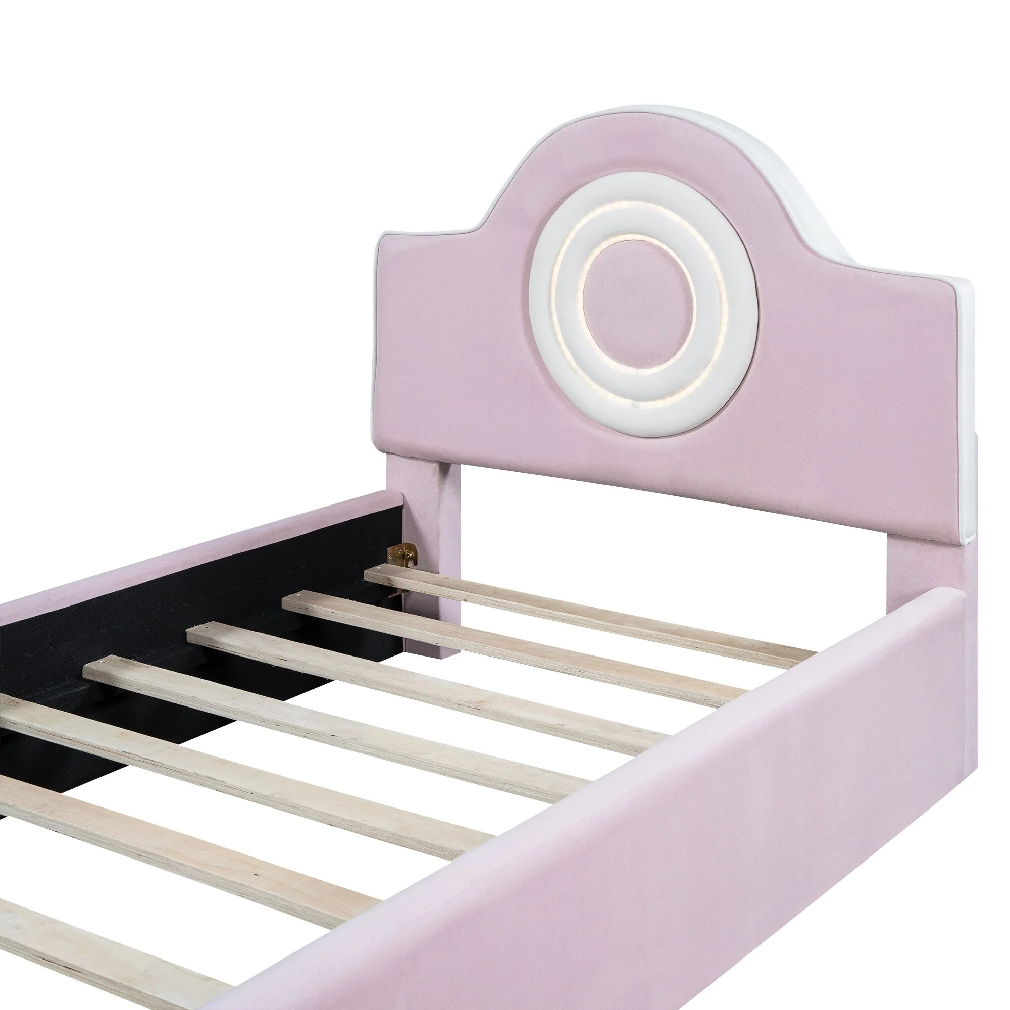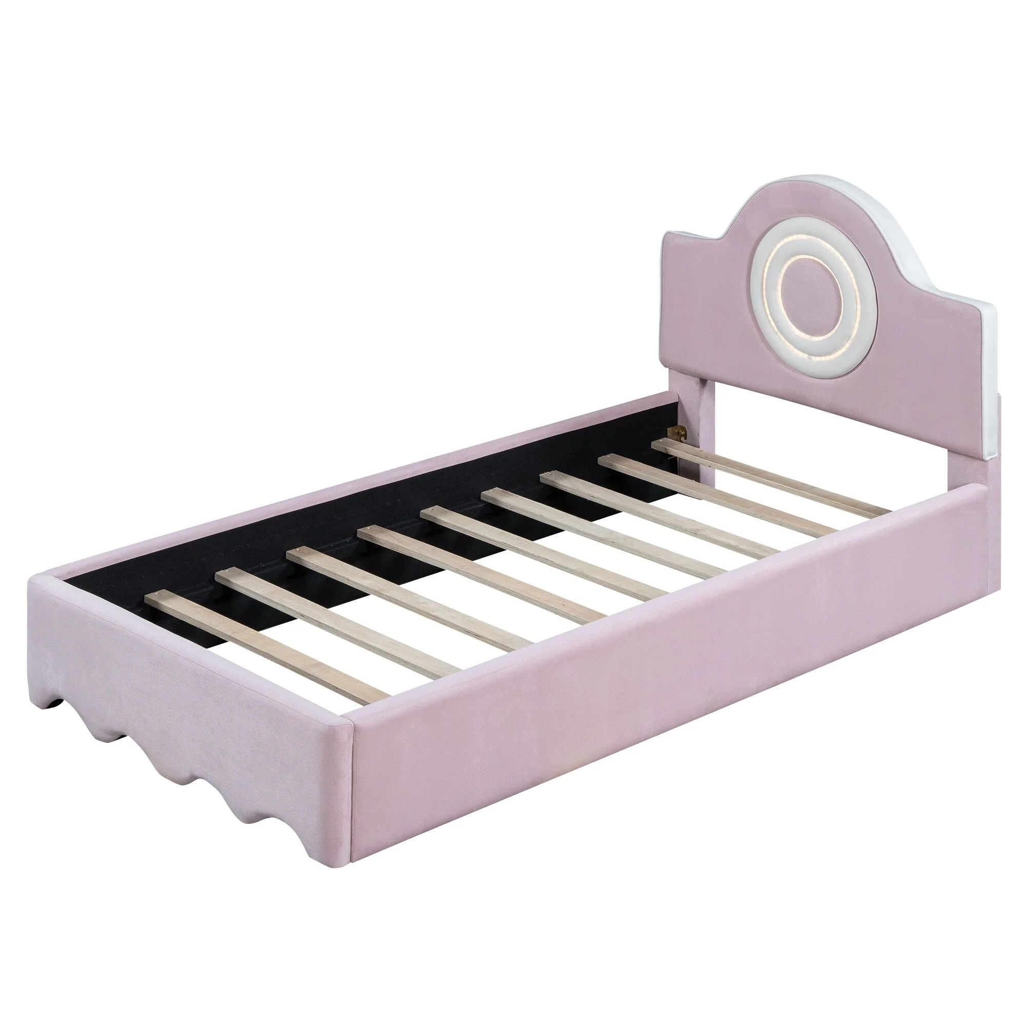 Twin Upholstered Platform Bed with LED Headboard, Pink
