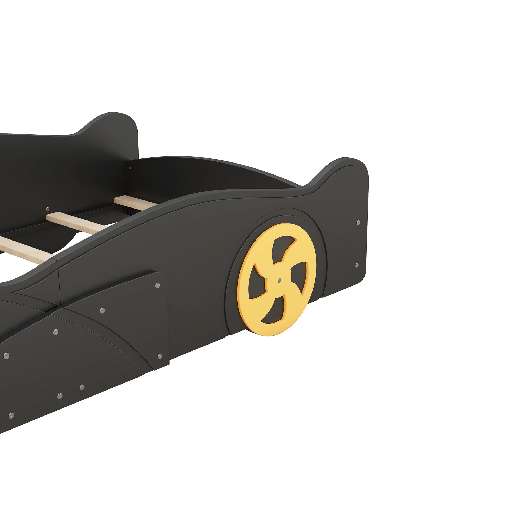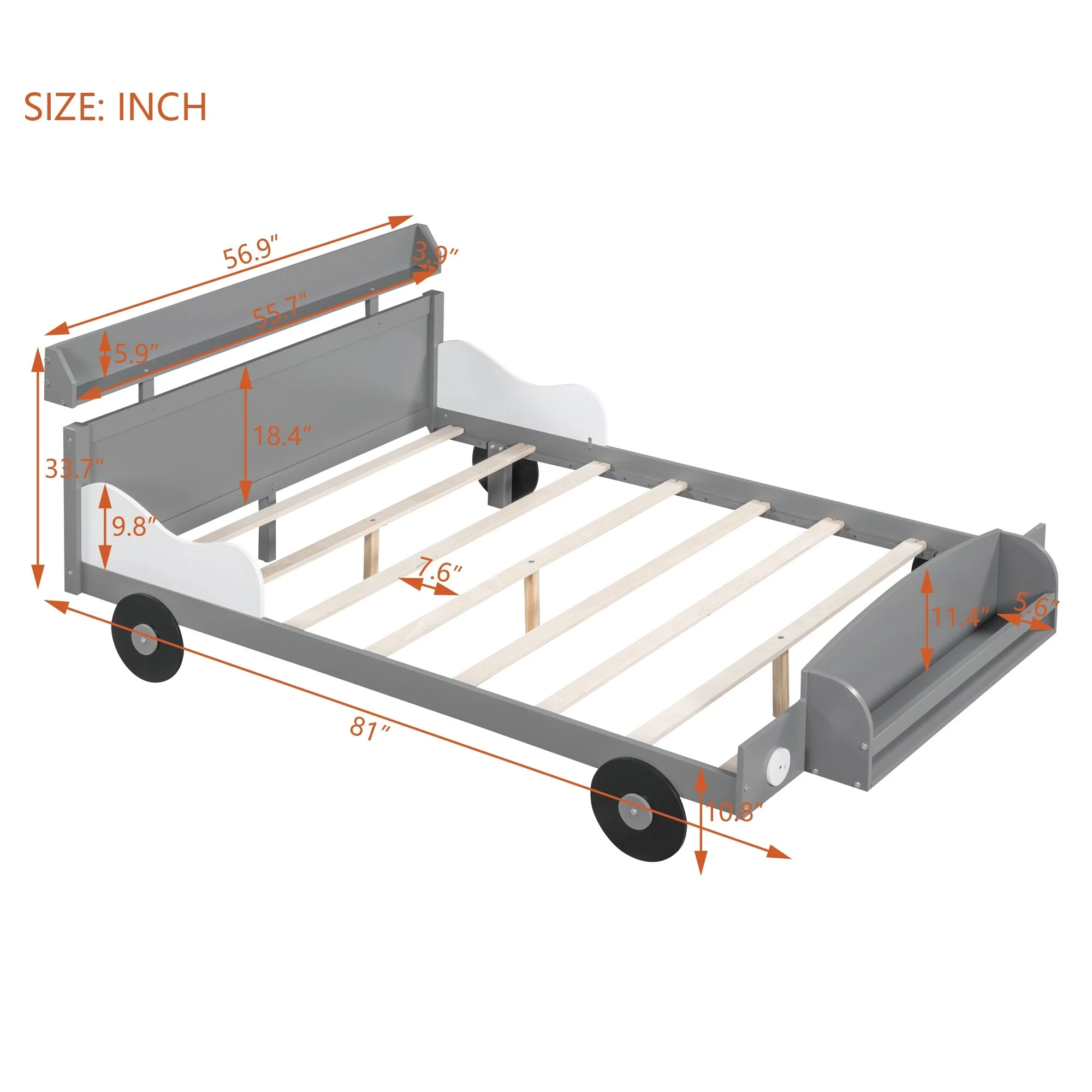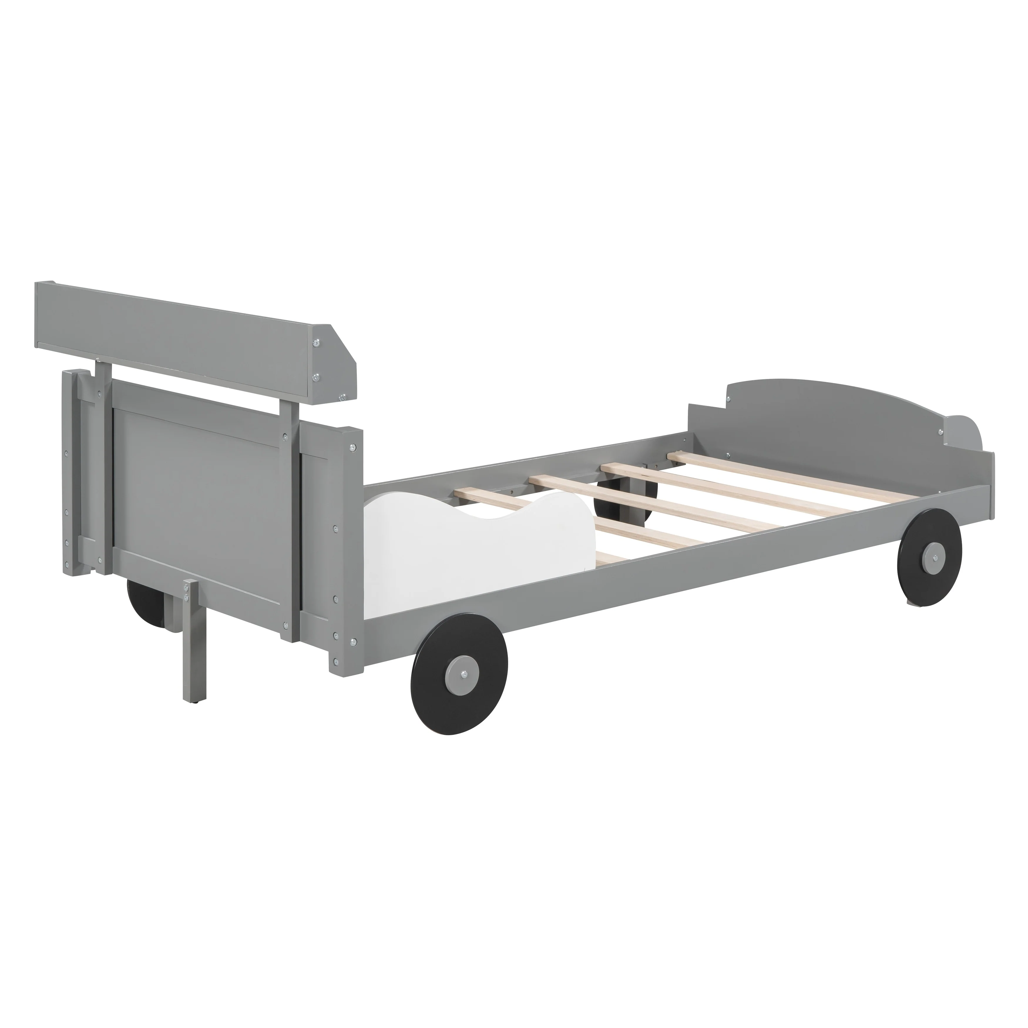 Full Race Car Bed with Storage, Wheels, and Sturdy Pine Wood Frame