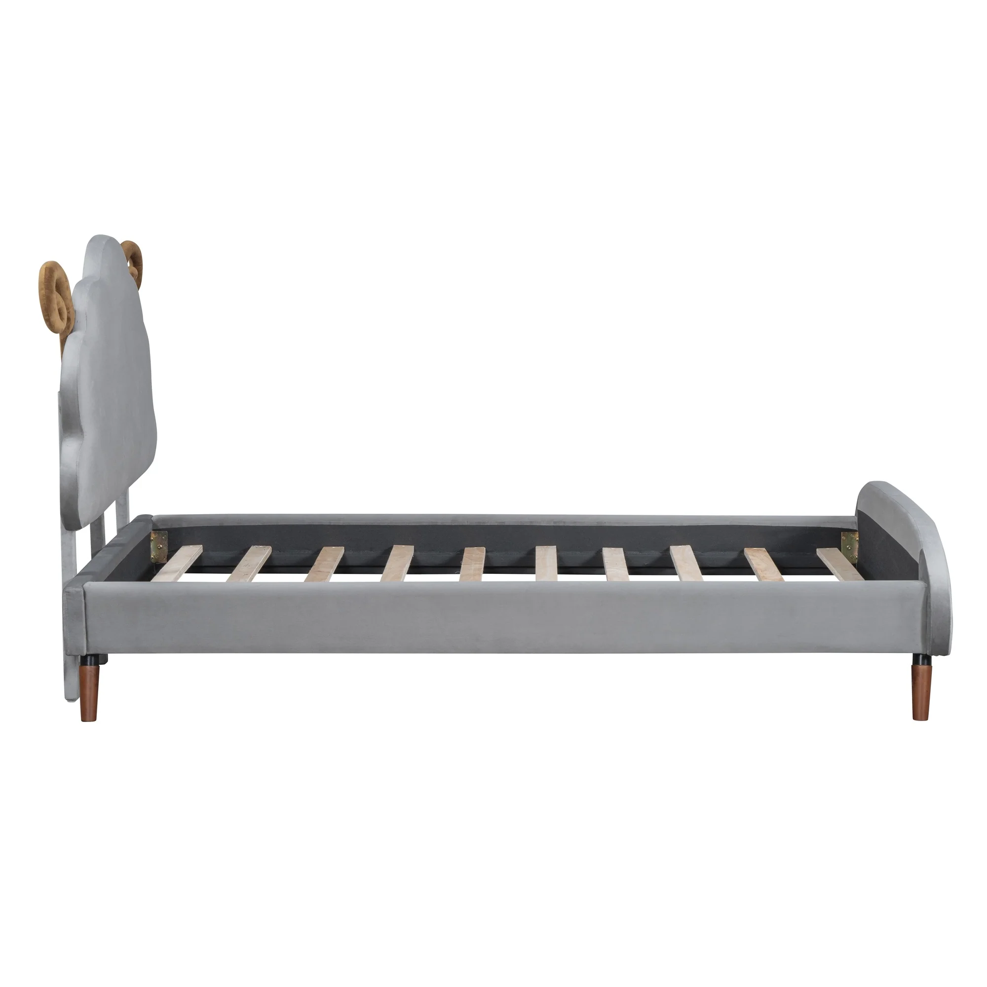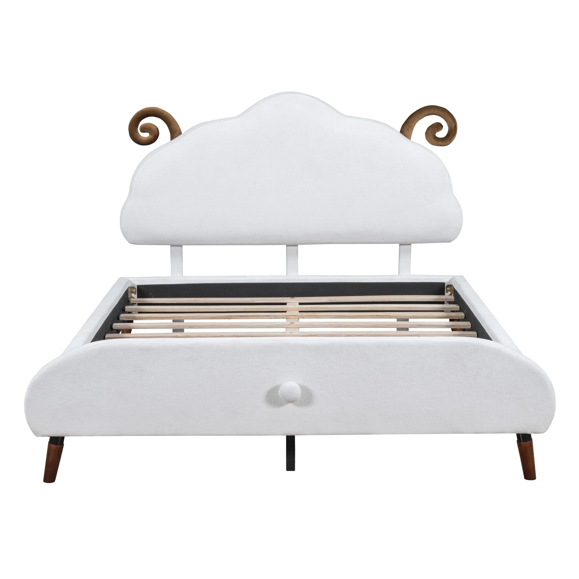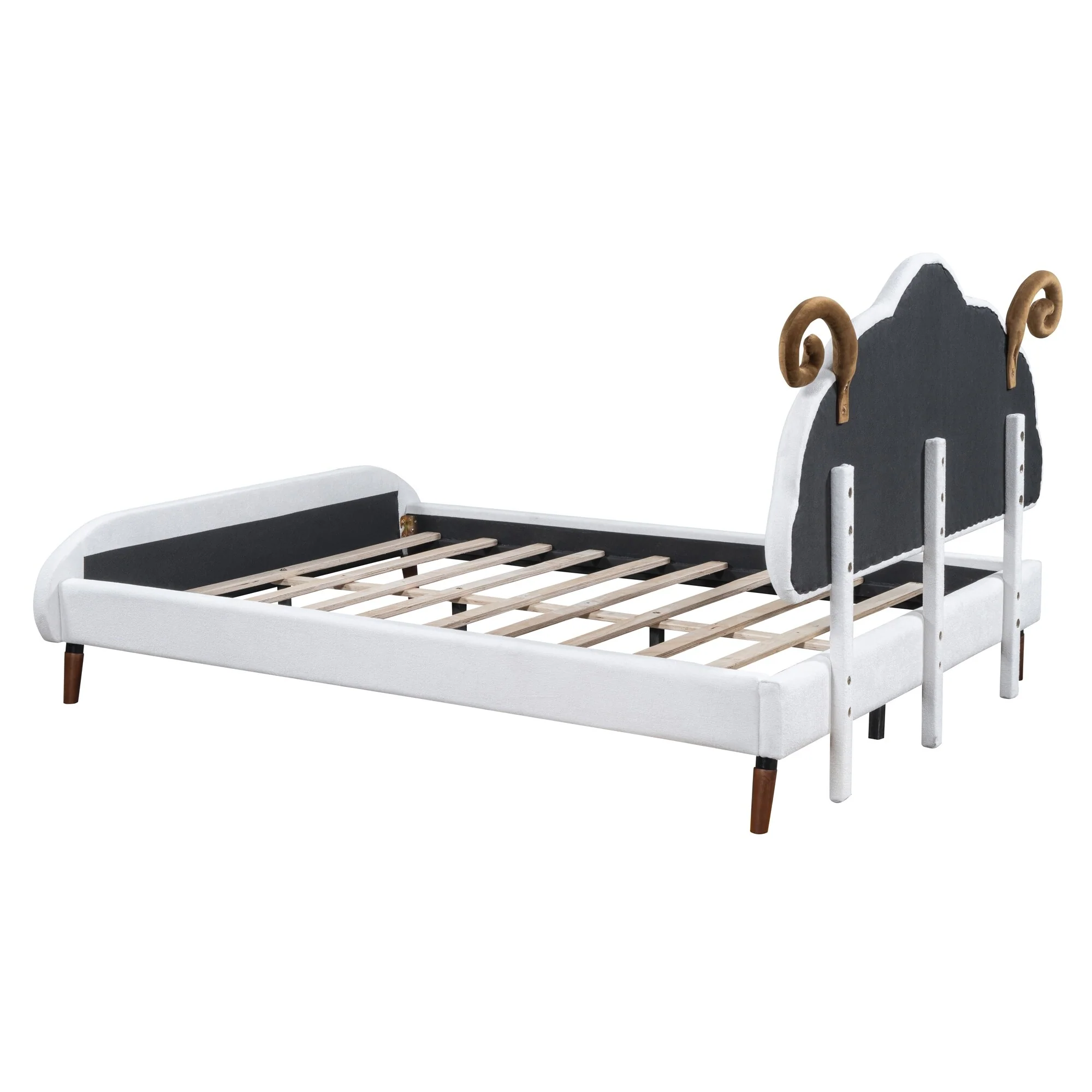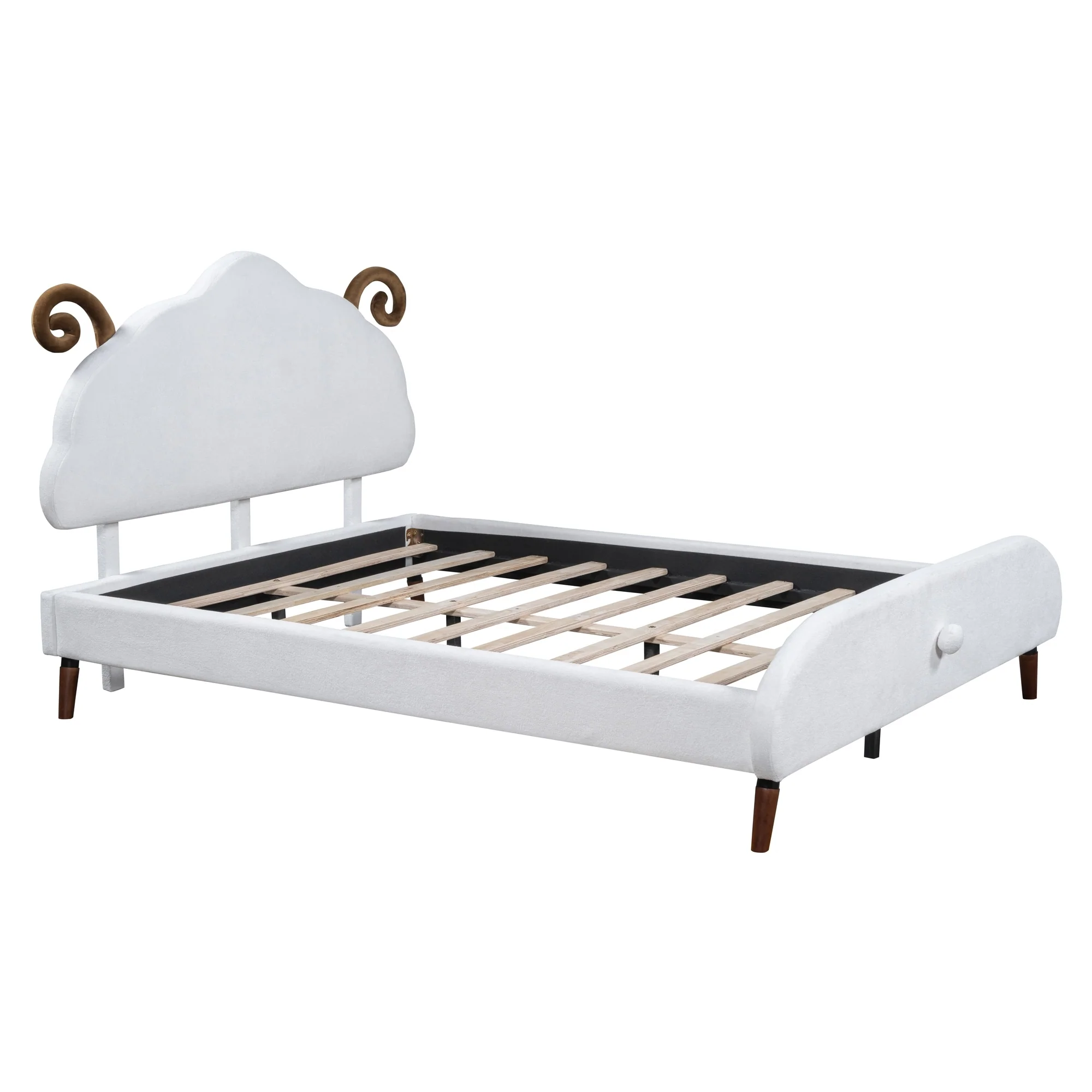 Full Size Sheep-Shaped Headboard Bed with Velvet Upholstery - Whimsical and Cozy Design