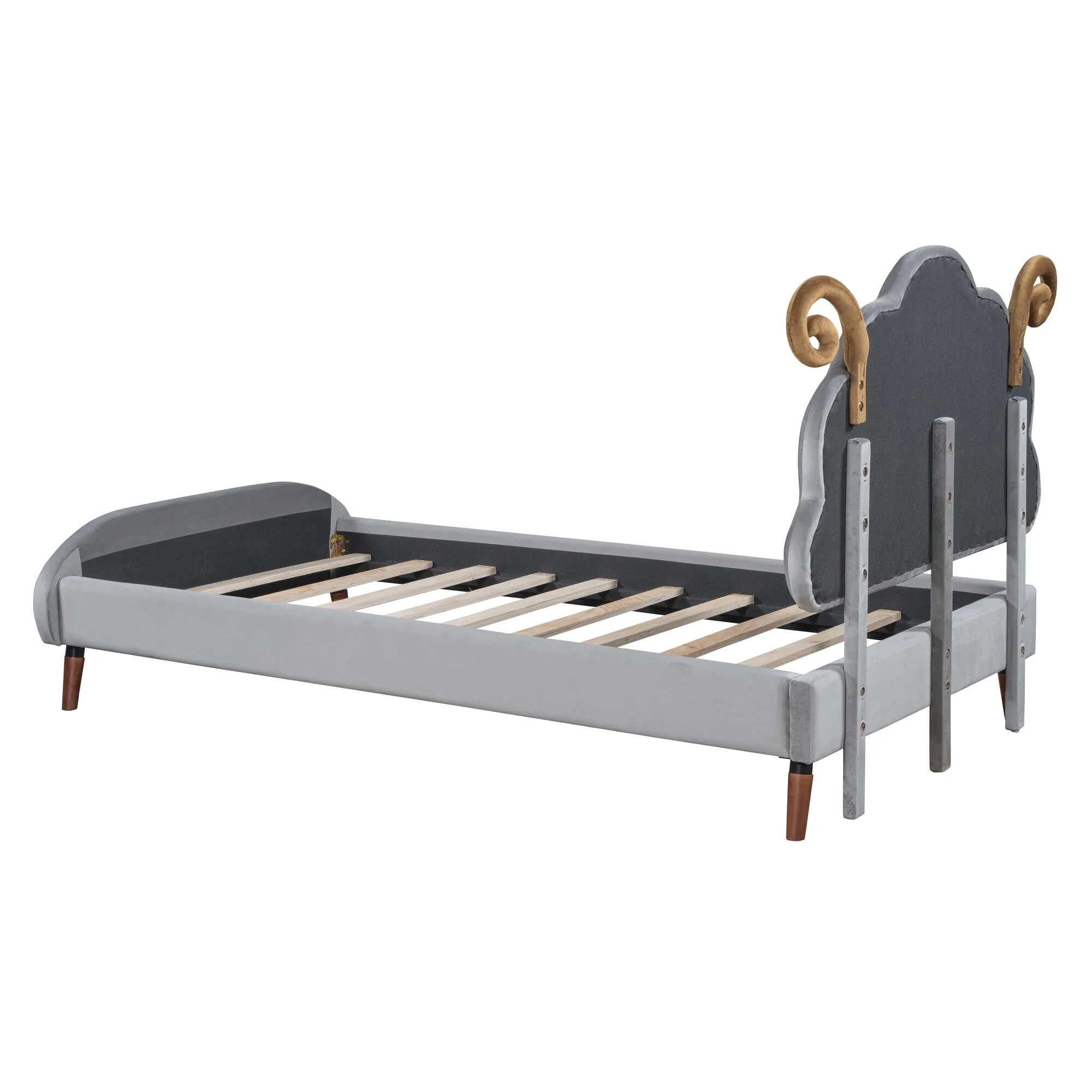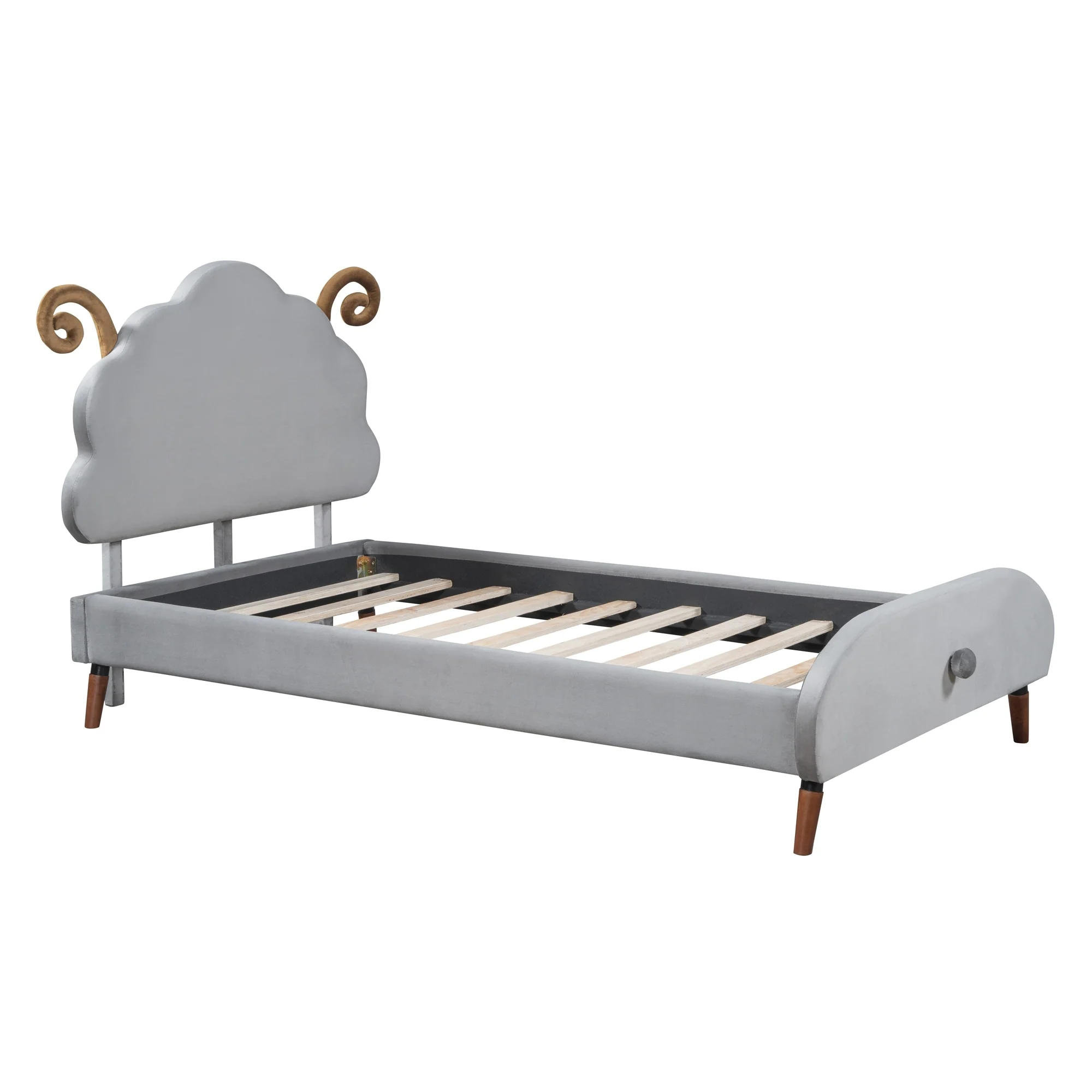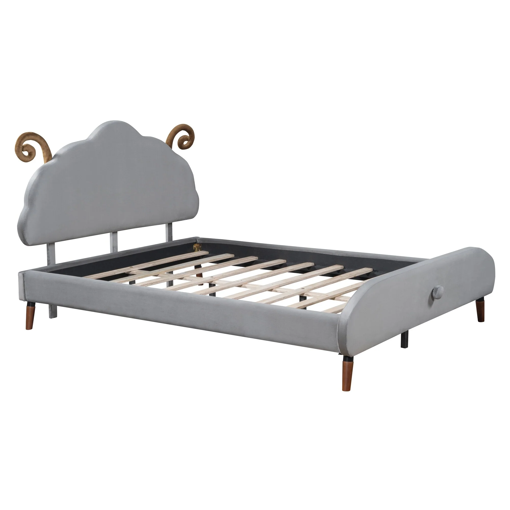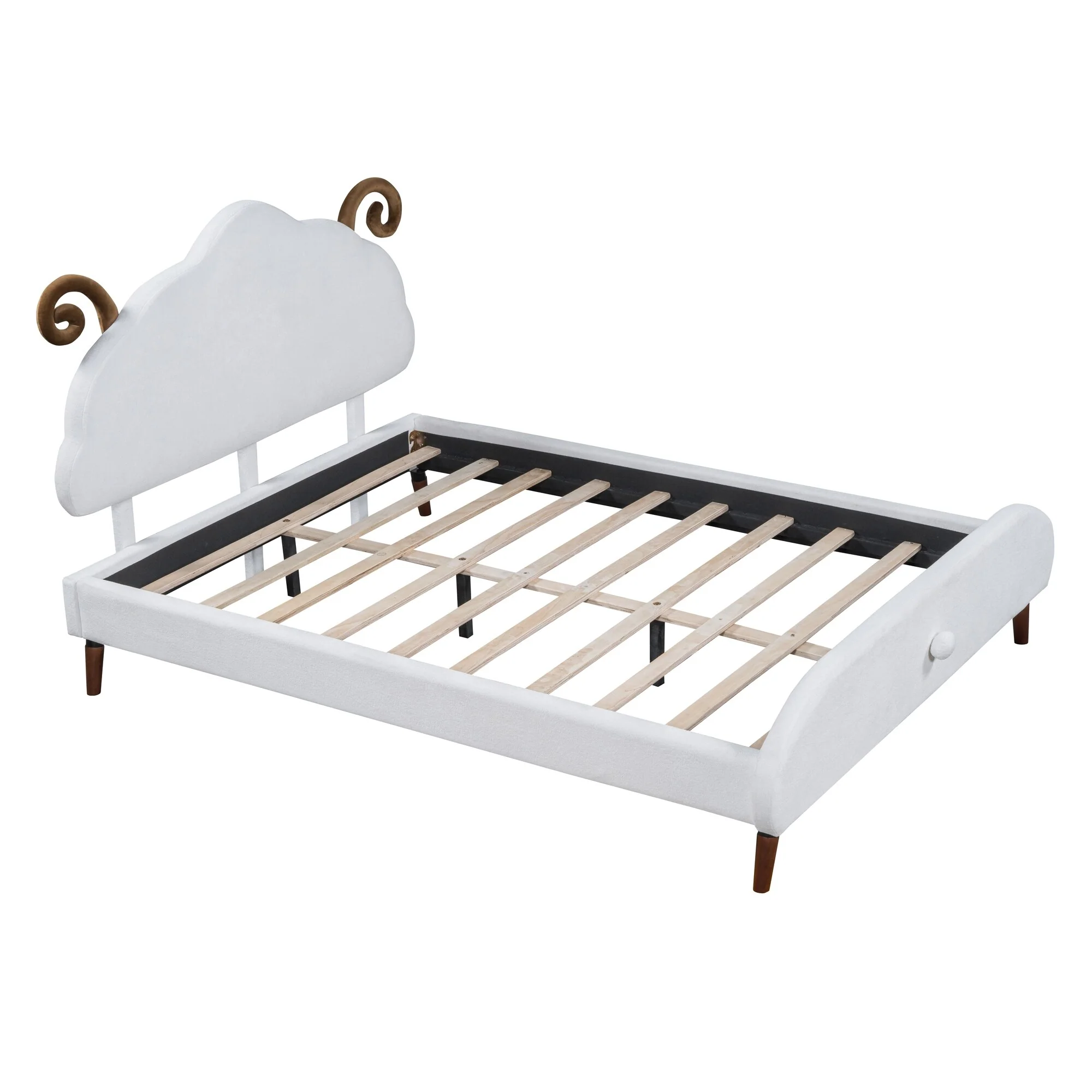 Full Size Sheep-Shaped Headboard Bed with Velvet Upholstery - Whimsical and Cozy Design