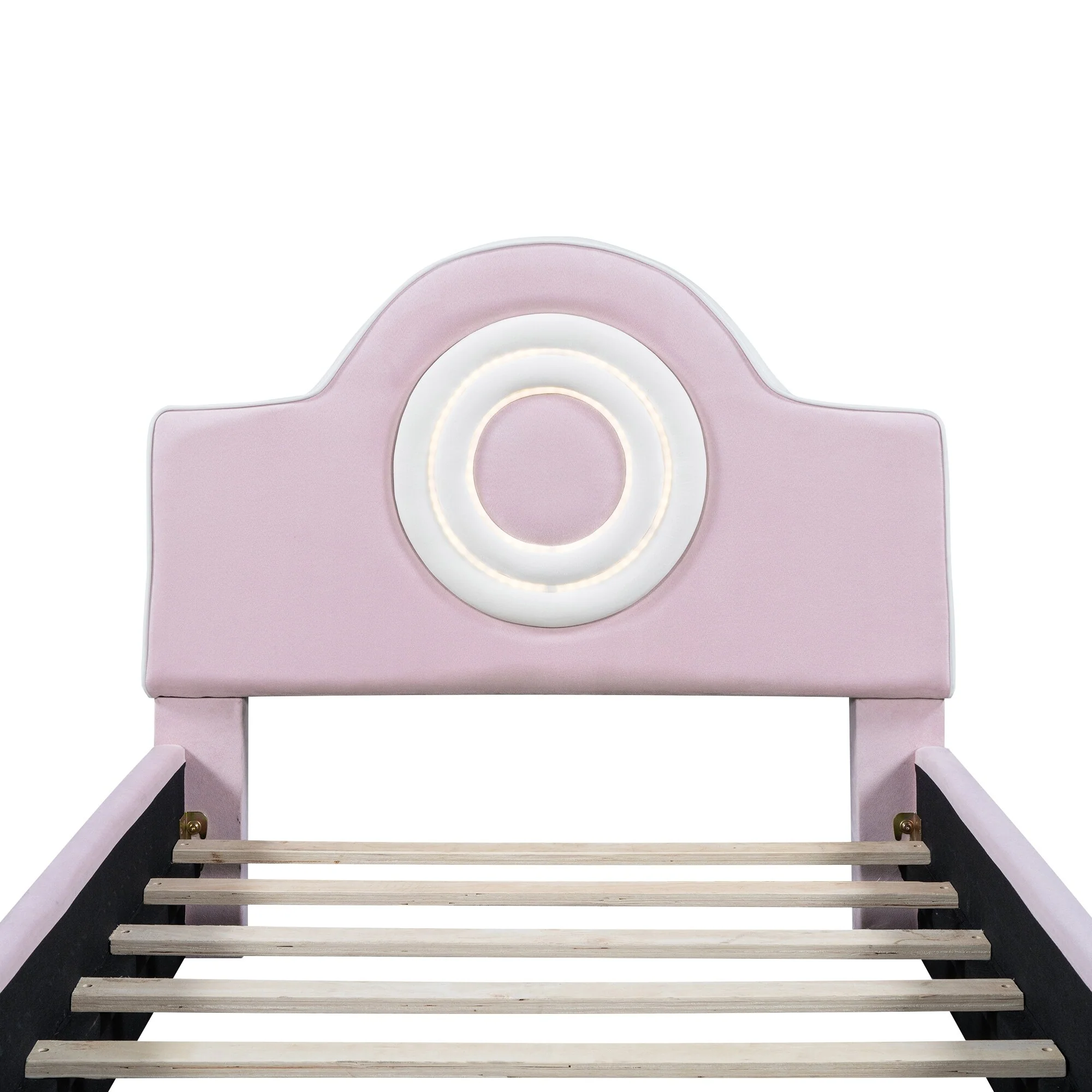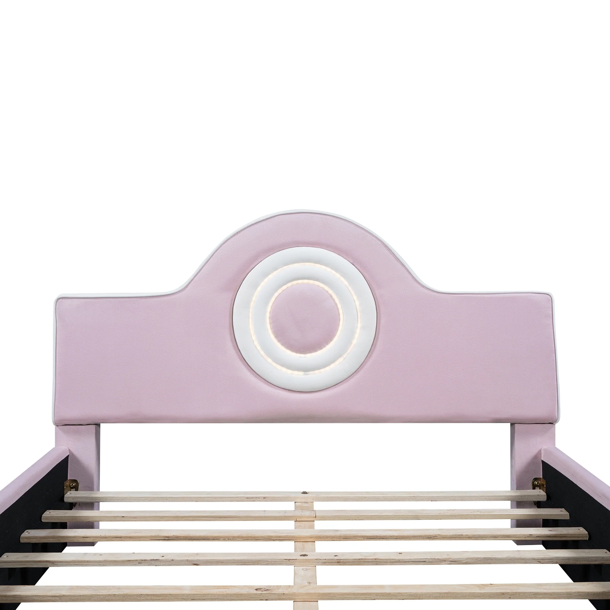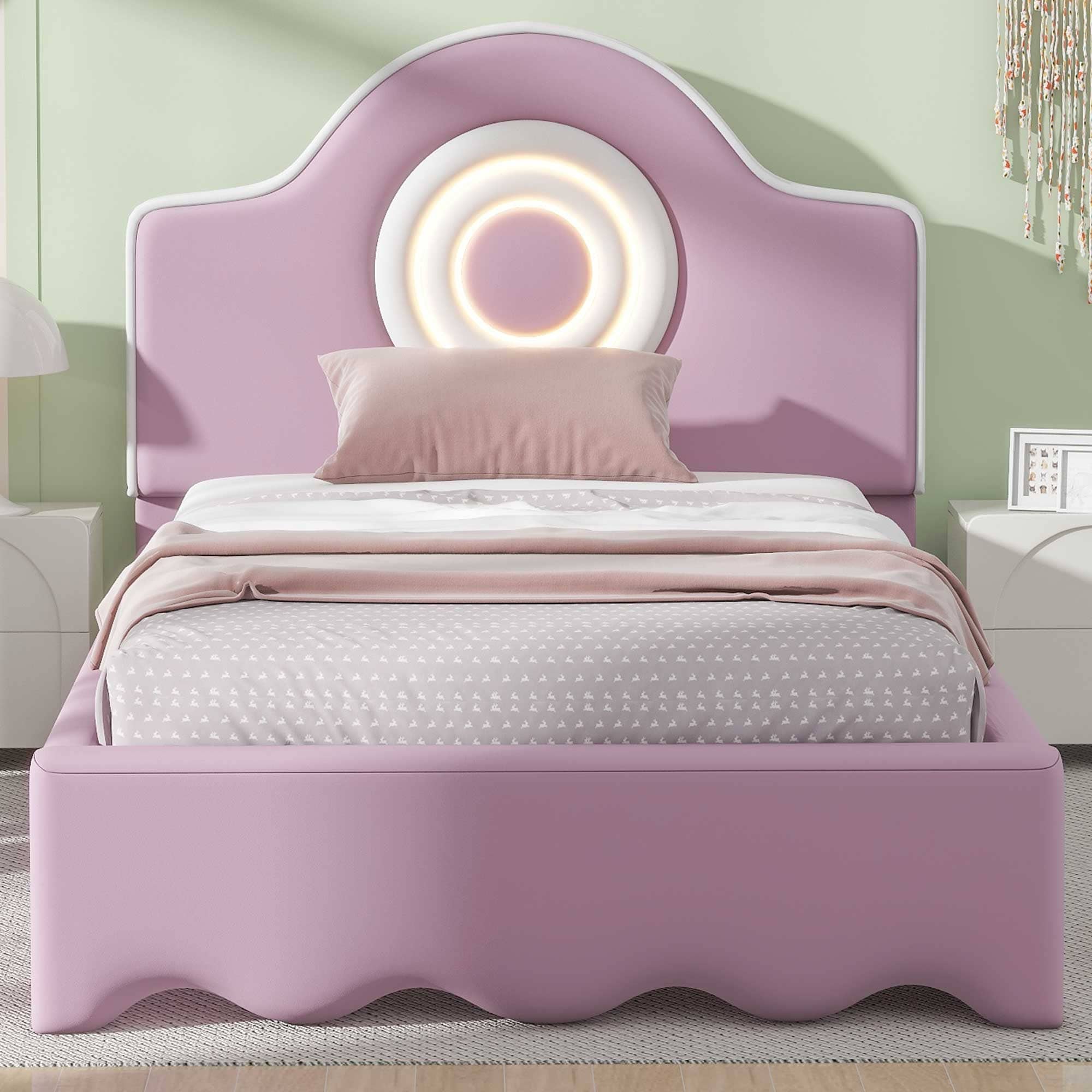 Twin Size Pink Upholstered Platform Bed with Animal Paw Headboard and LED Light