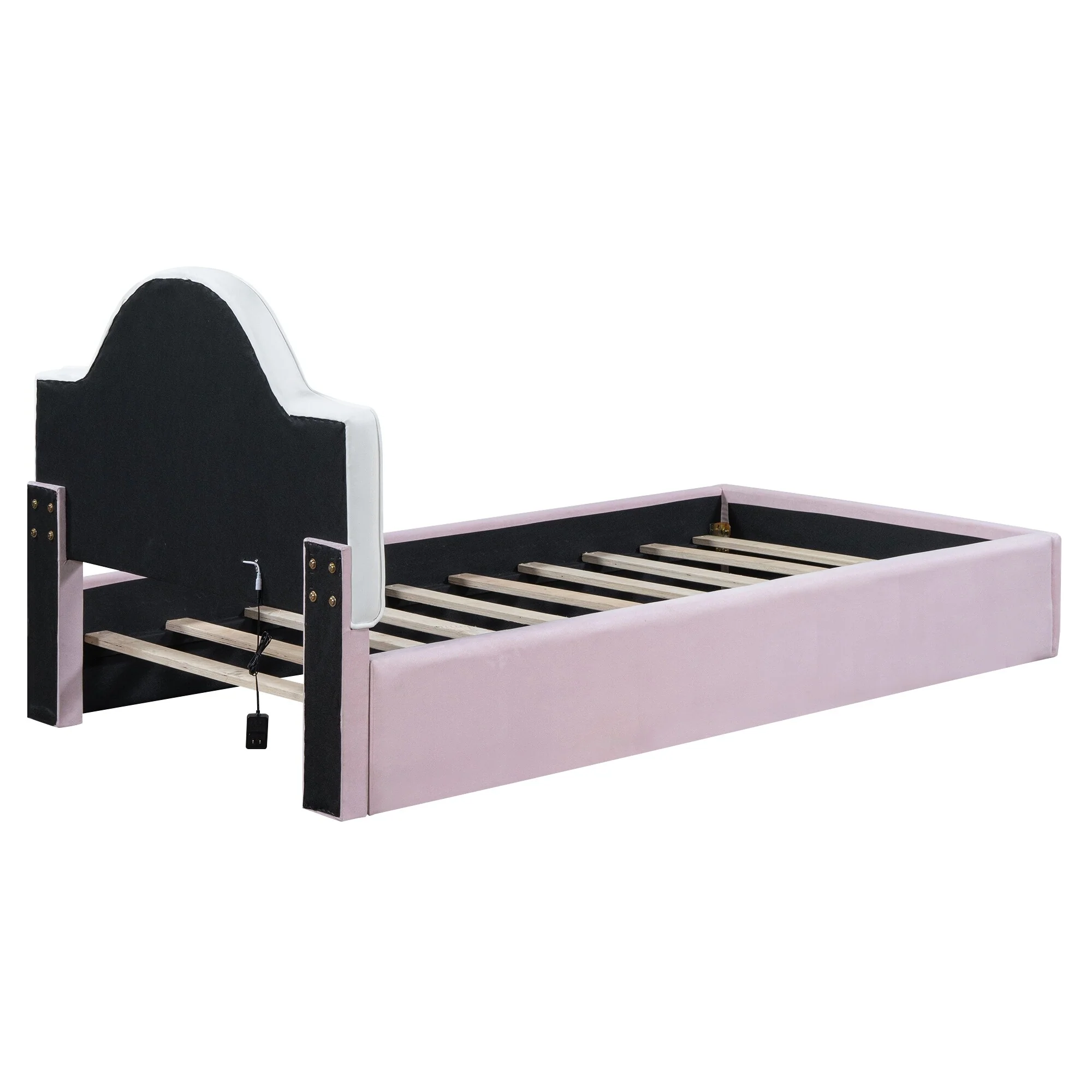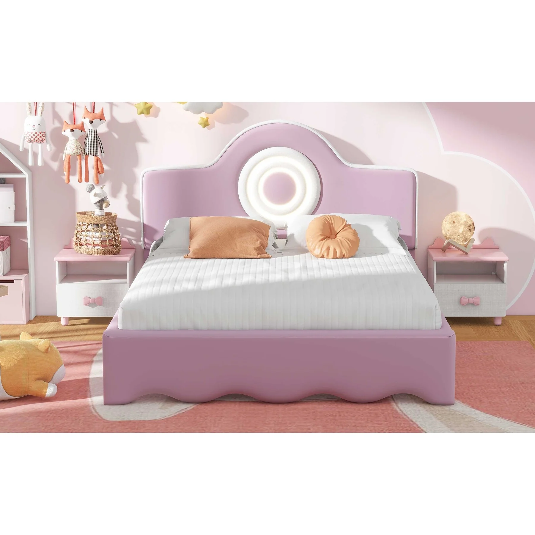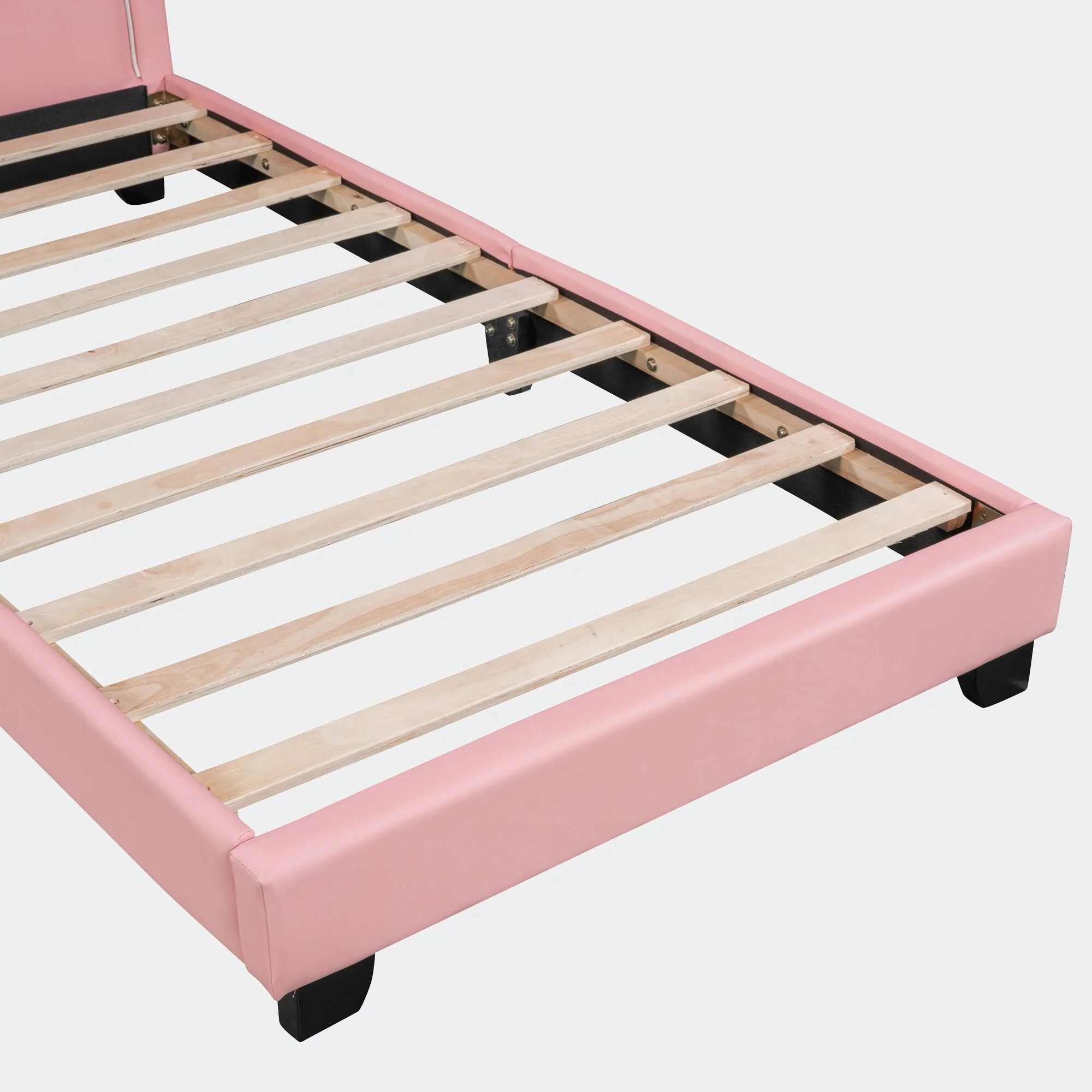 Twin Size Pink Upholstered Platform Bed with Animal Paw Headboard and LED Light