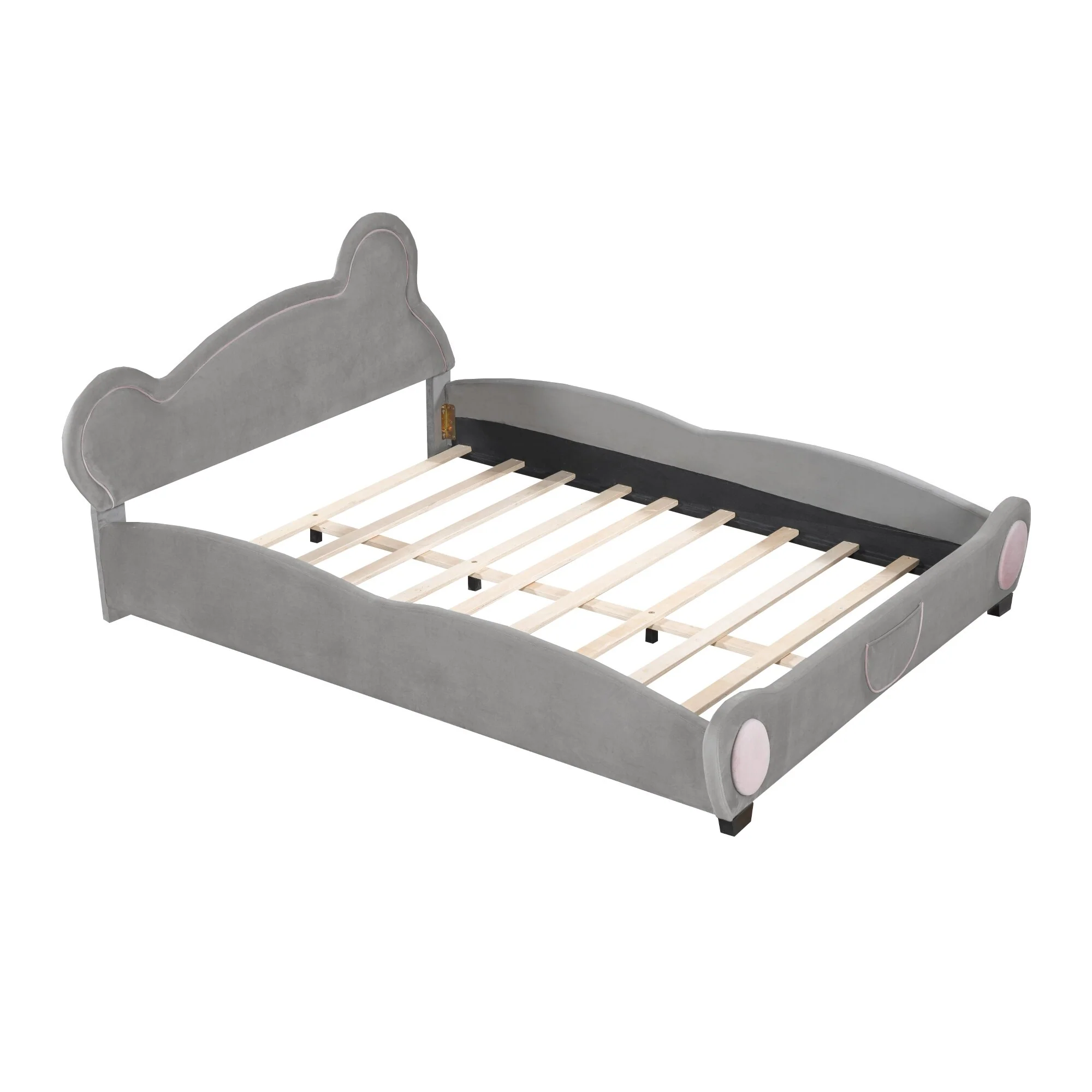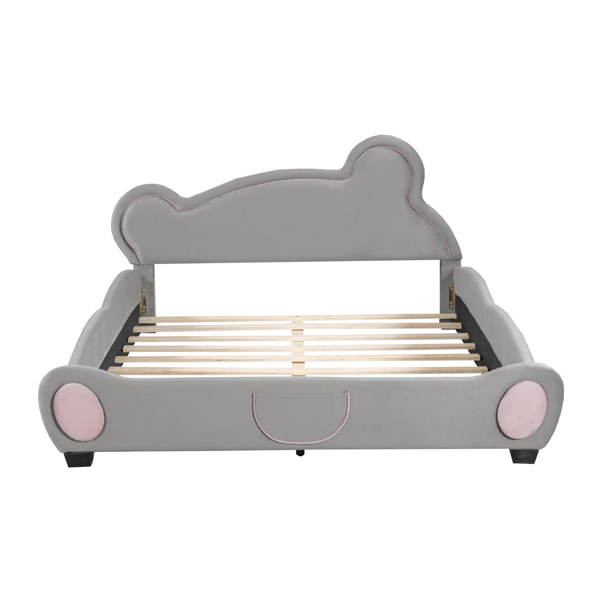 Cute Bear Design Twin Platform Bed, Velvet Upholstery with Storage