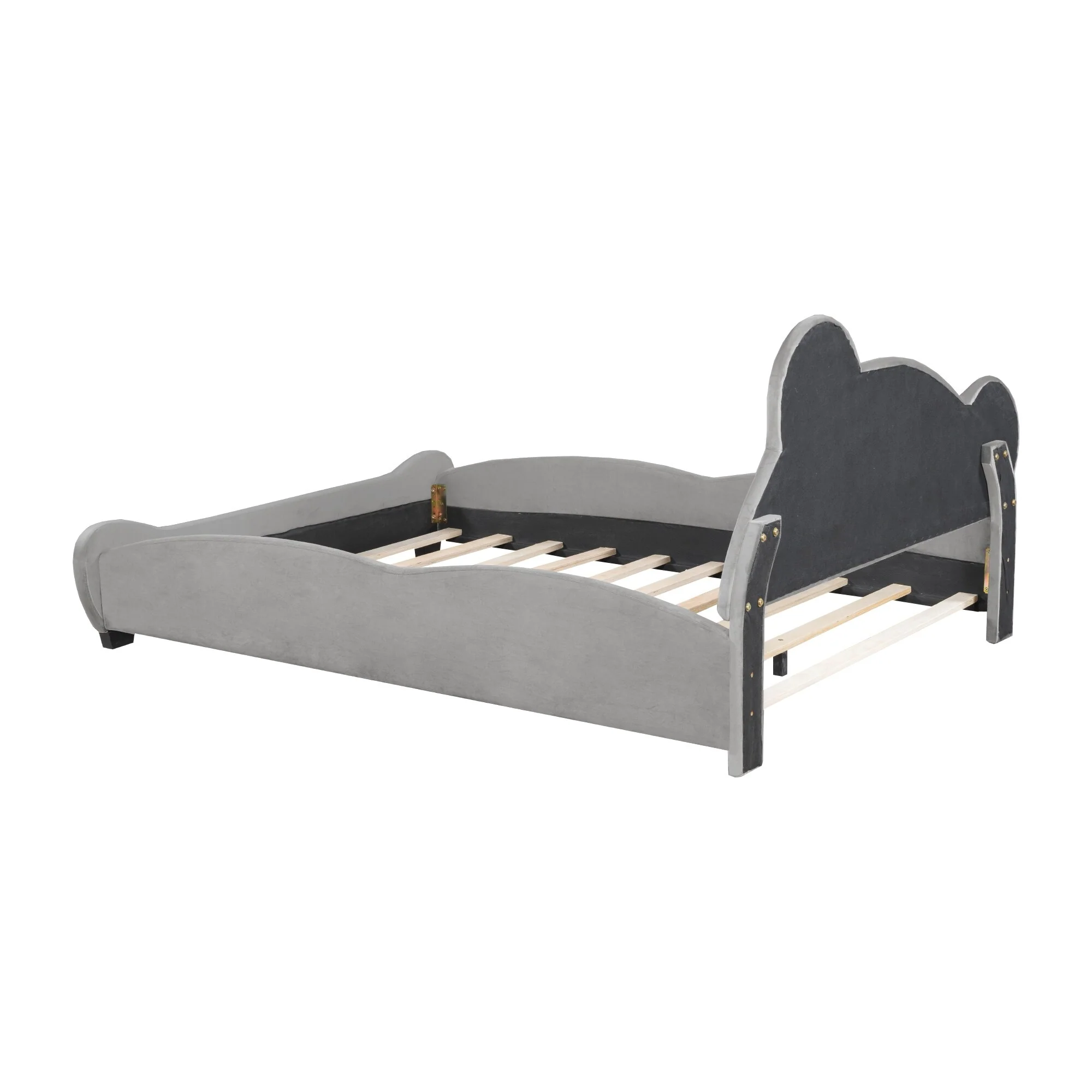 Velvet Twin Platform Bed with Elegant Cloud Headboard, Sturdy Frame & Easy Assembly
