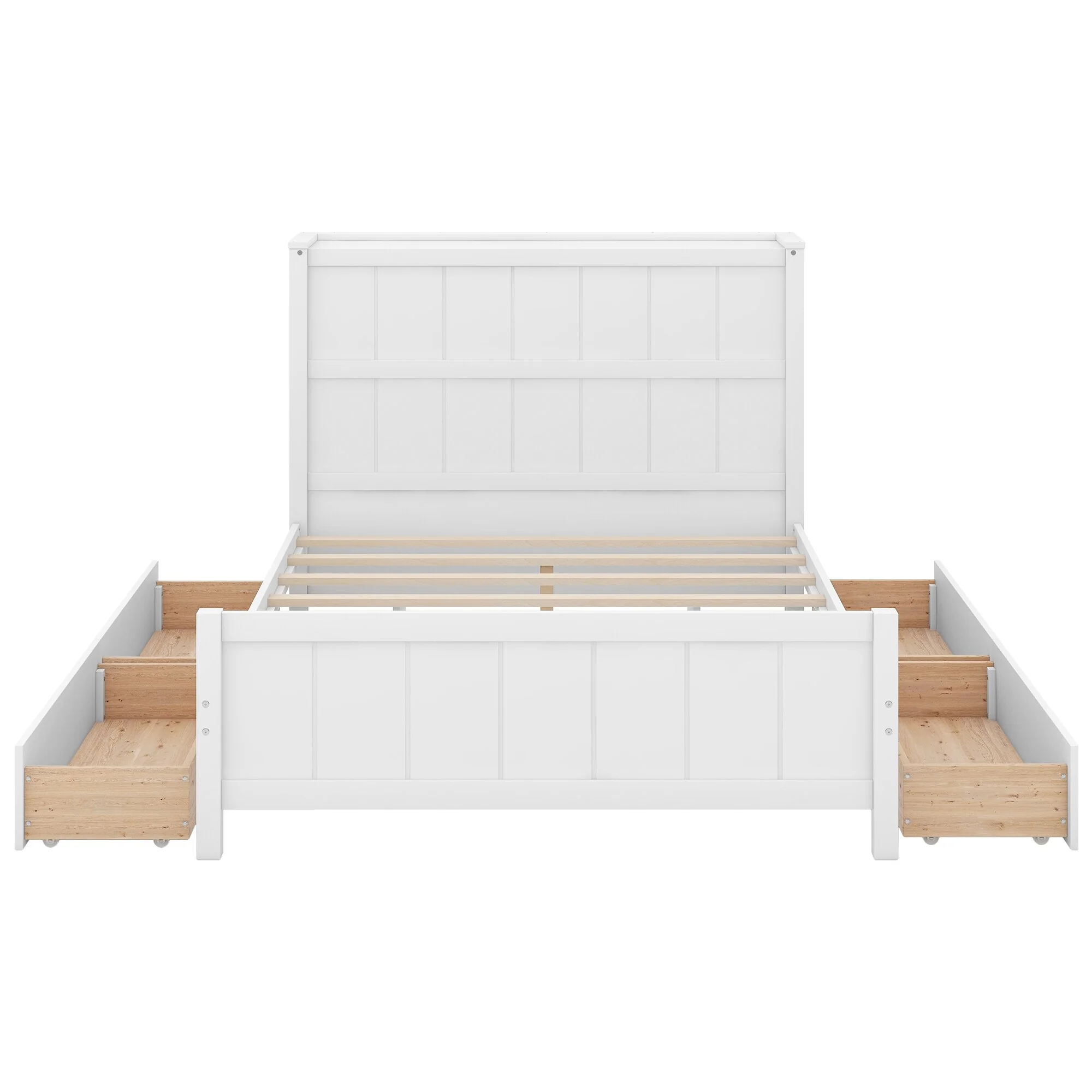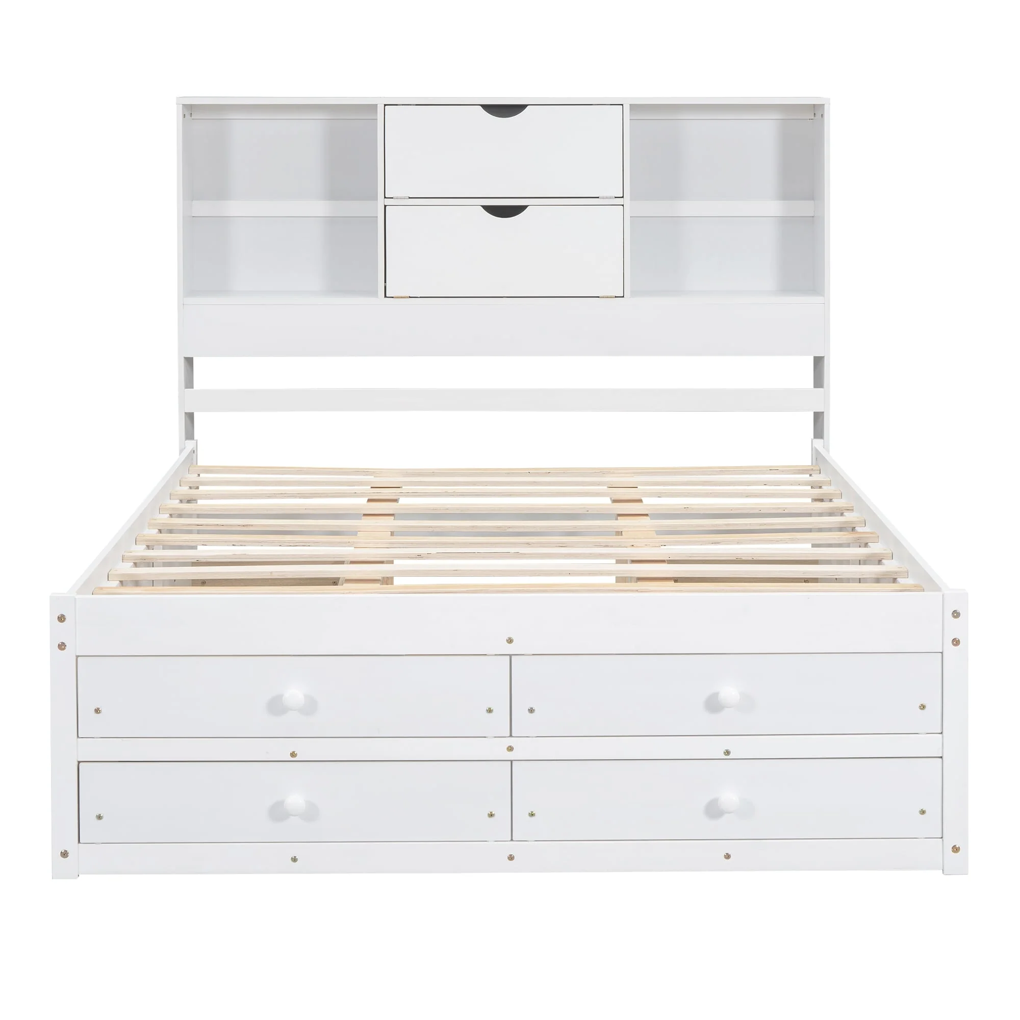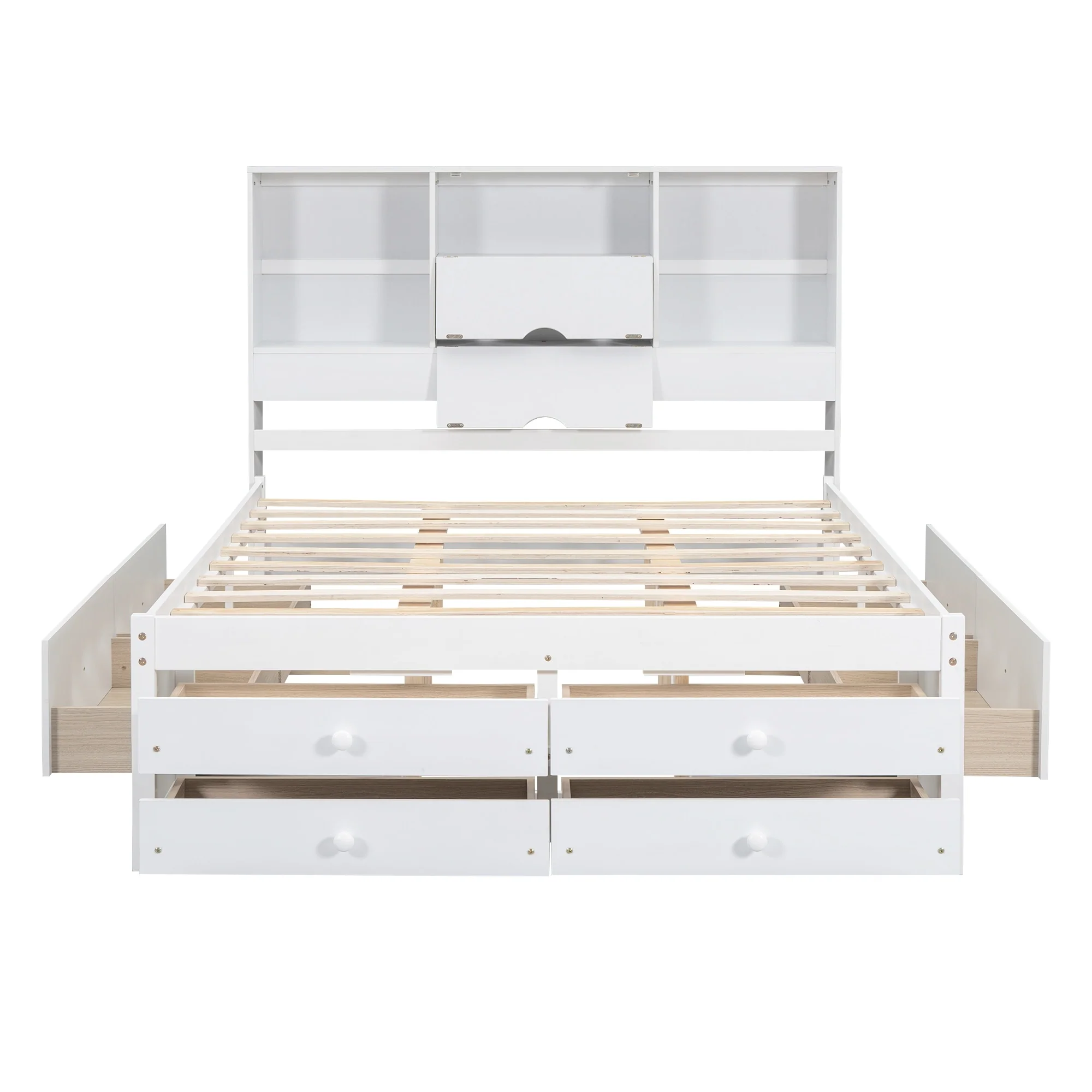 Queen Size Platform Bed with Storage Headboard & 8 Drawers - White