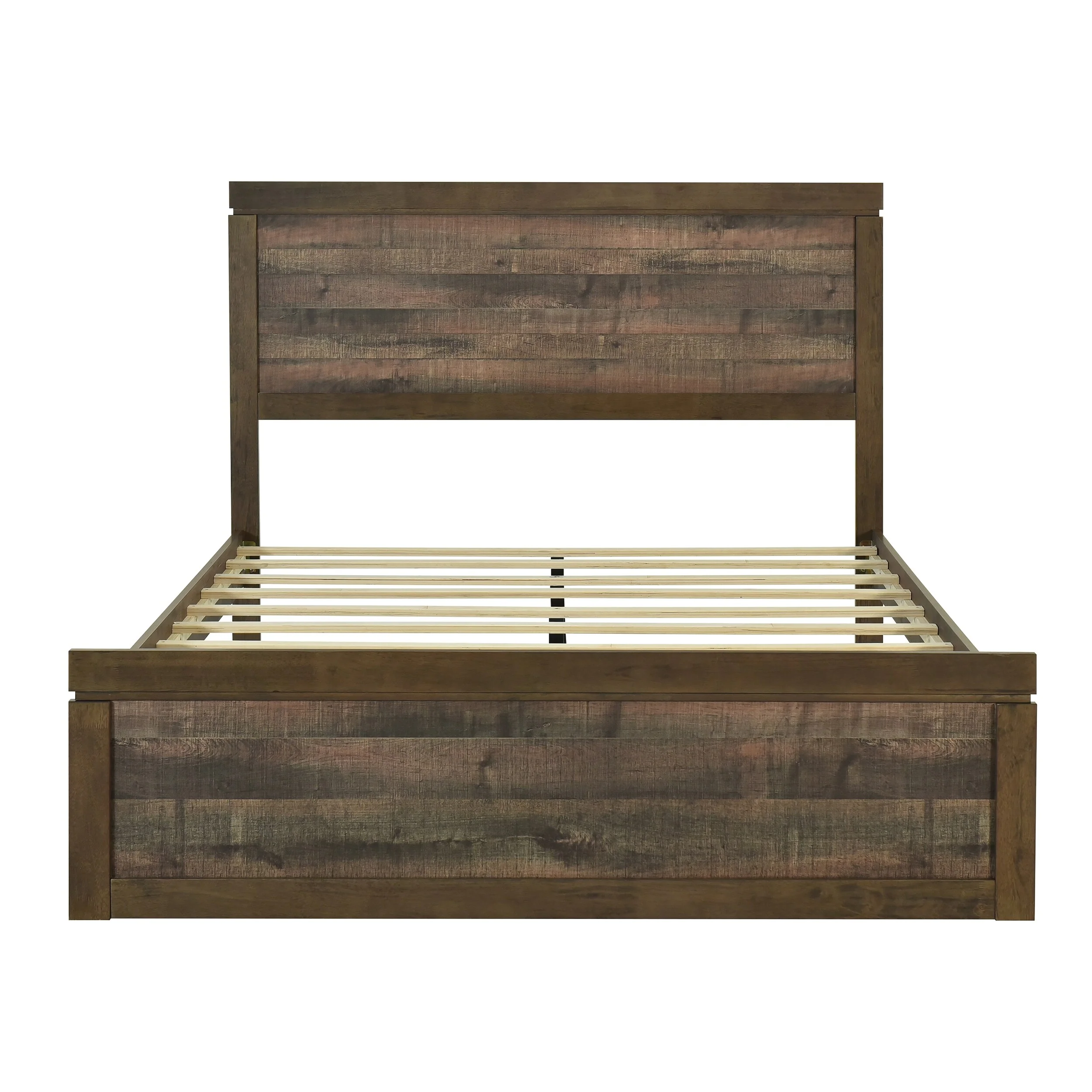 Rustic Pine Wood Platform Bed Frame with Slats - Queen Bed, 800 lbs Capacity