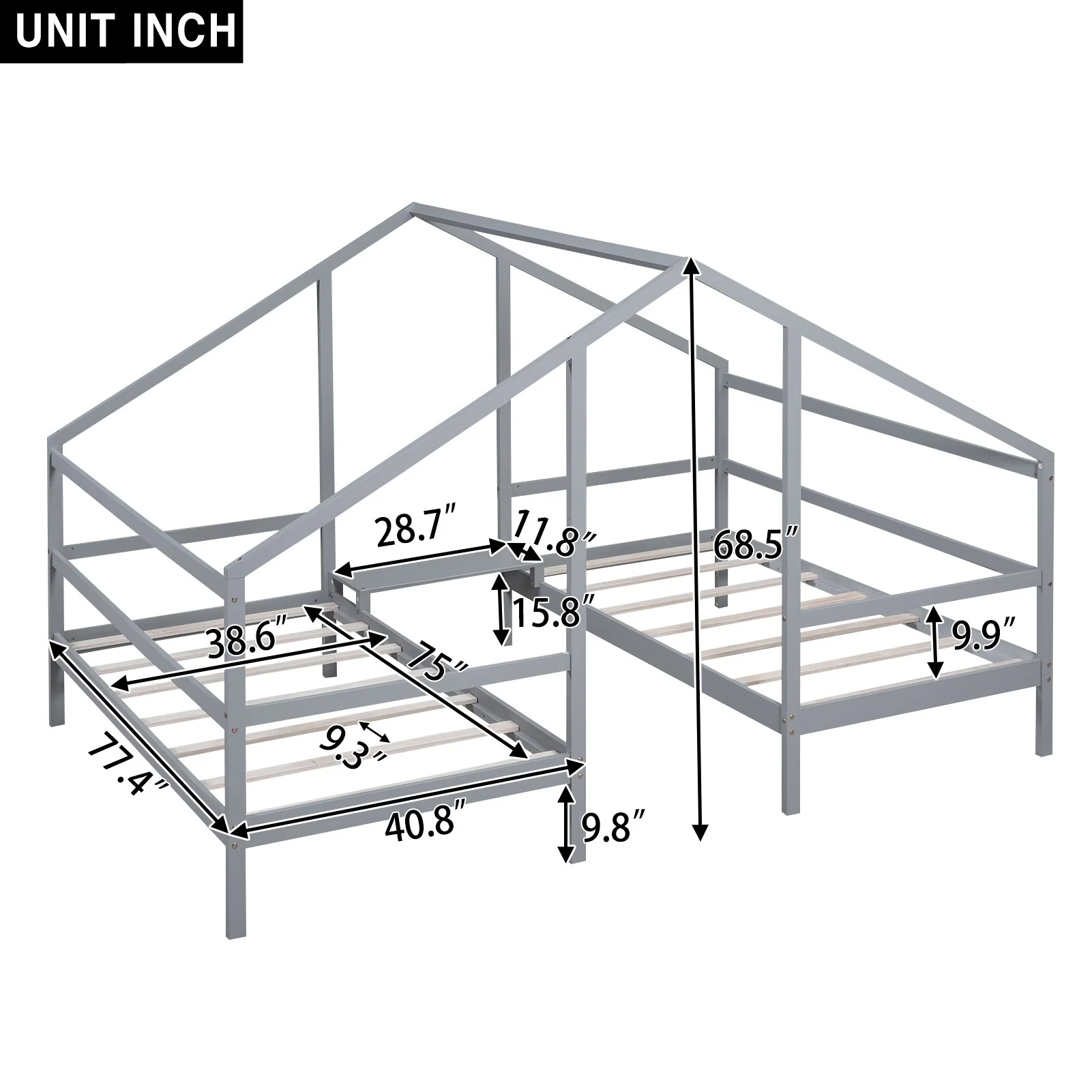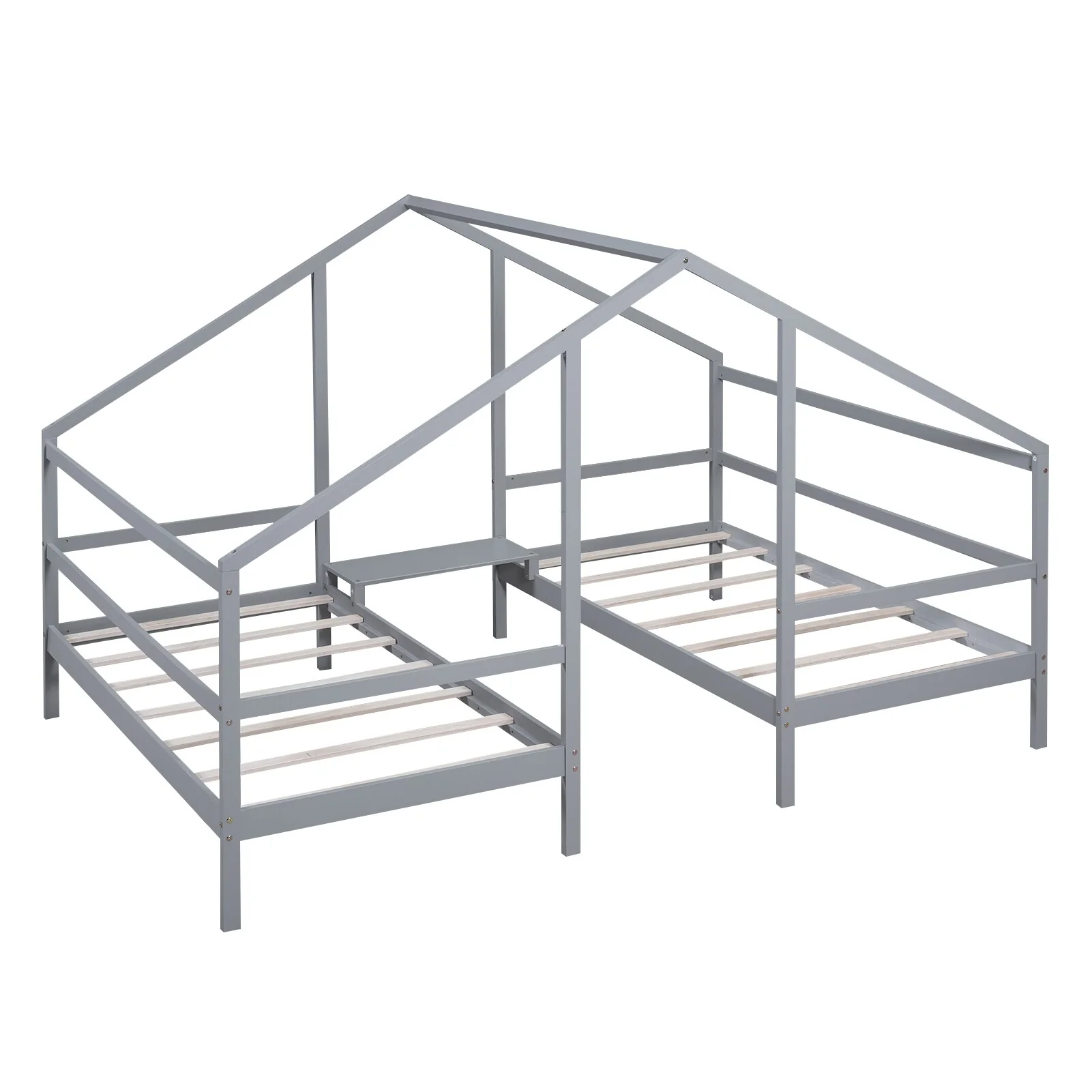 Modern Twin House Beds with Built-in Storage Table, No Box Spring Needed