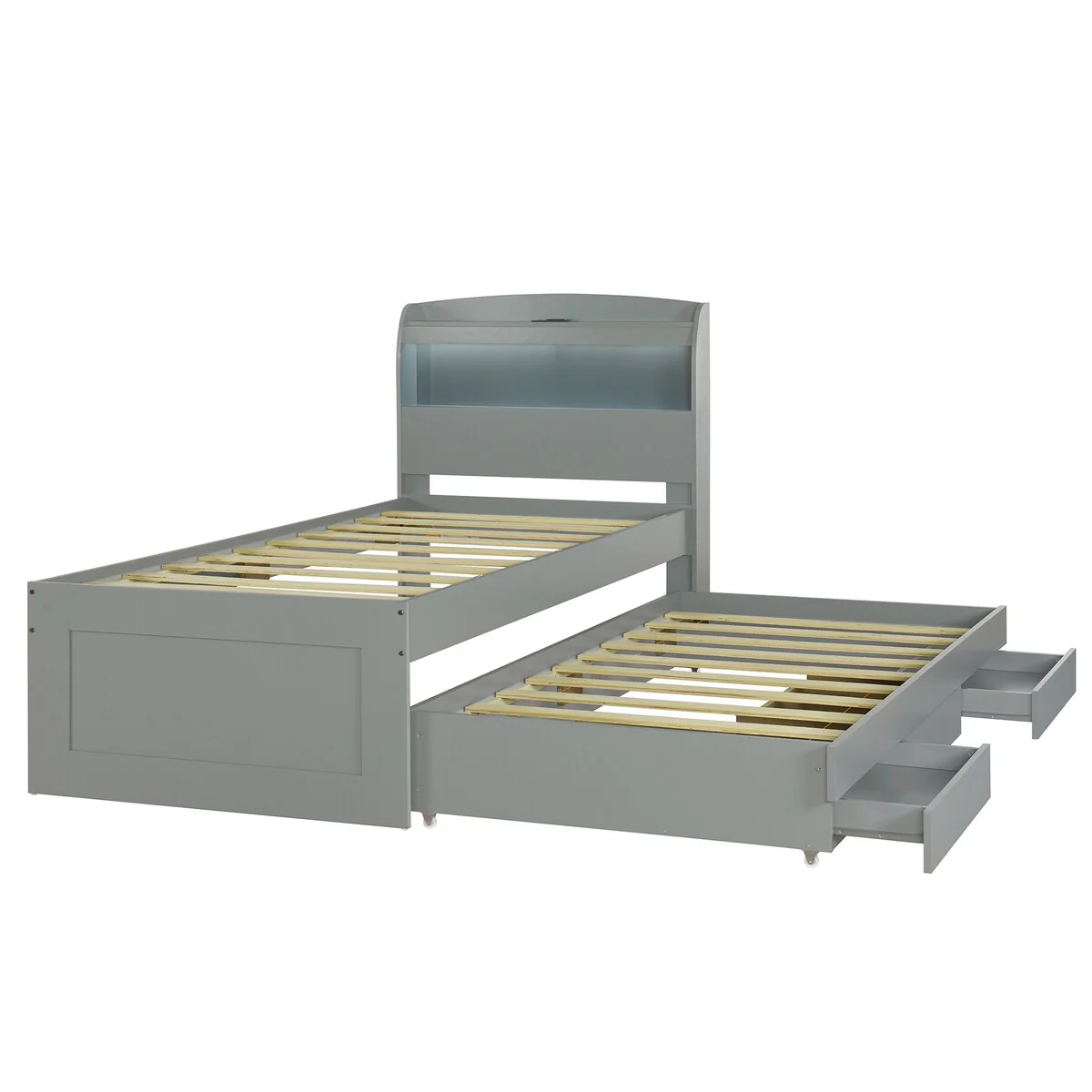 Max and Lily Scandinavian Twin-Size Bed with Slatted Headboard