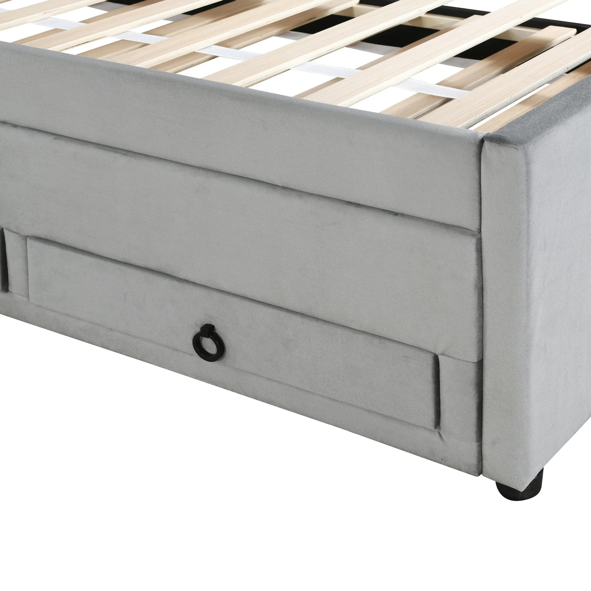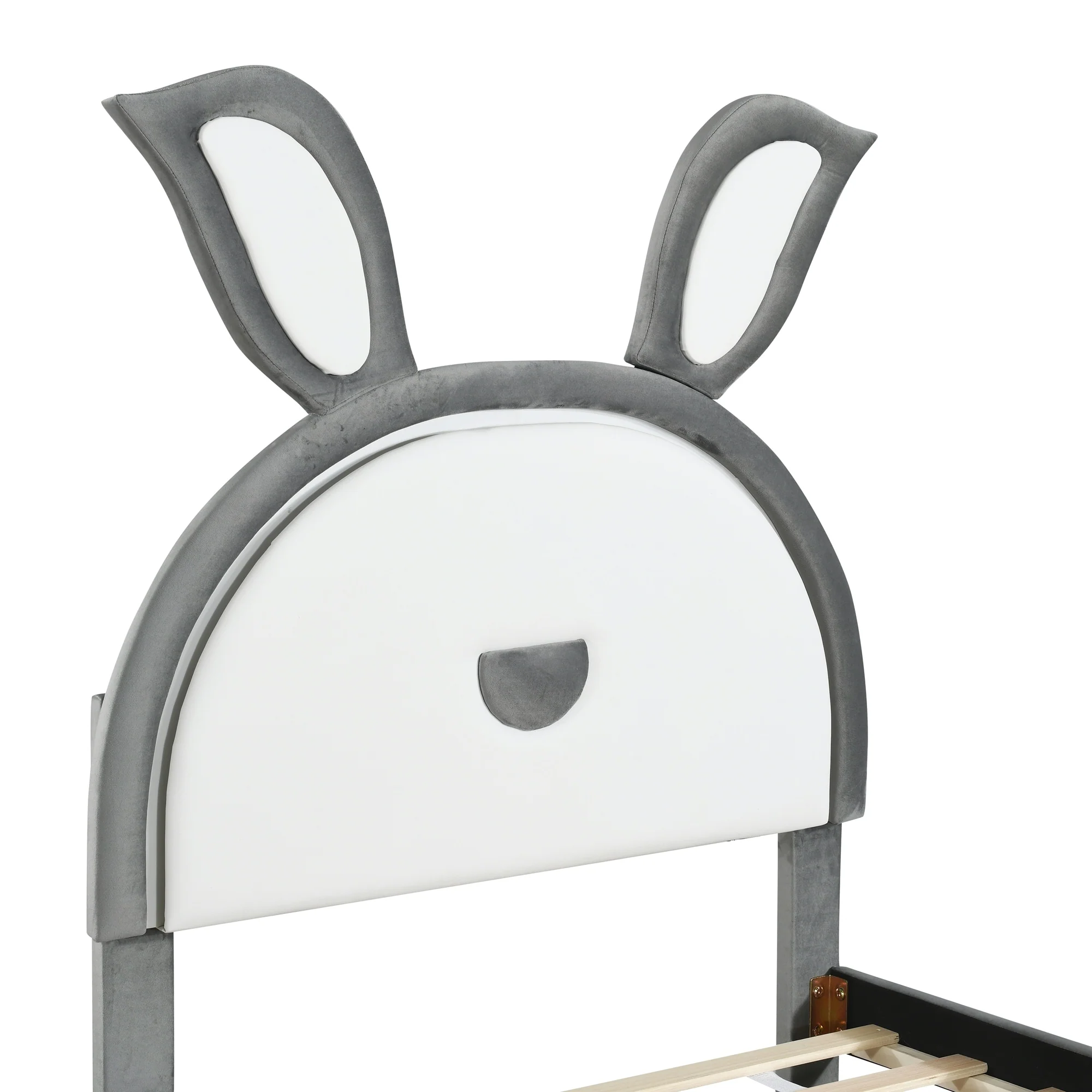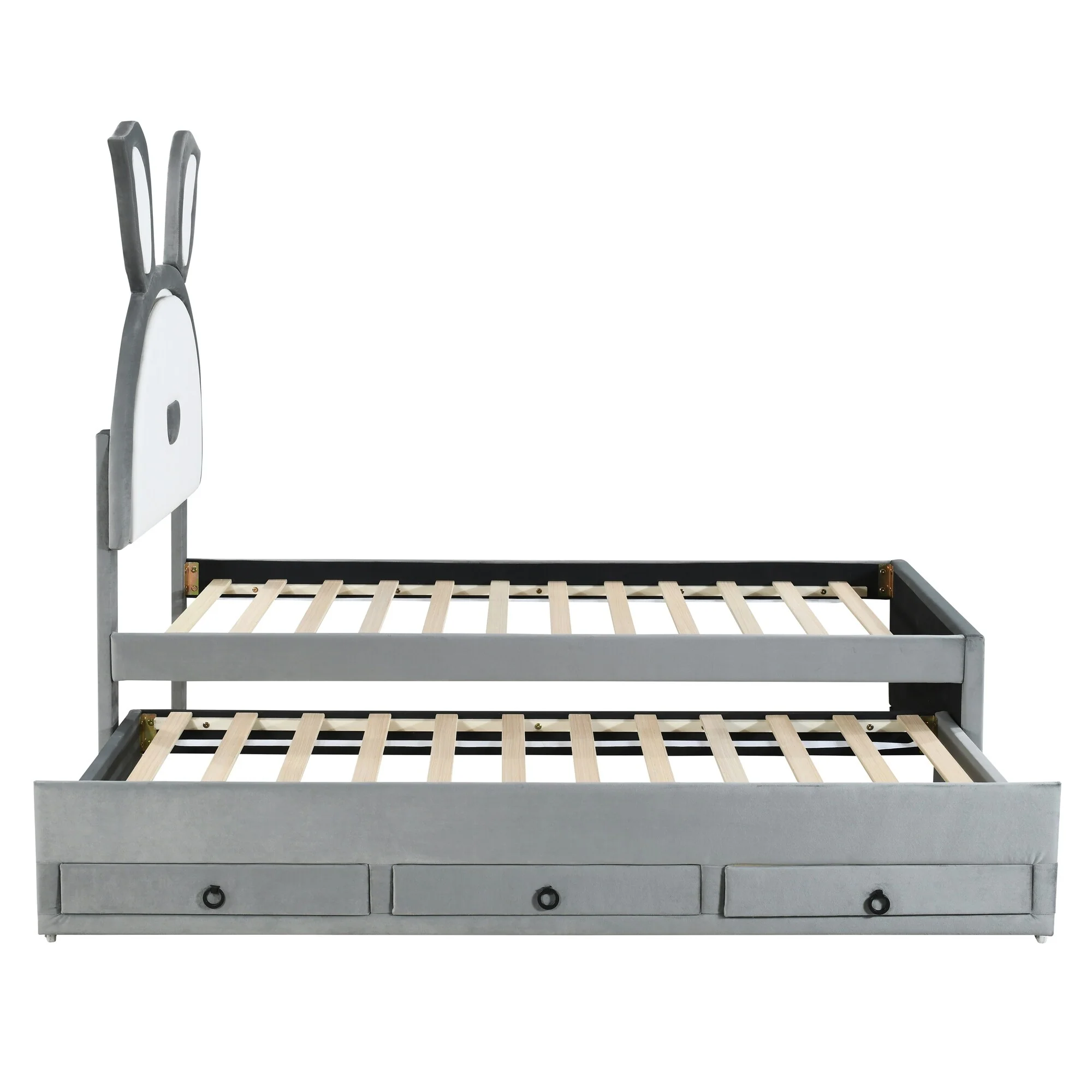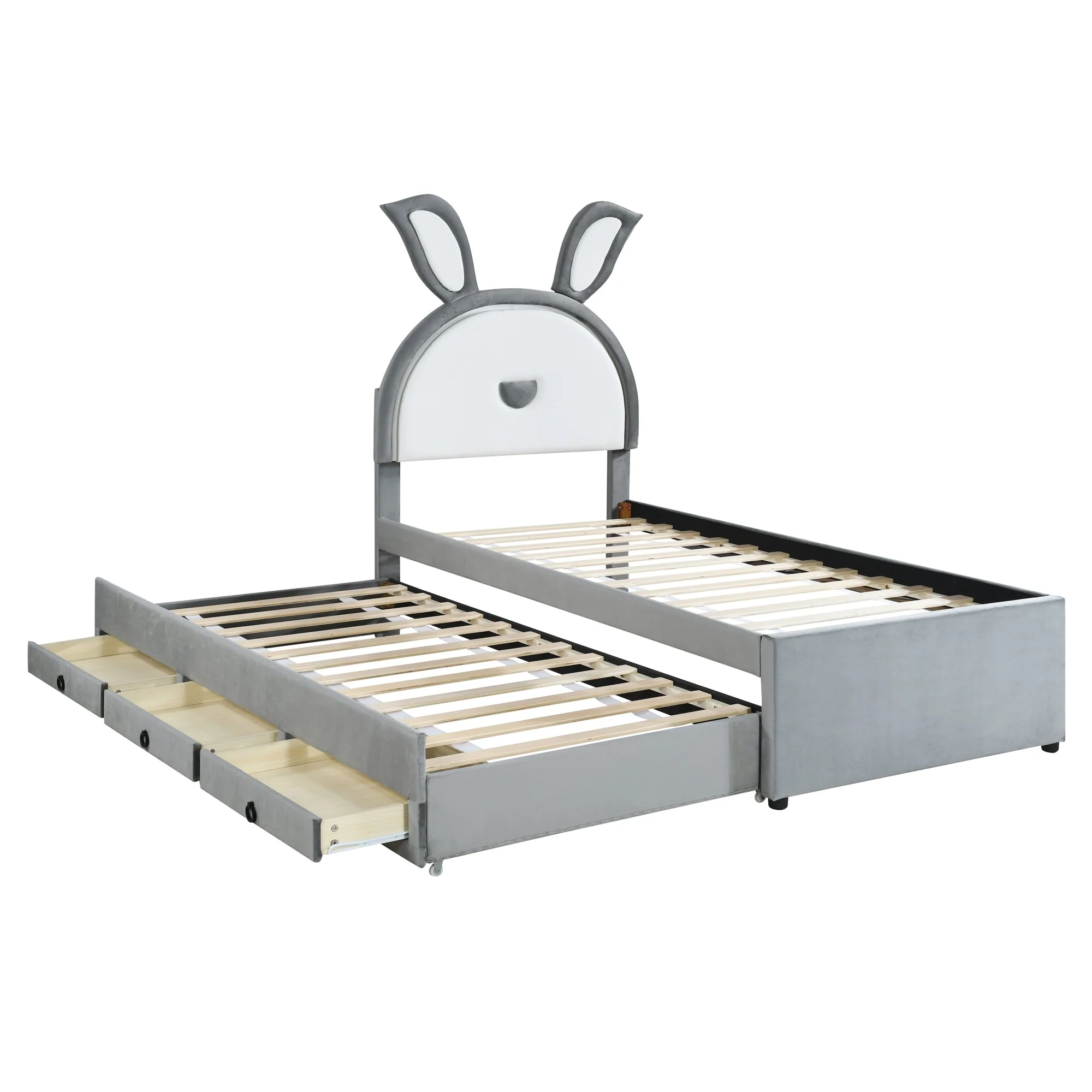 Velvet Twin Platform Bed with Trundle and Storage Drawers, Rabbit-Shaped Headboard