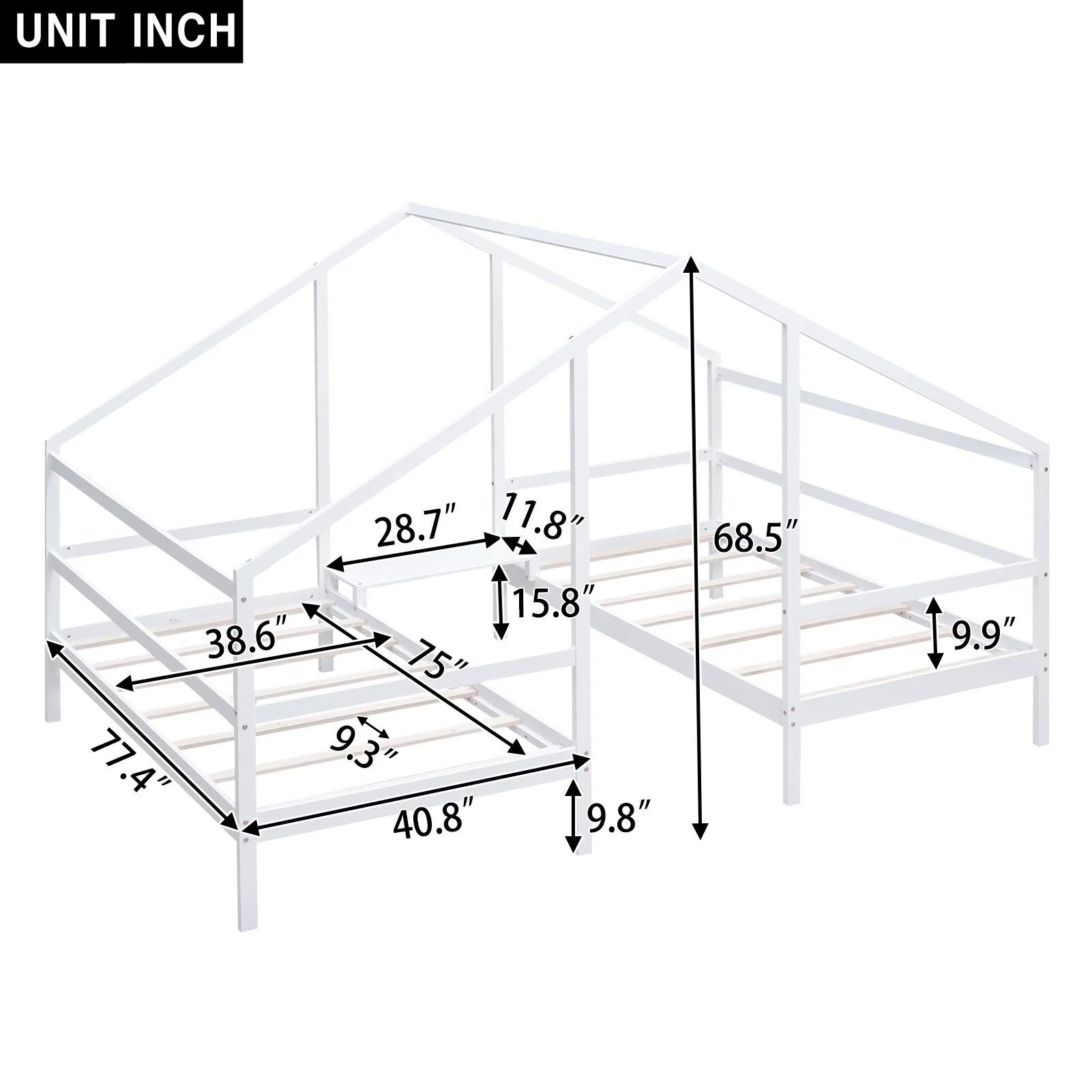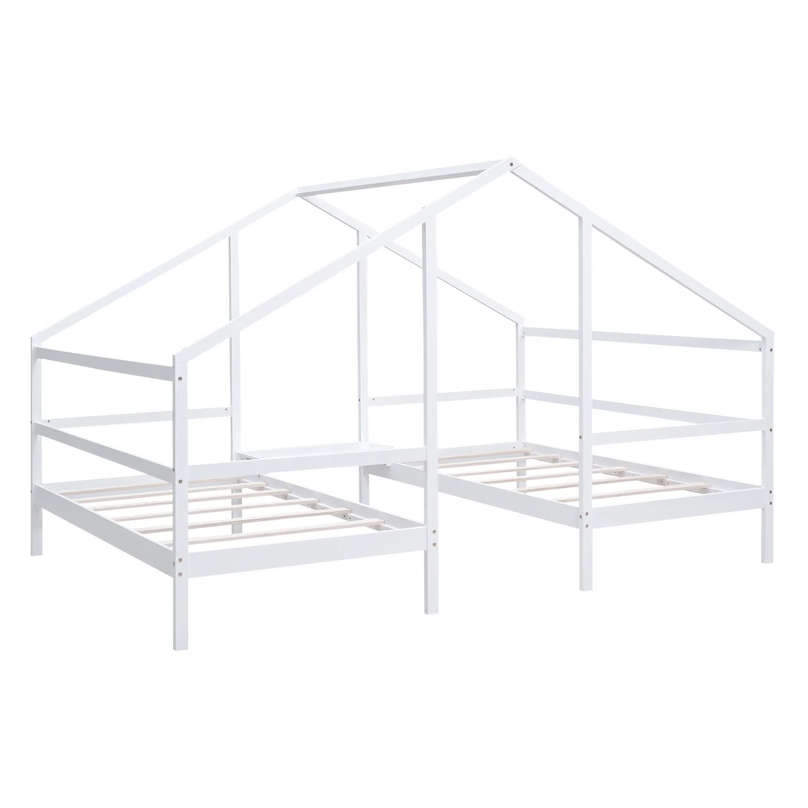 White Twin Wooden House Bed for Kids, Durable Pine Wood, No Box Spring Required