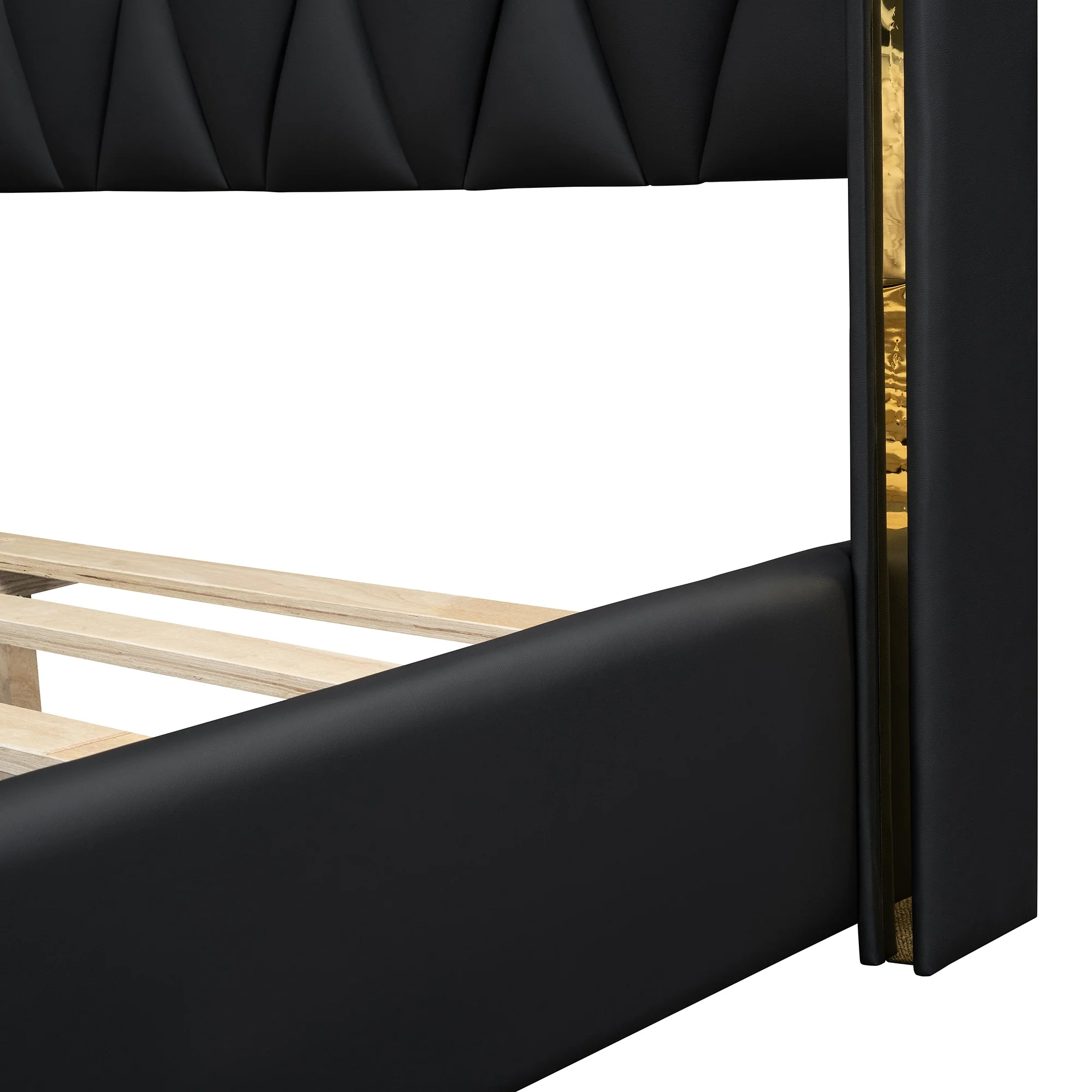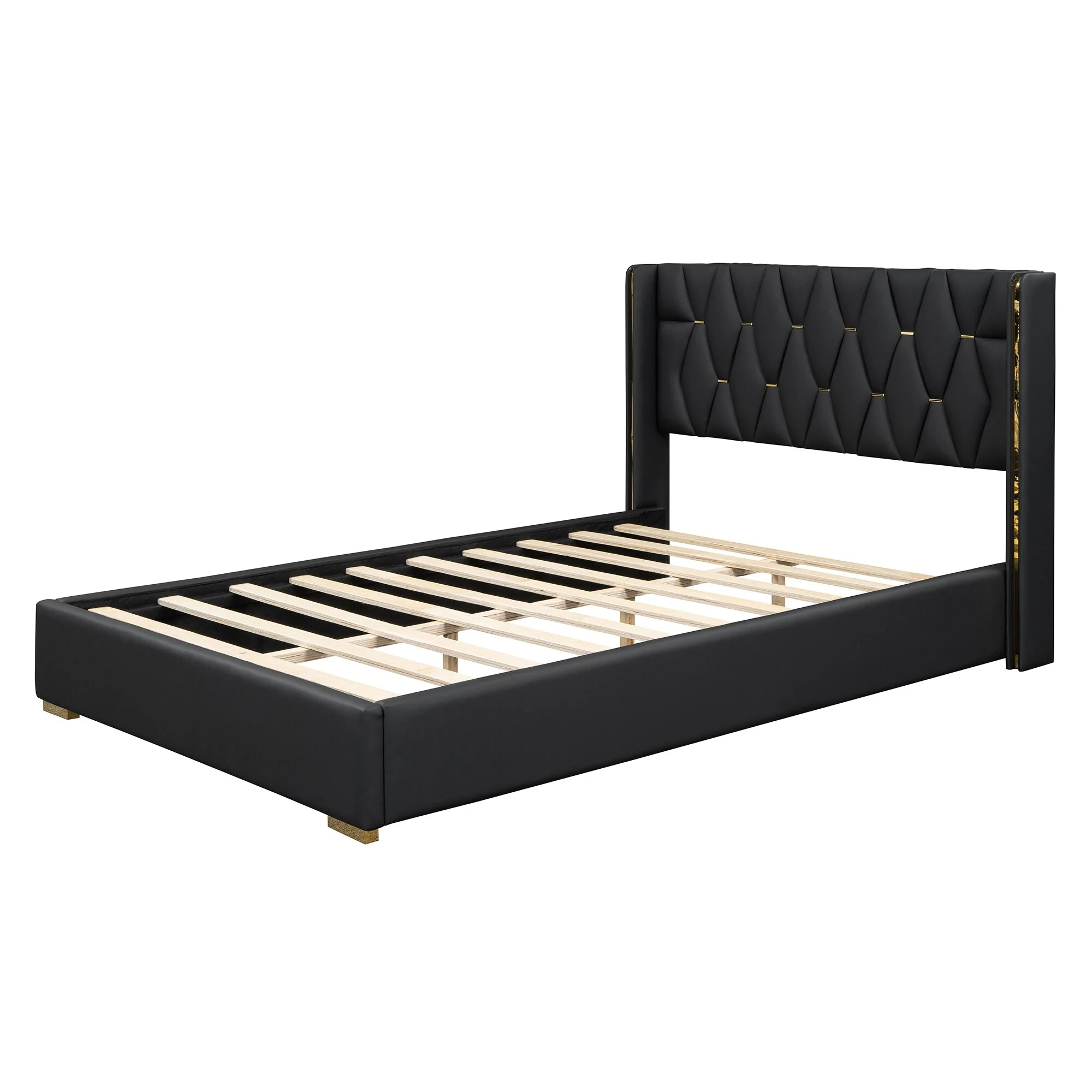 Full Size Upholstered Platform Bed with PU Leather Headboard and Sturdy Frame
