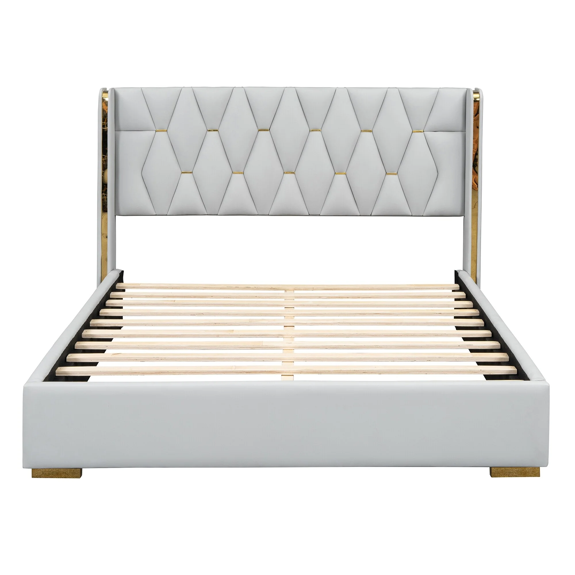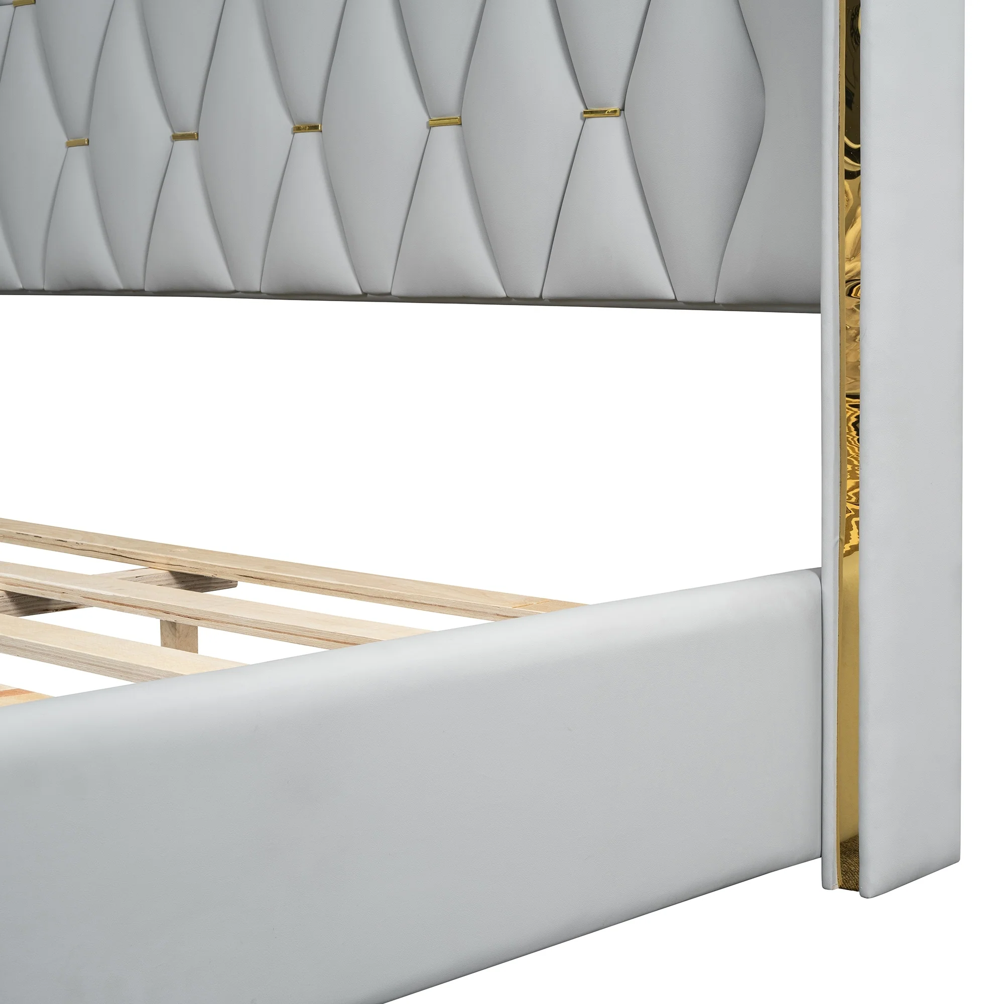 Modern Full Size Velvet Platform Bed with Rivet Accents and Tufted Headboard