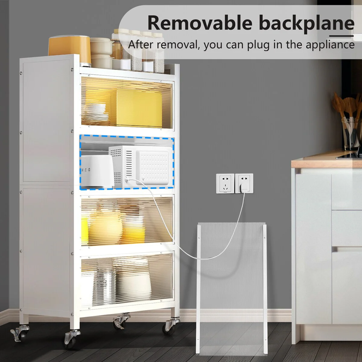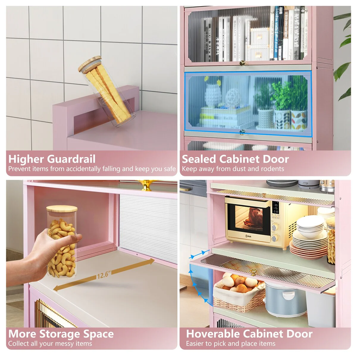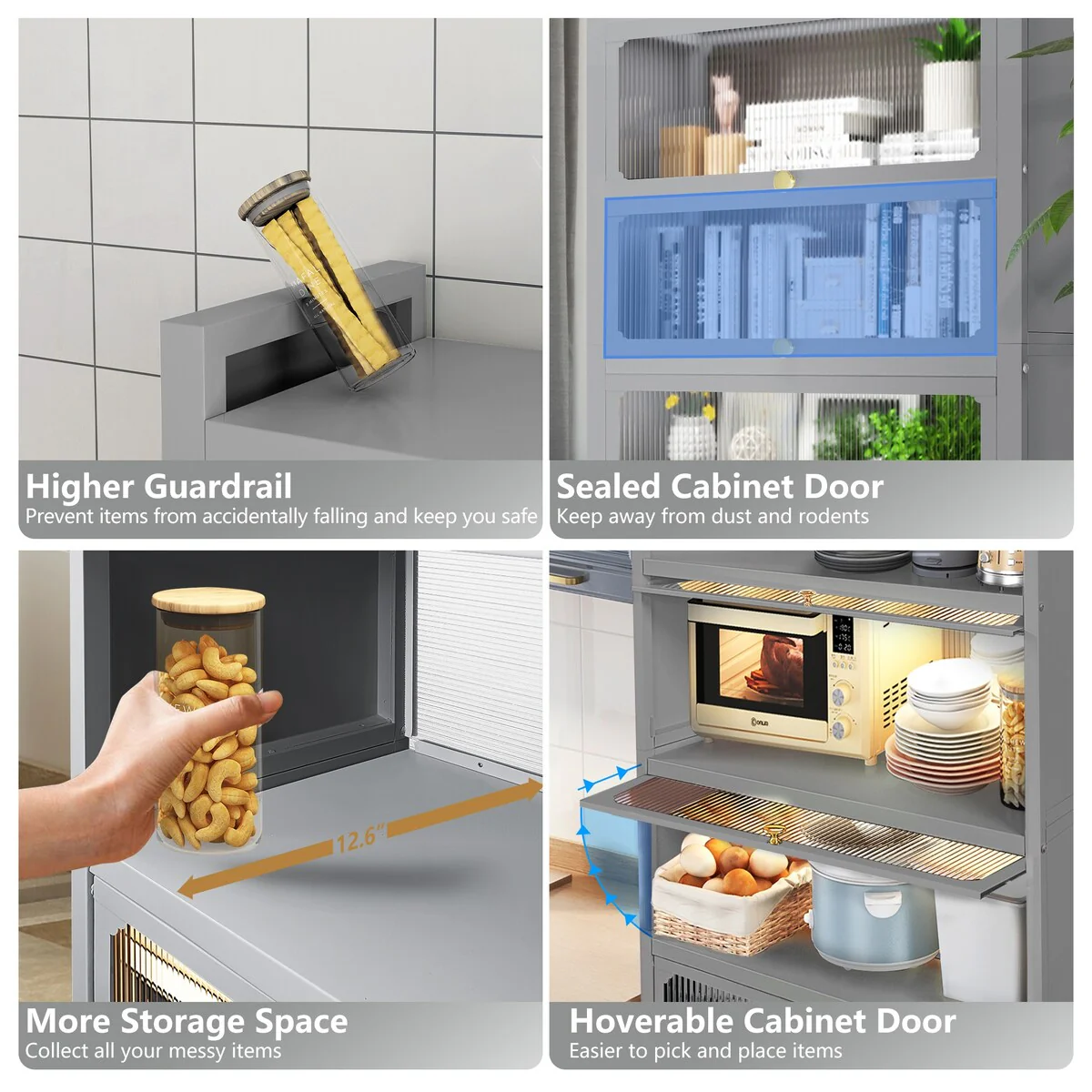 Multipurpose: Not only a kitchen cabinet, but also as a display cabinet in the living room to store trophies, collections and plants, a pantry in the kitchen to store spices and tableware, or a bookcase in the study to store books and documents, etc.