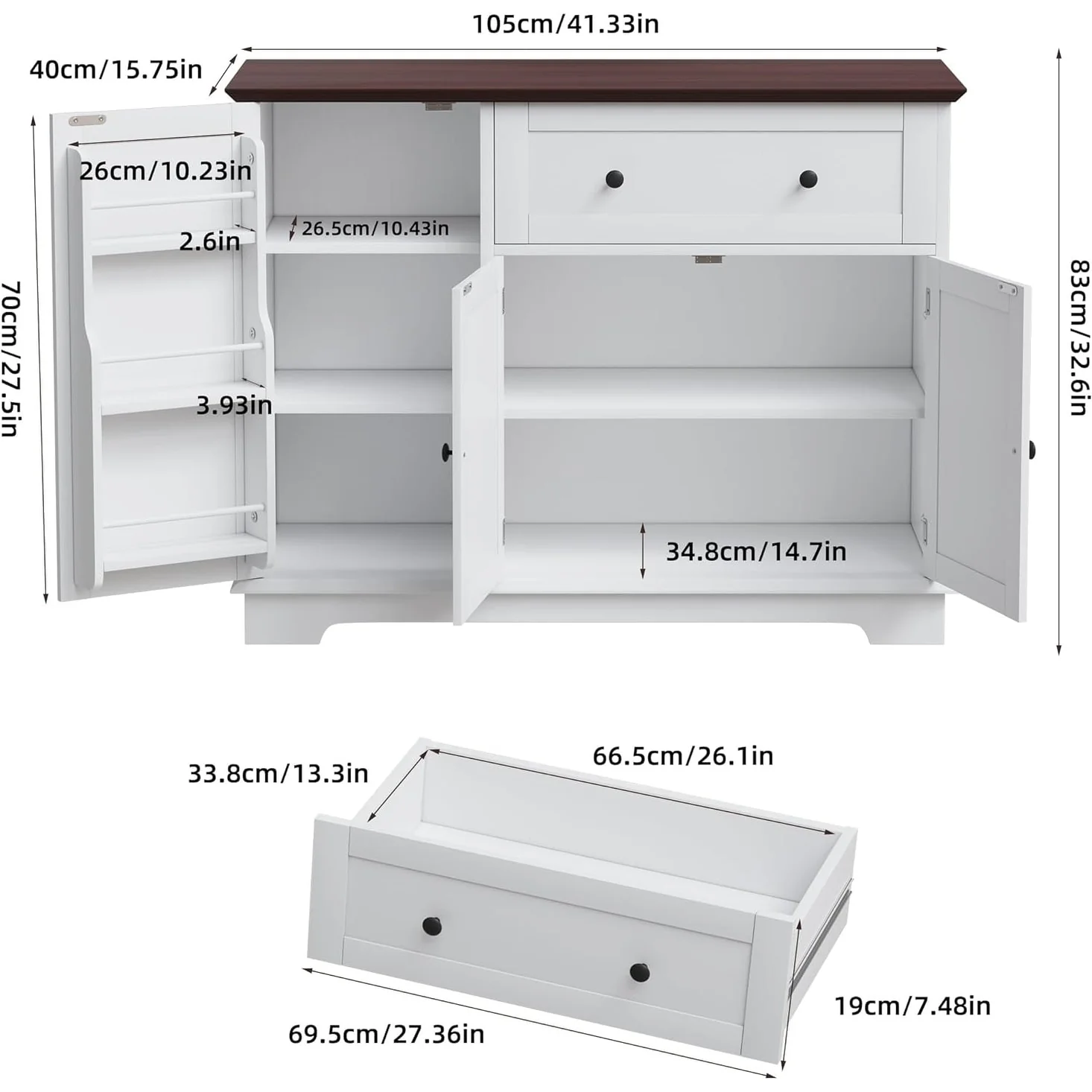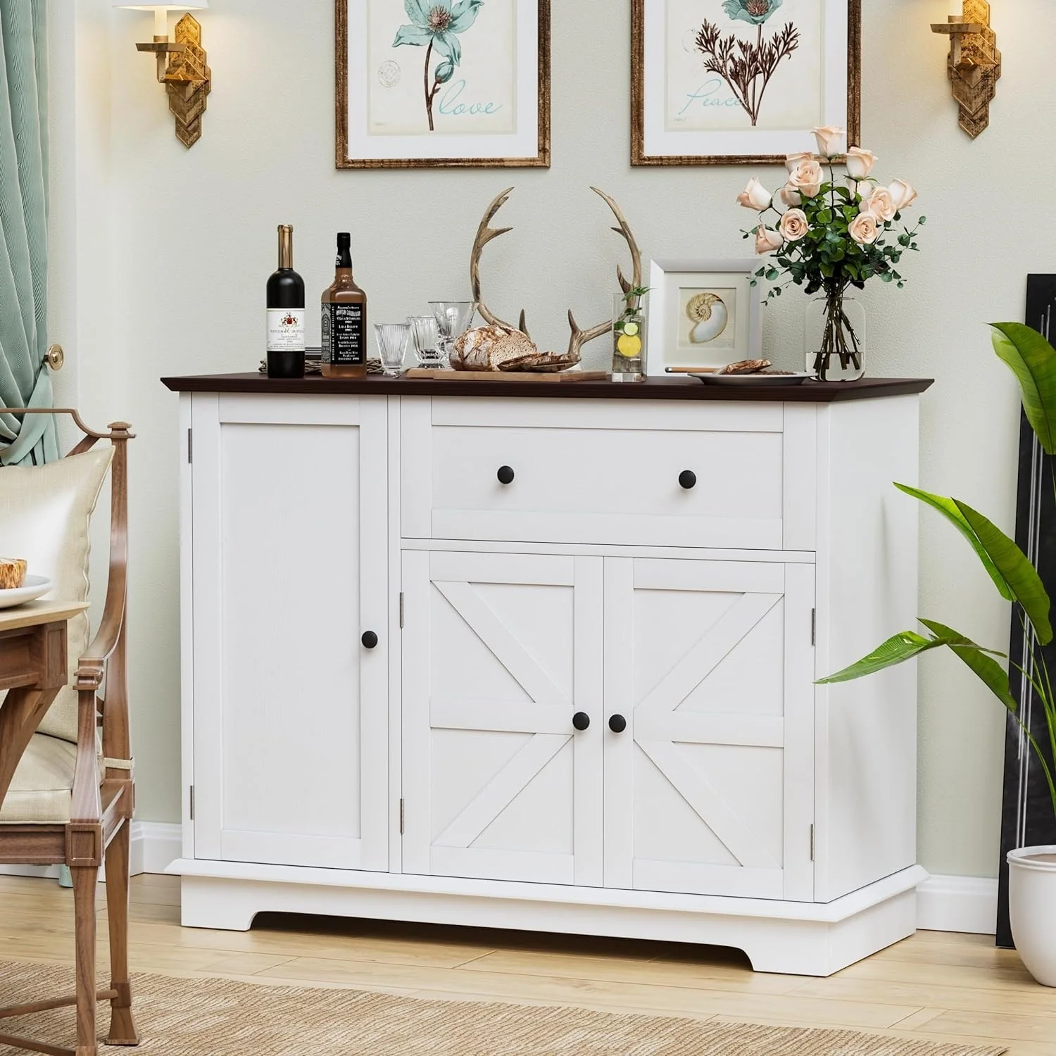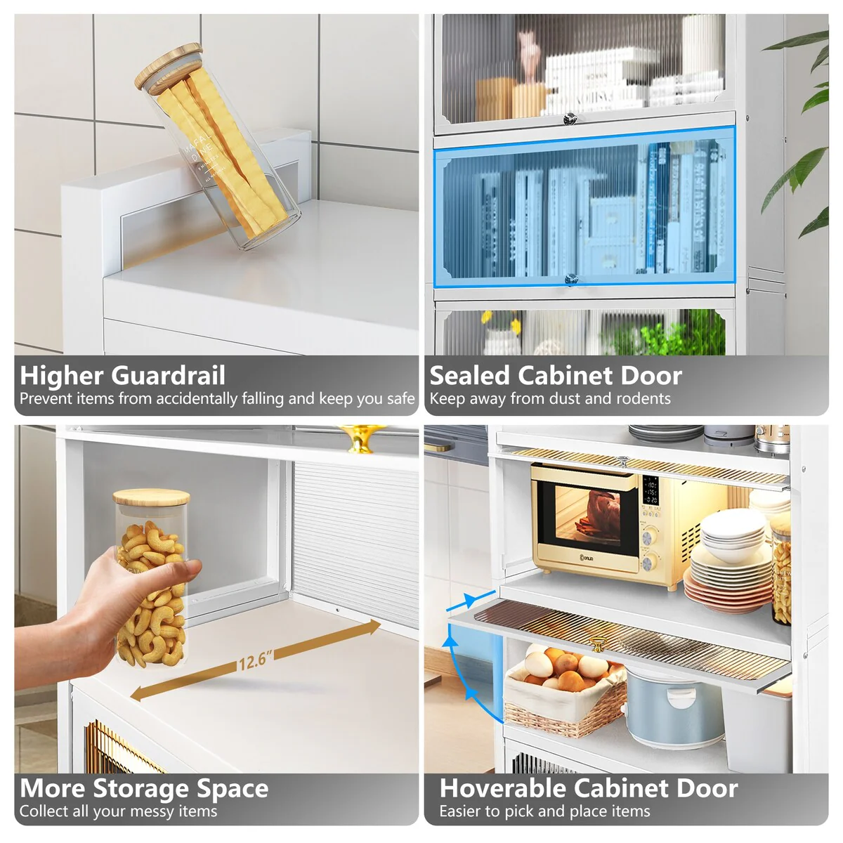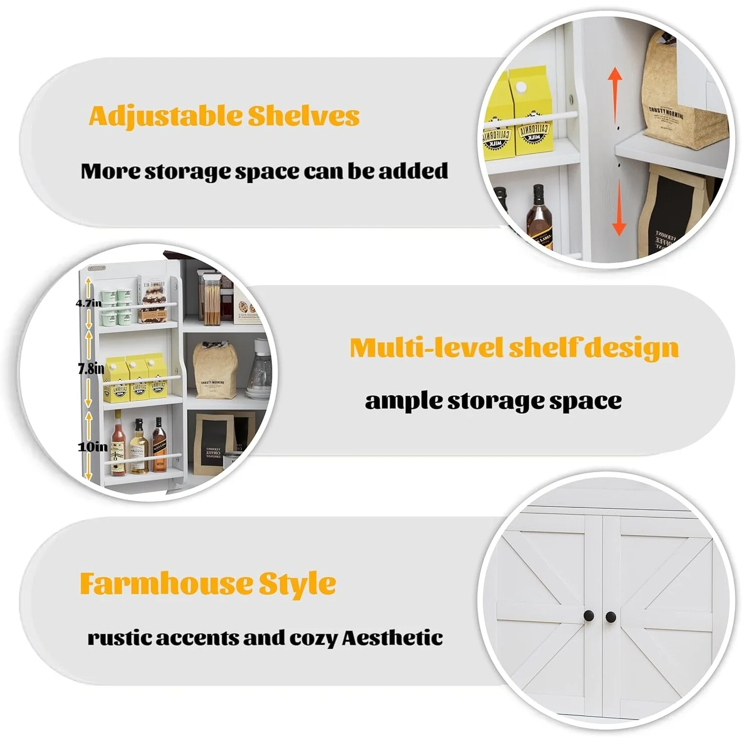 Kitchen Island with Storage, Farmhouse Sideboard Cabinet, Storage Cabinet, White