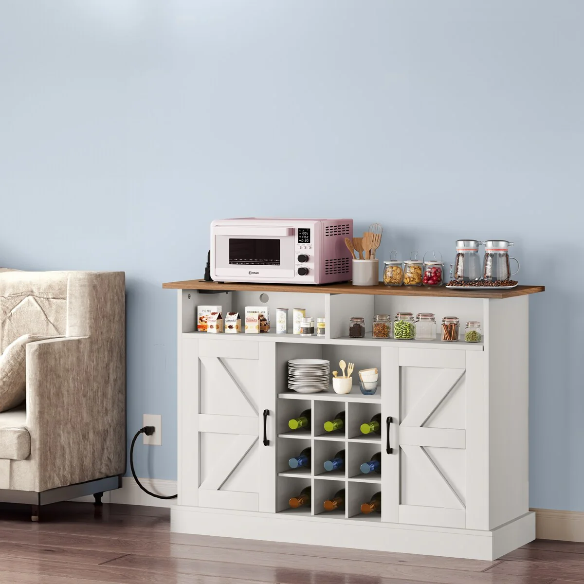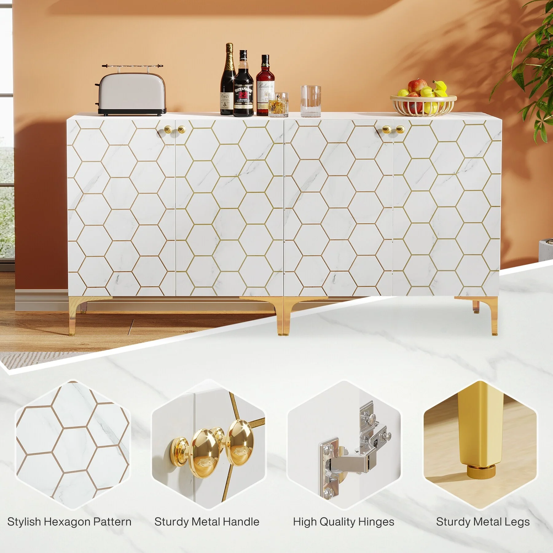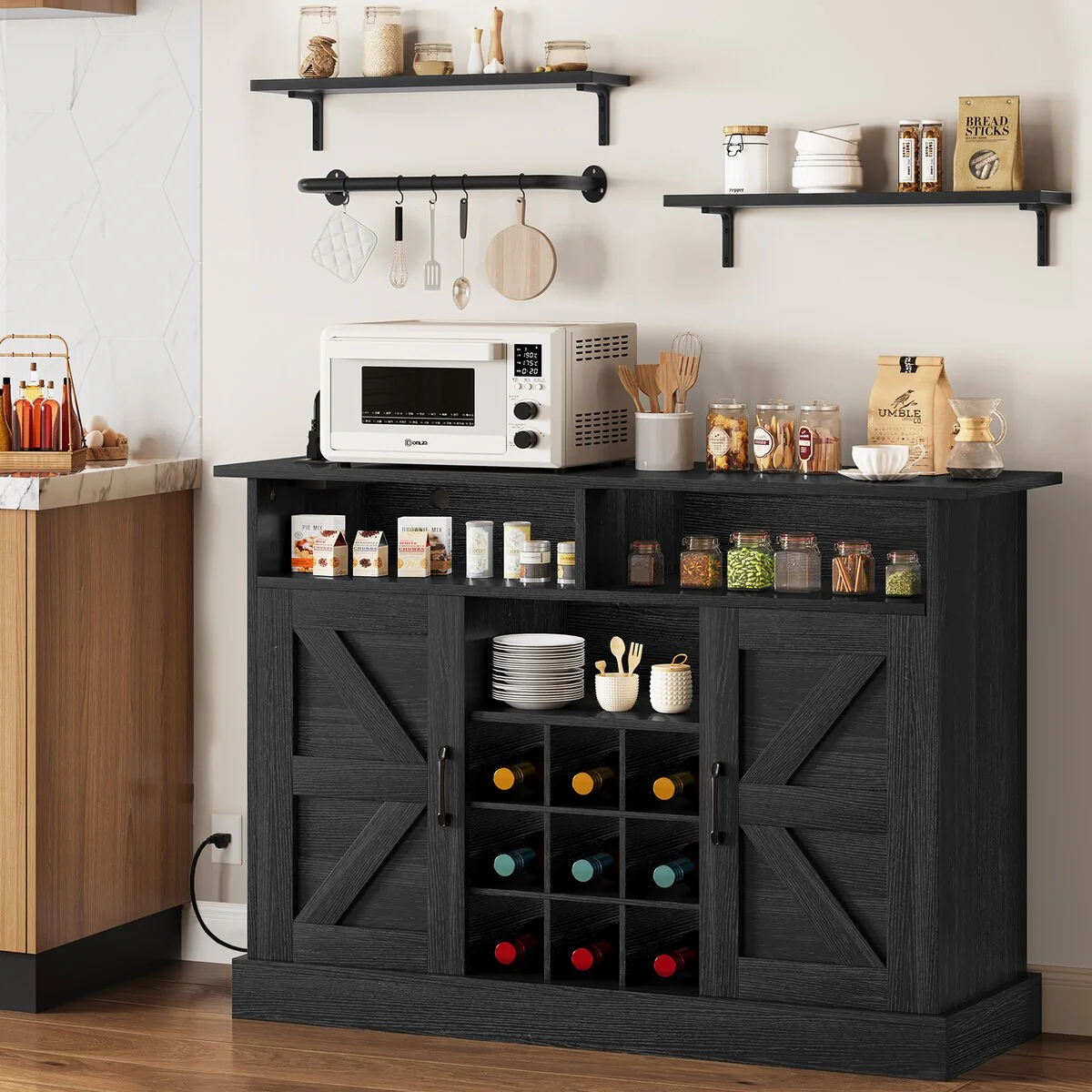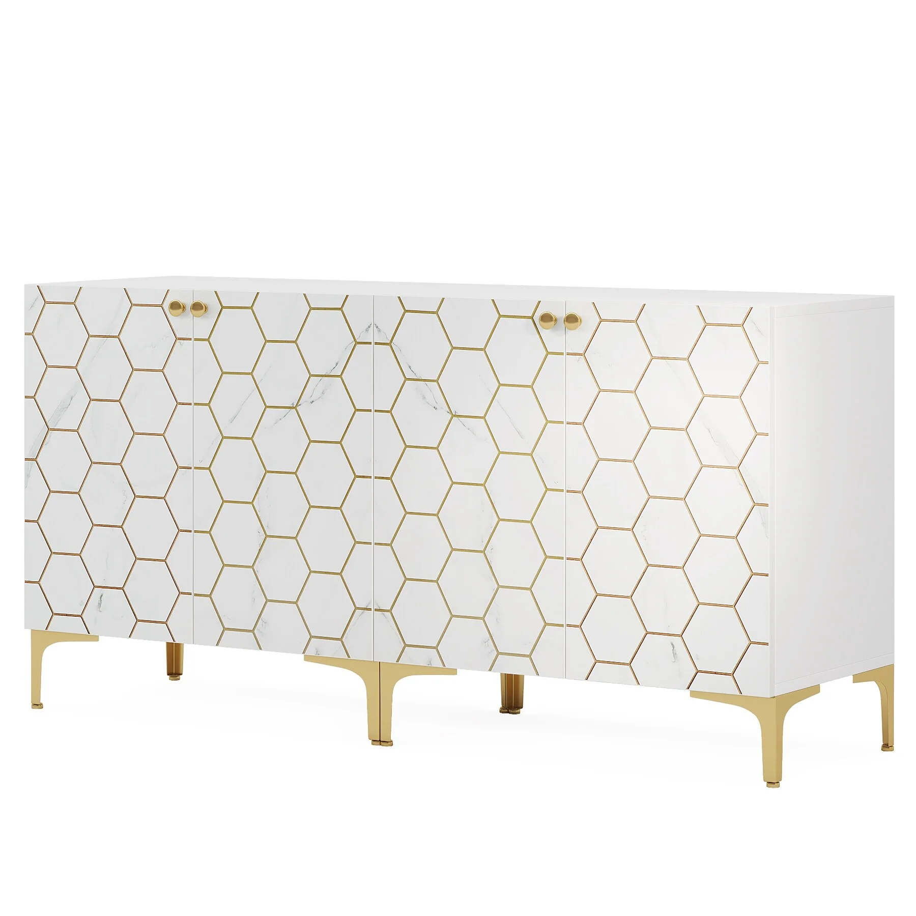Kitchen Island with Storage, Farmhouse Sideboard Cabinet, Storage Cabinet, White