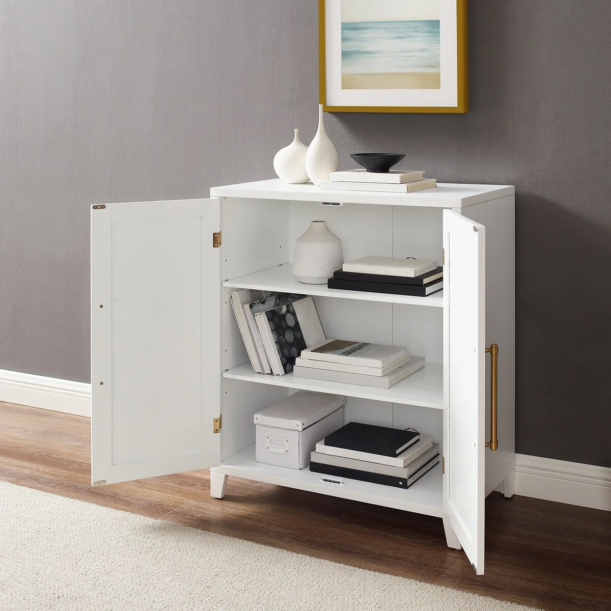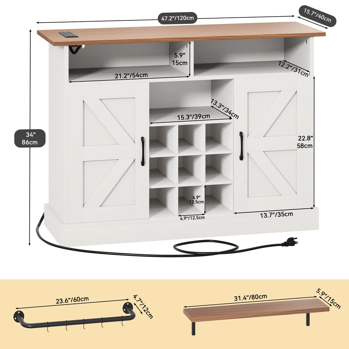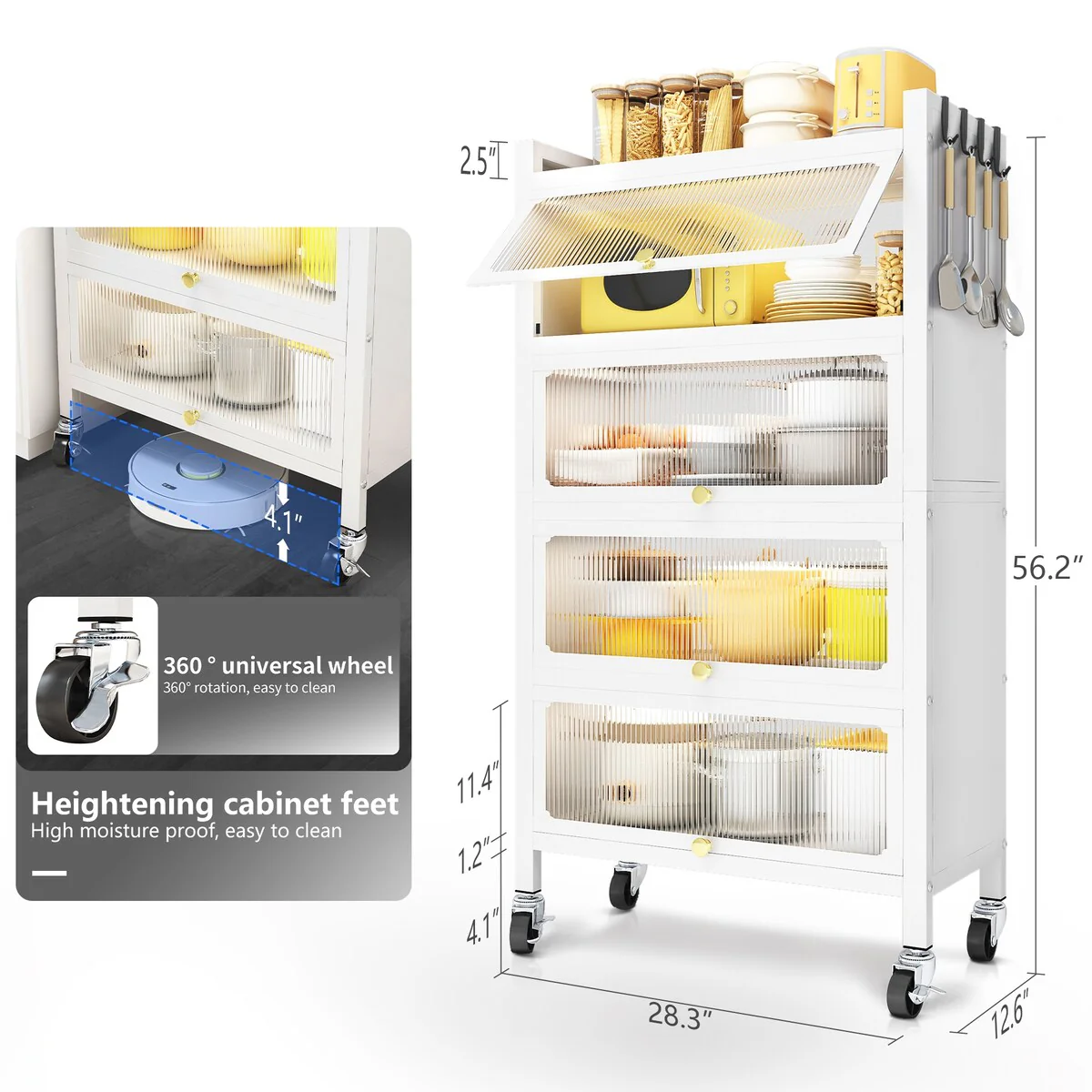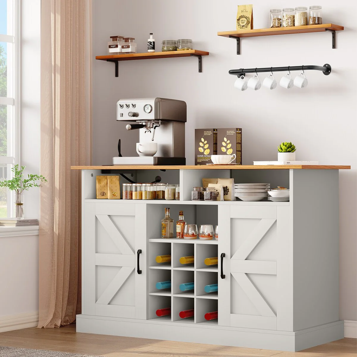 Kitchen Island with Storage, Farmhouse Sideboard Cabinet, Storage Cabinet, White