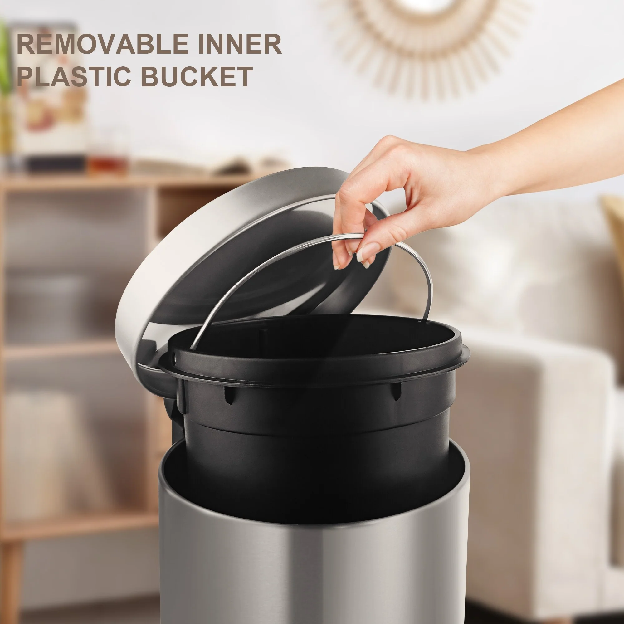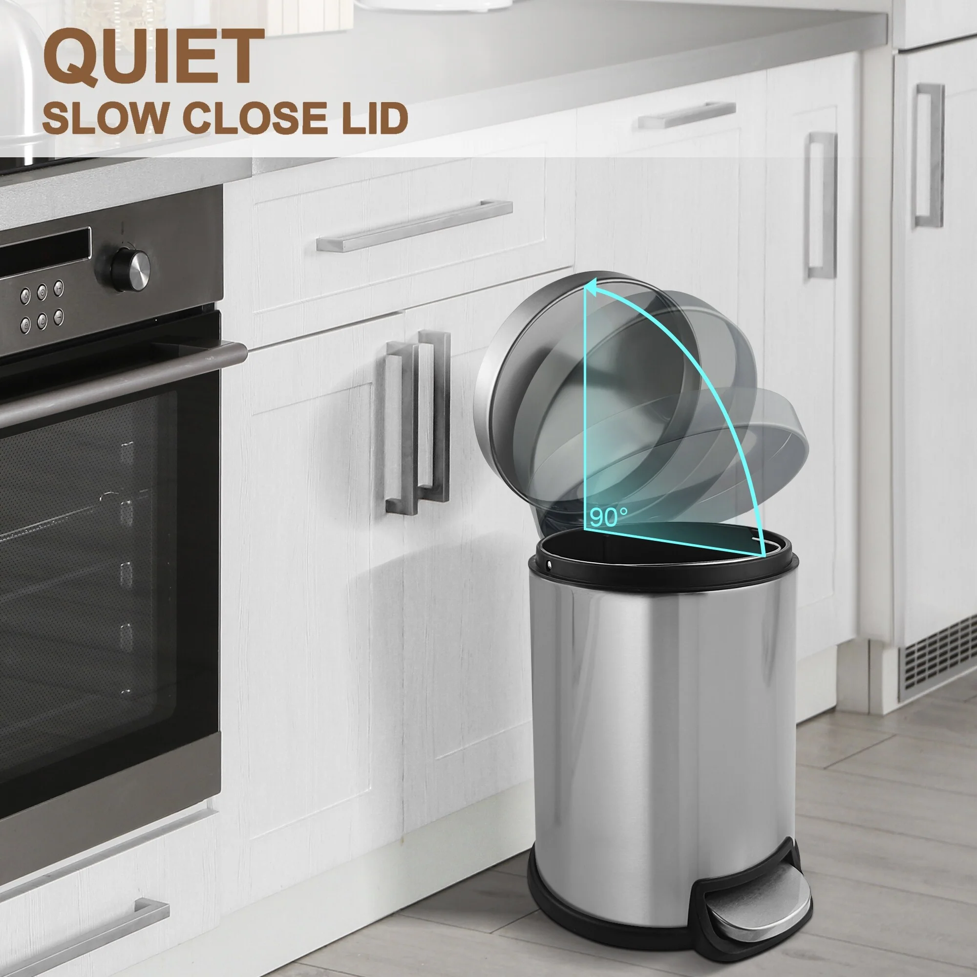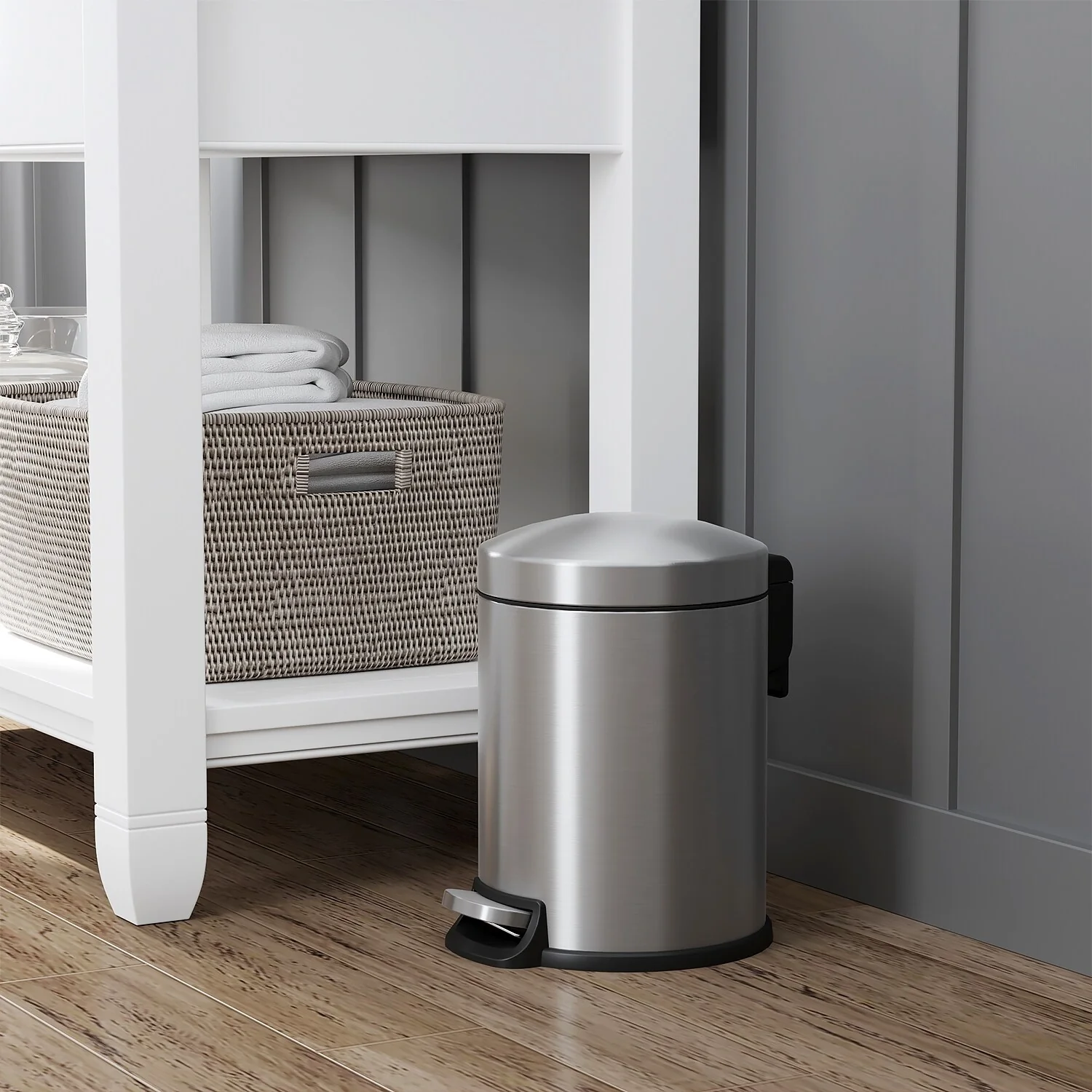 Innovaze 1.32 Gal./3 Liter Stainless Steel Round Step-on Trash Can for Bathroom and Office
