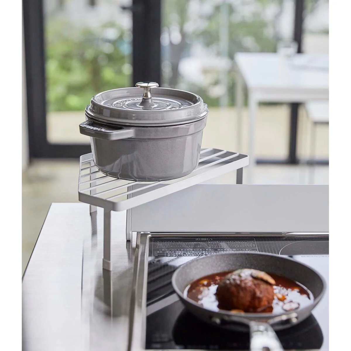 Yamazaki Home Corner Riser - One-Tier, Steel, Holds 11 lbs - L 8.86 x W 13.39 x H 4.41 inches