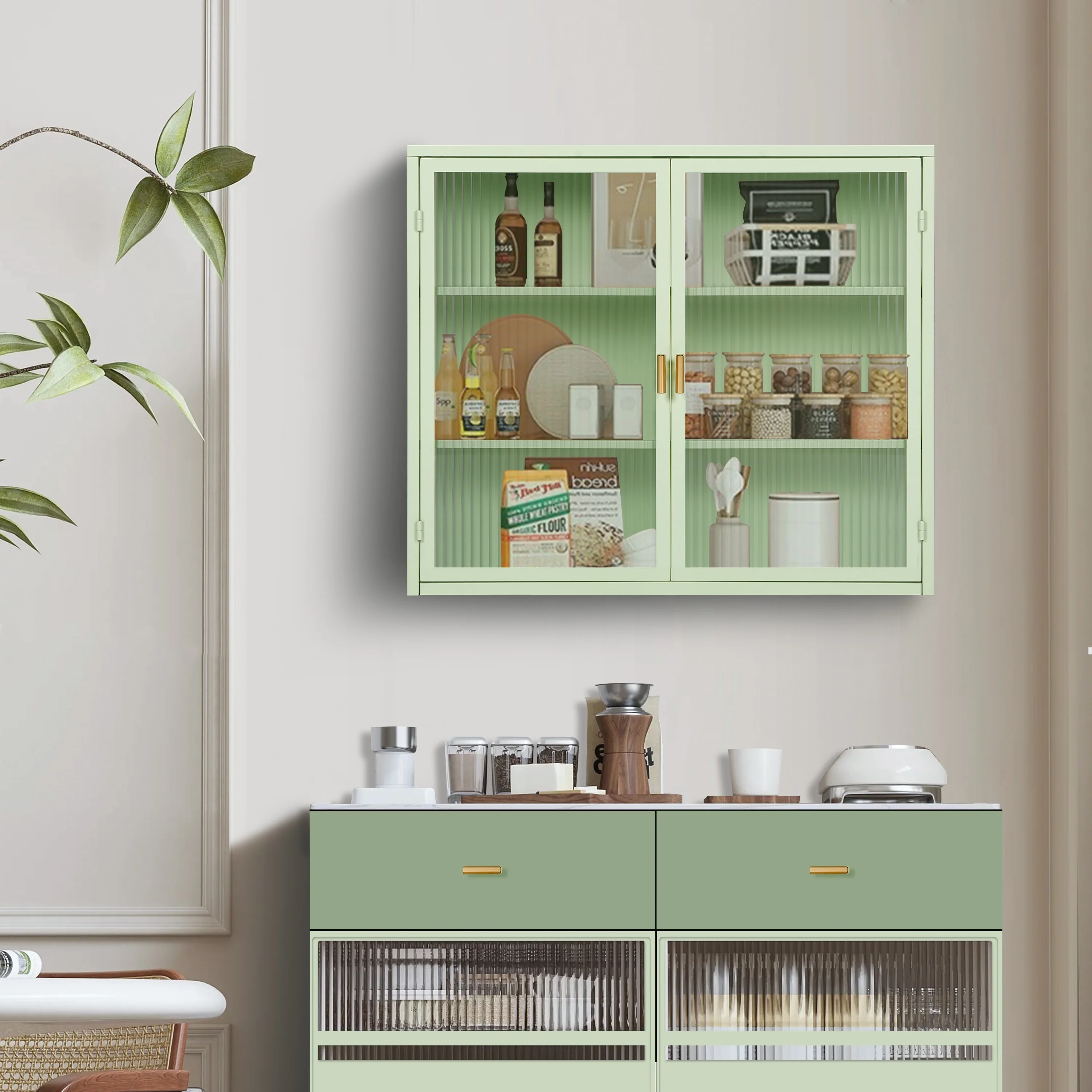 Retro Style Glass Door Wall Cabinet