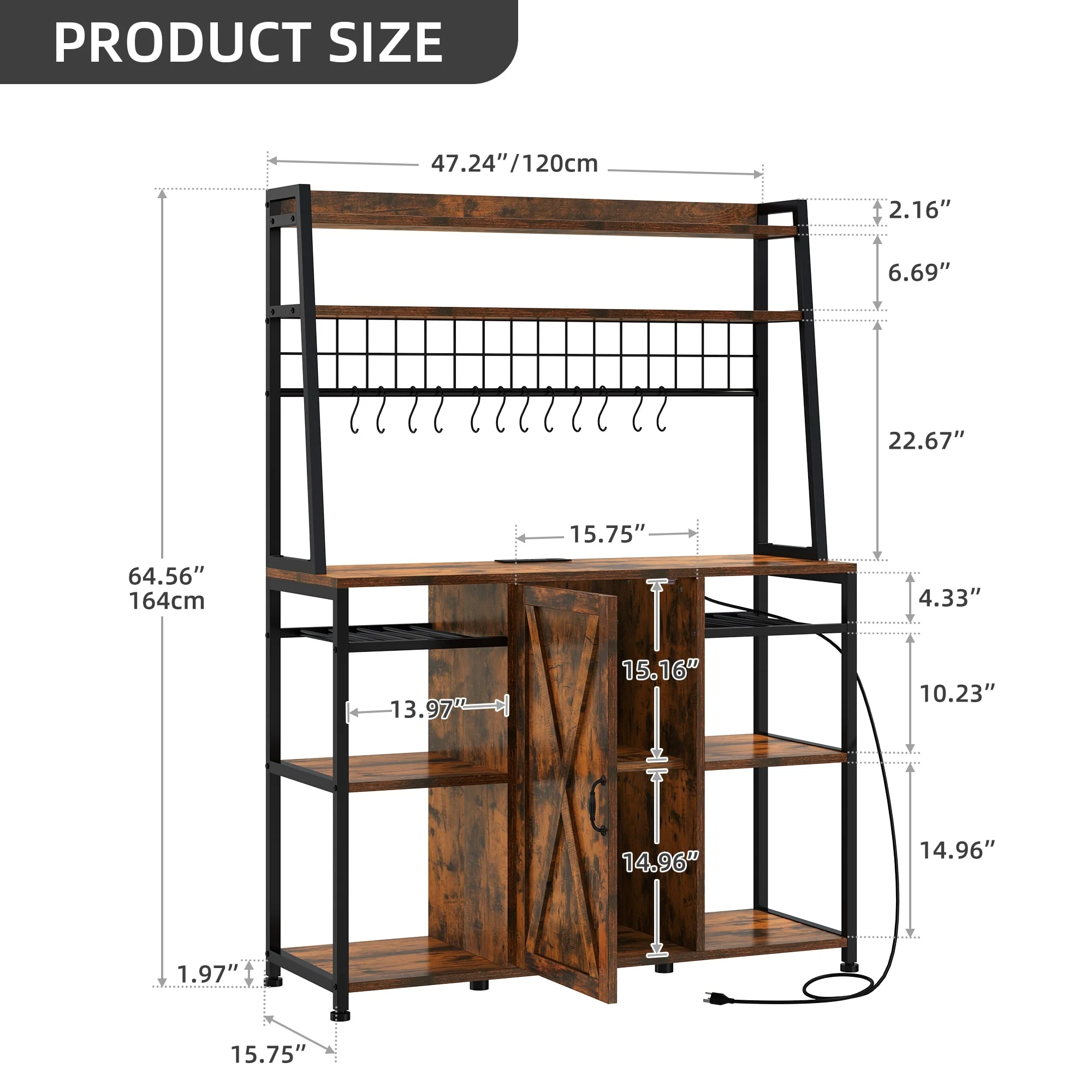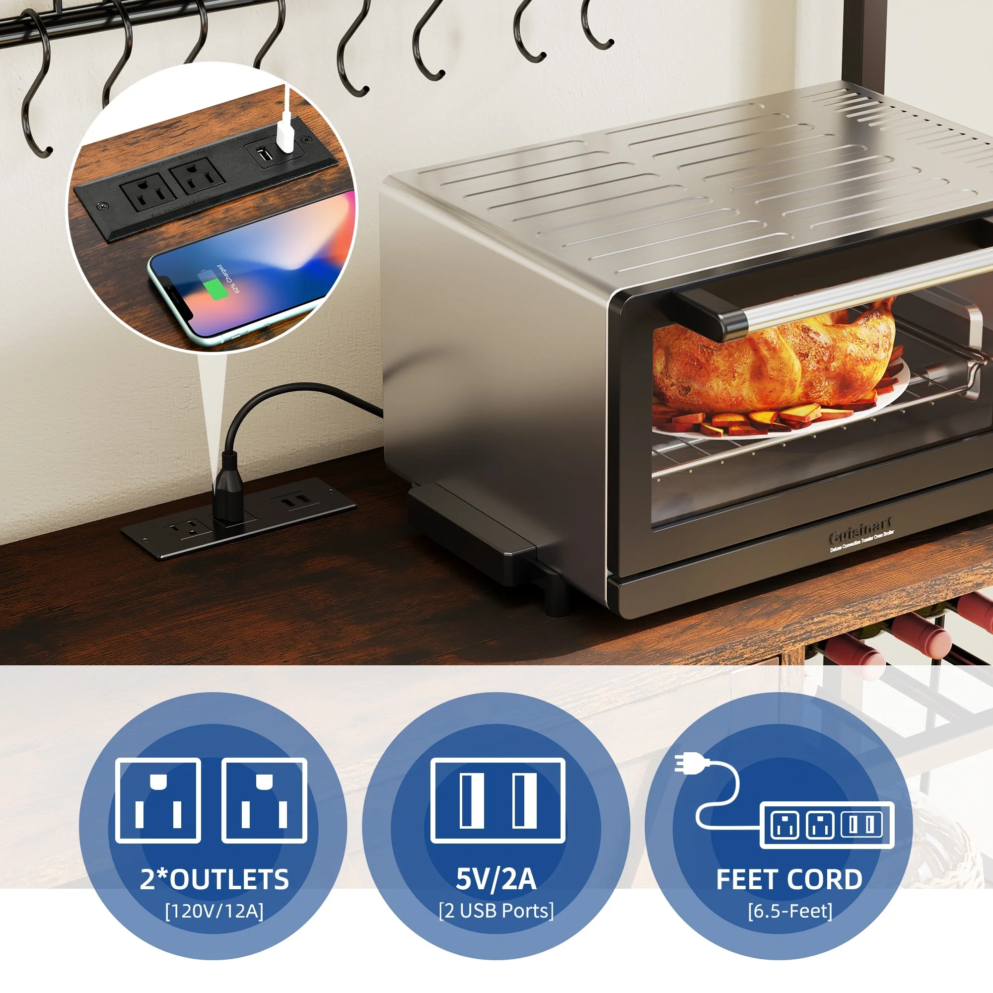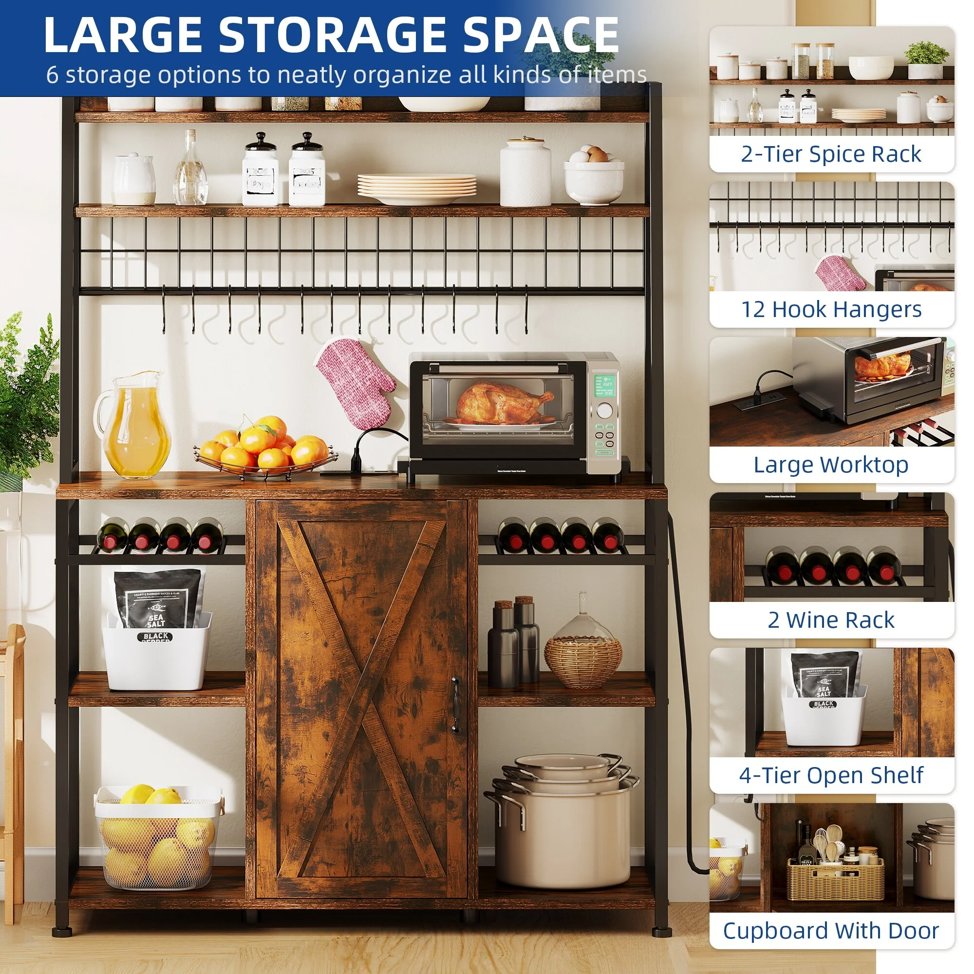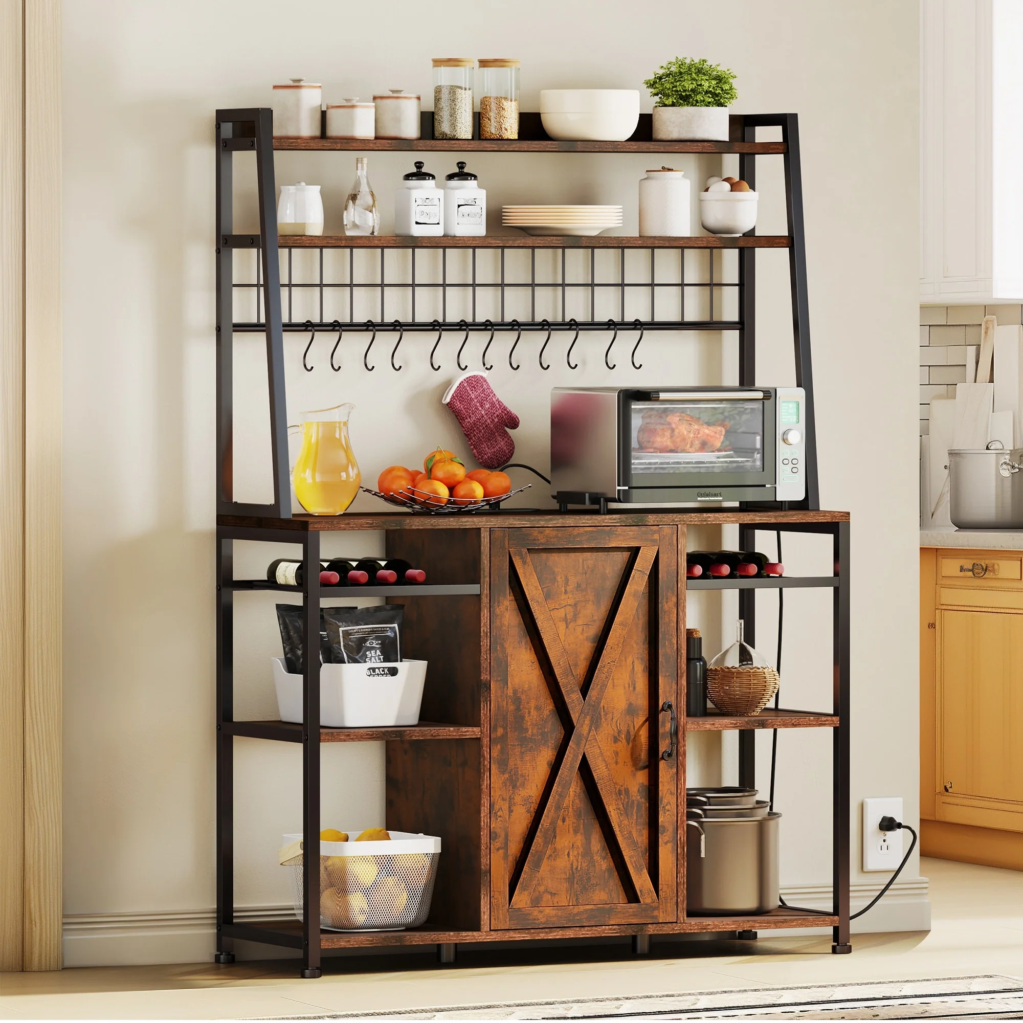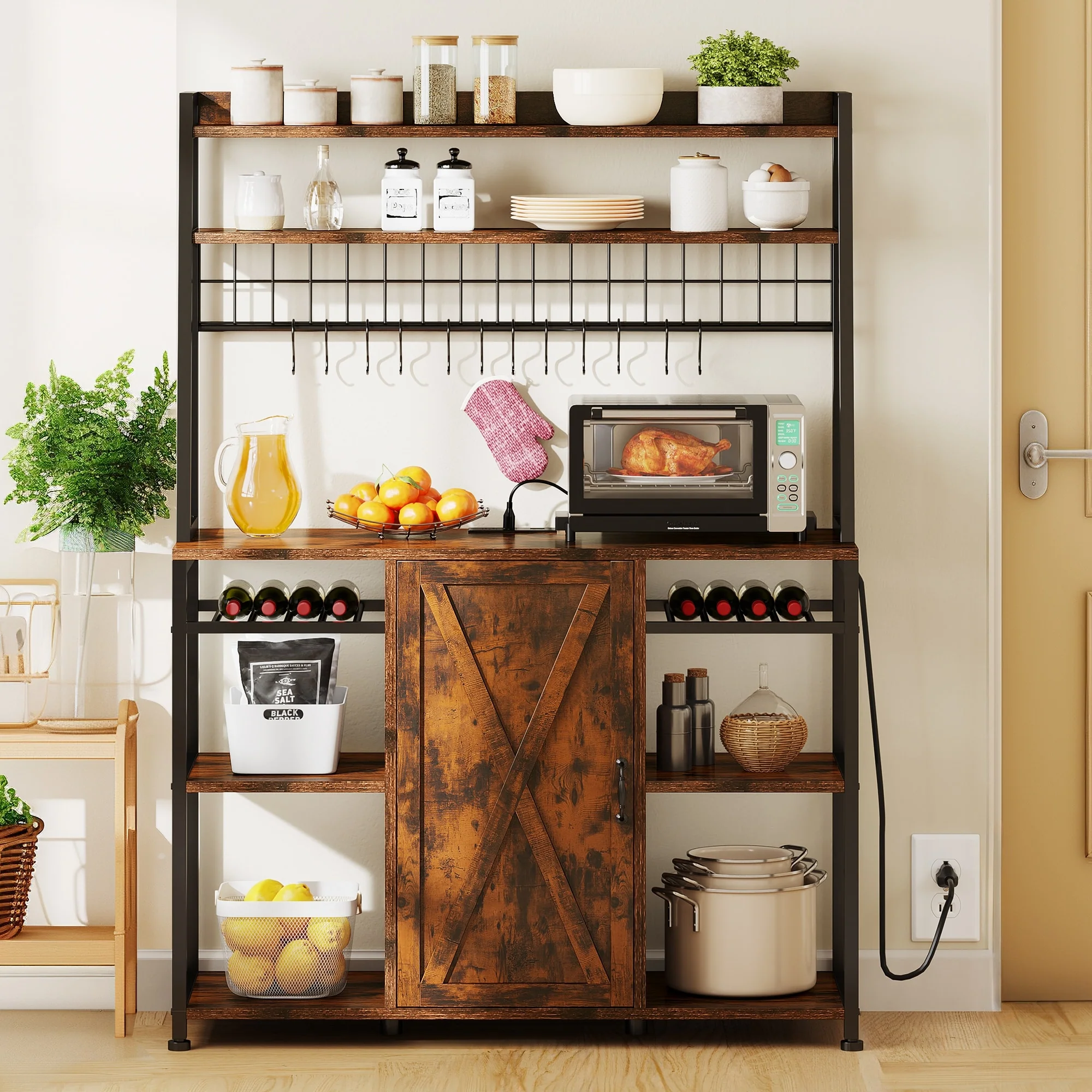 Moasis 5-Tier Kitchen Bakers Rack with Power Outlets USB Ports, Microwave Stand with Door and Shelves