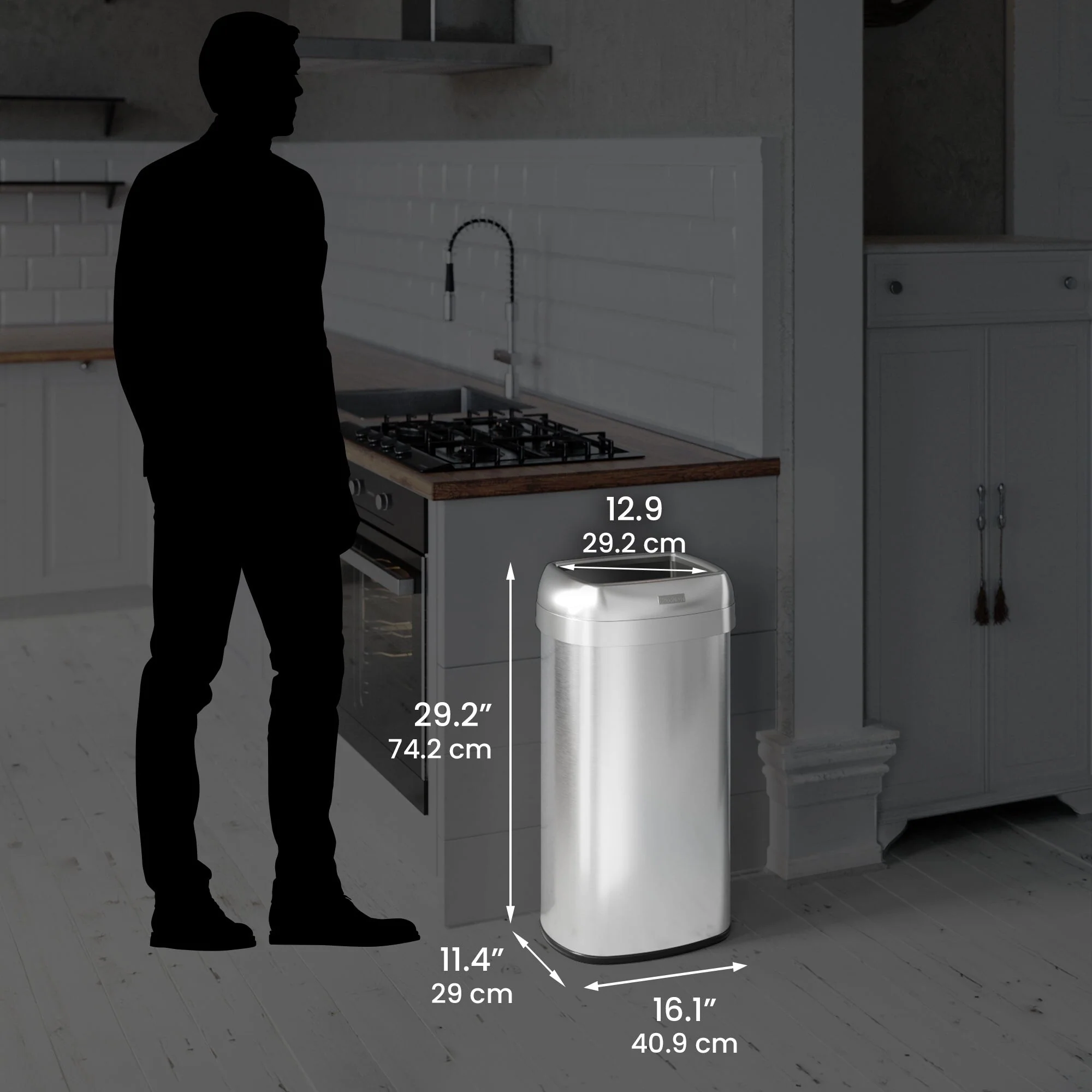 Innovaze 15.6 Gal./60 Liter Stainless Steel Oval Motion Sensor Trash Can for Kitchen