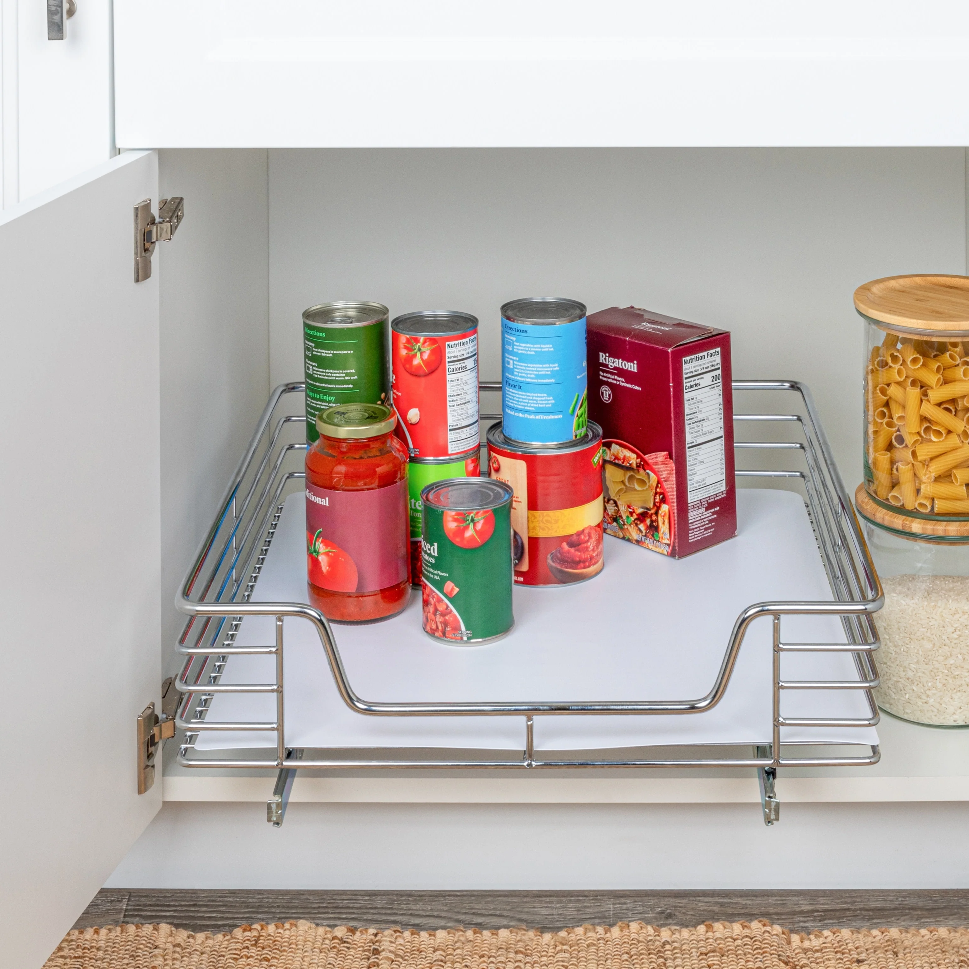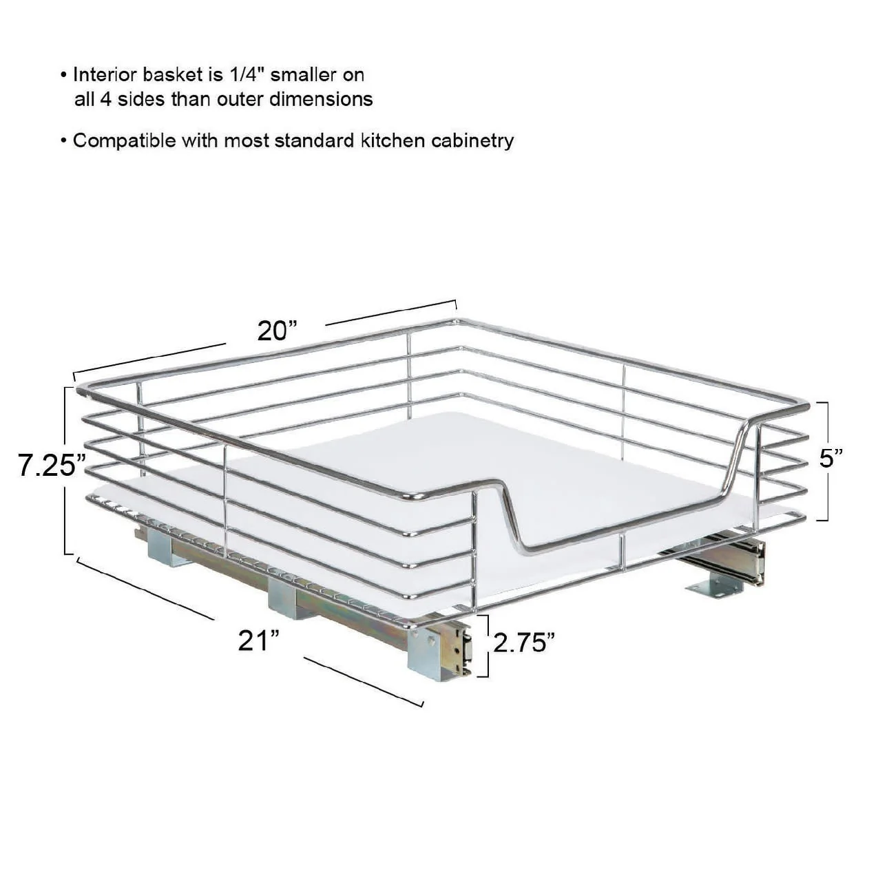 Household Essentials 1-Tier Steel Pull-Out/Slide-Out Basket Storage Organizer with Plastic Liner