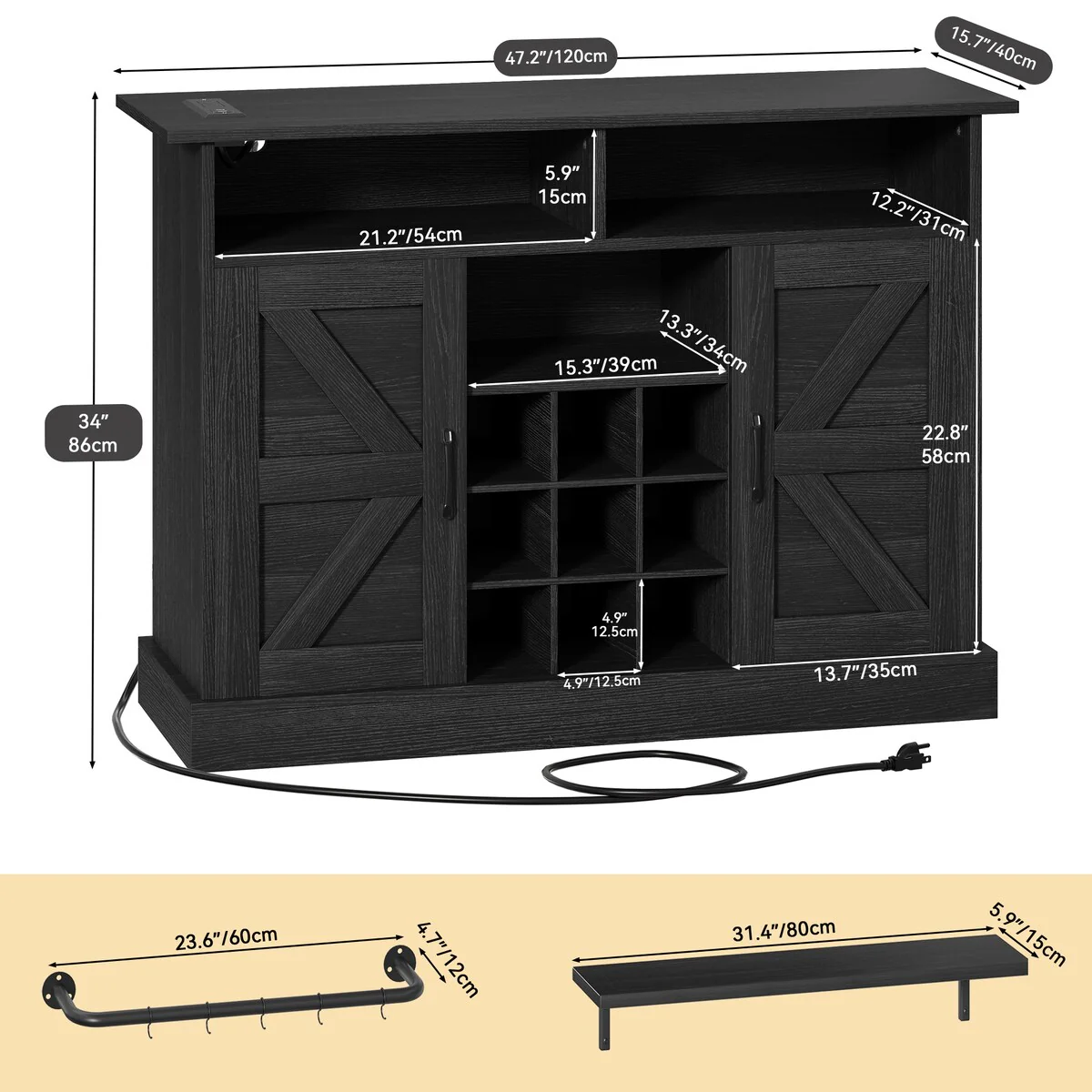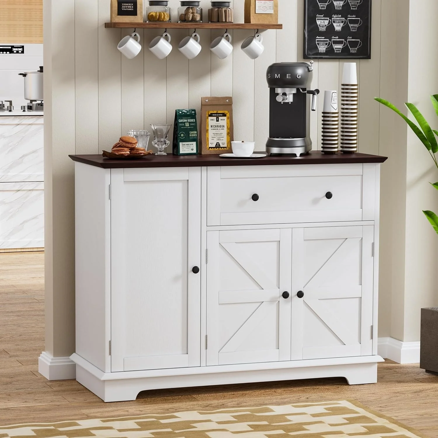 HOMCOM Farmhouse Barn Door Accent Cabinet, Kitchen Sideboard Storage Cabinet with Double Doors, Drawer, and Adjustable Shelf