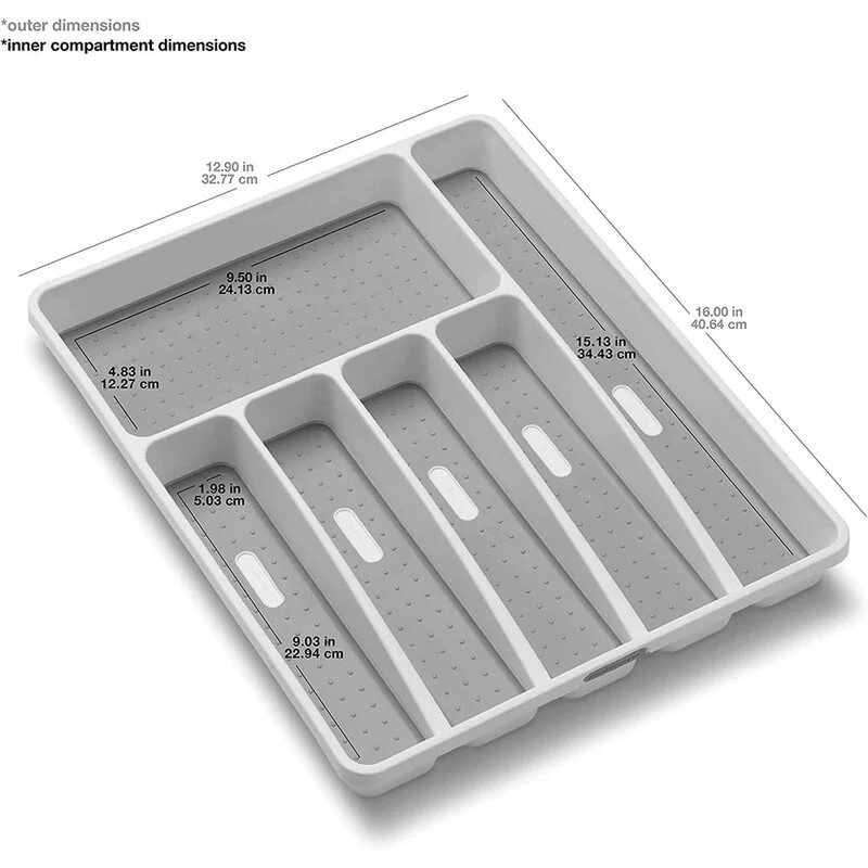 Classic Large Silverware Tray, 6-Compart,Soft-Grip Lining-Rubber Feet
