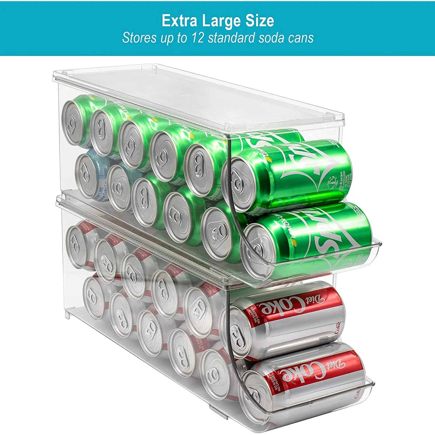 Sorbus Soda Can Organizer for Refrigerator Can Holder with Lid, Holds 12 Cans, BPA-Free, Clear Design
