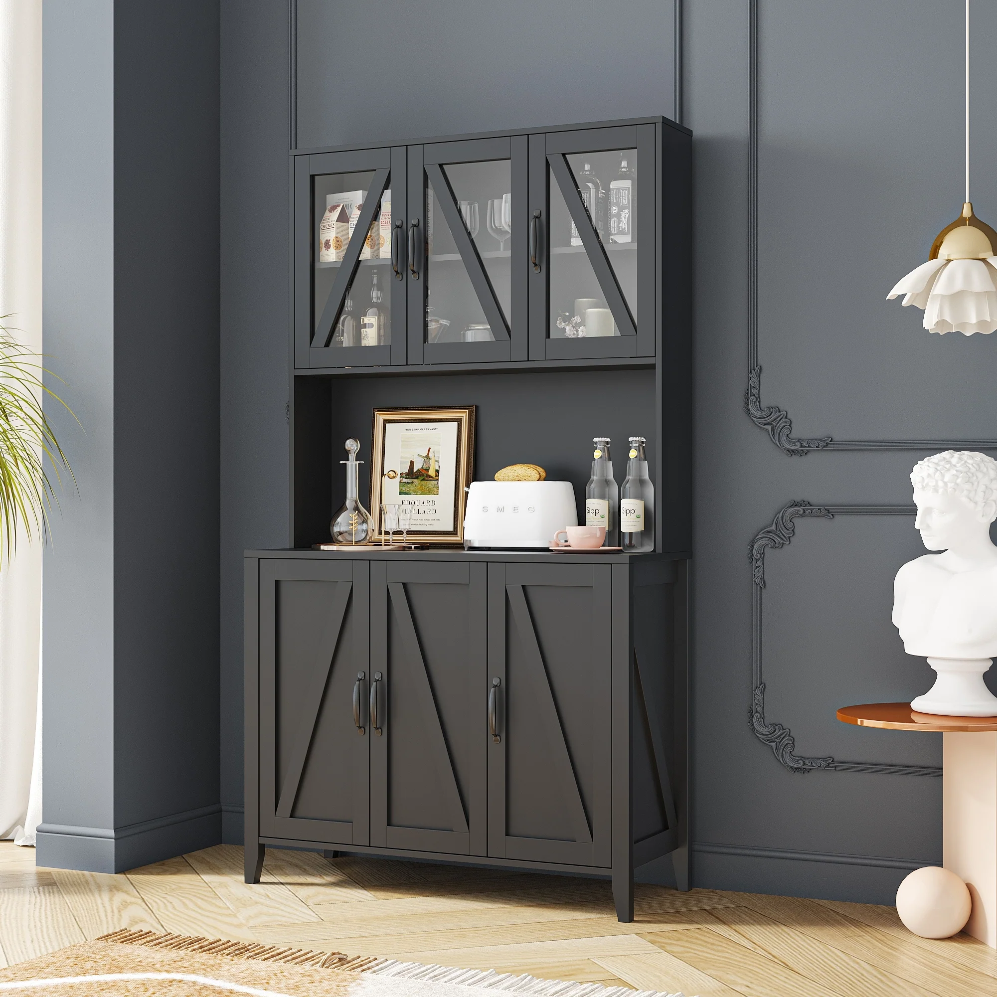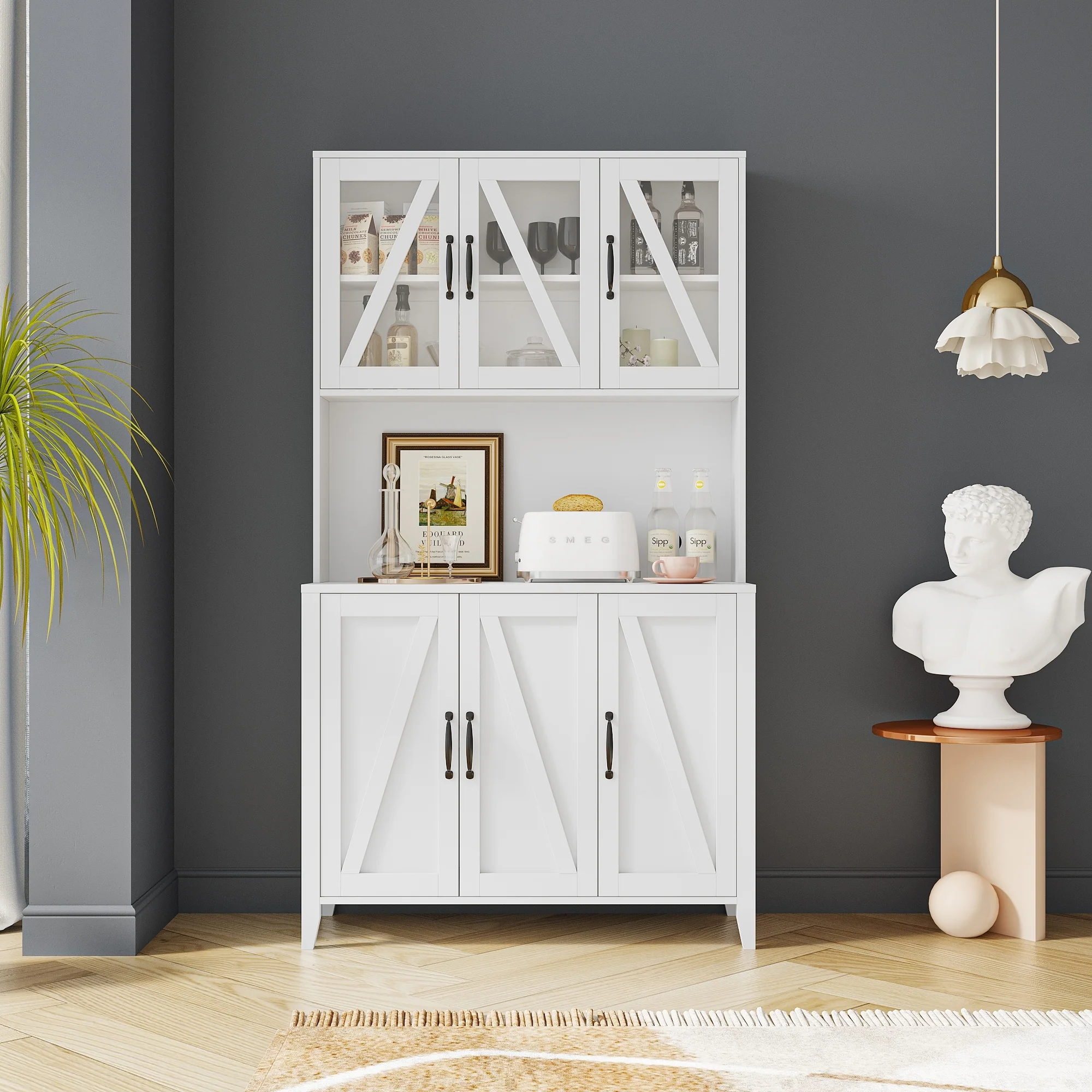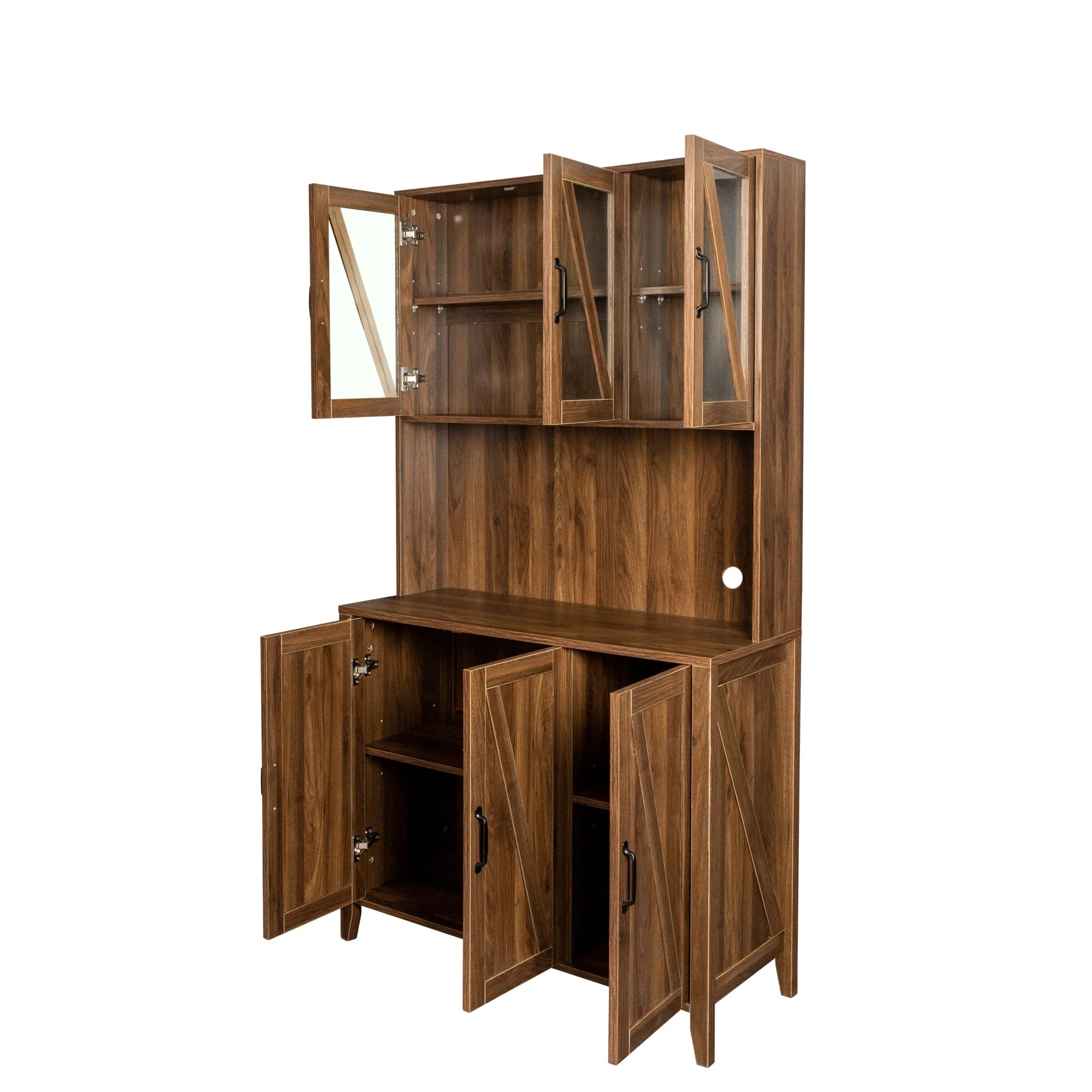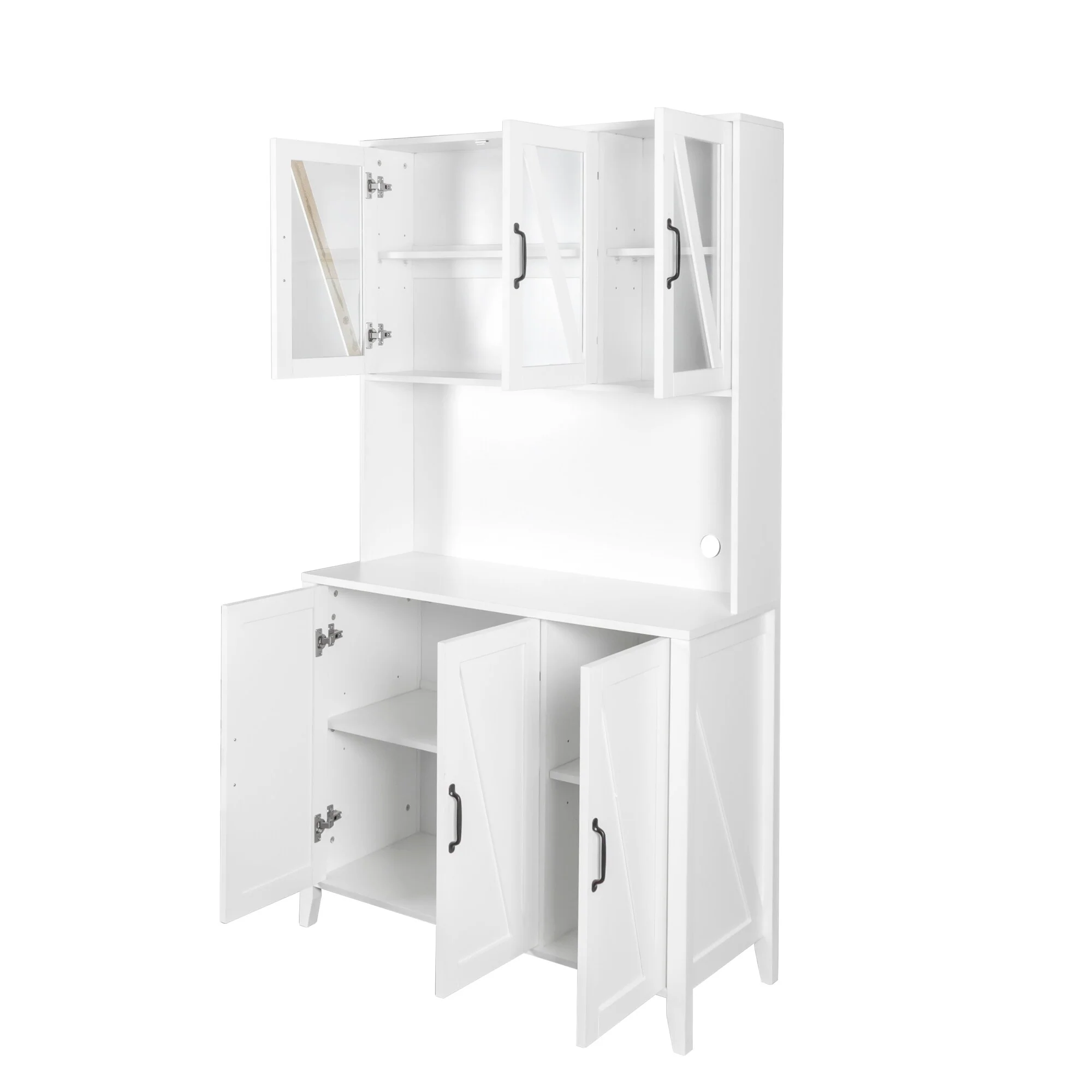 Palace Imports 100% Solid Wood Pantry Cabinet with Frosted, Clear Glass or Solid Doors and Adjustable Shelves